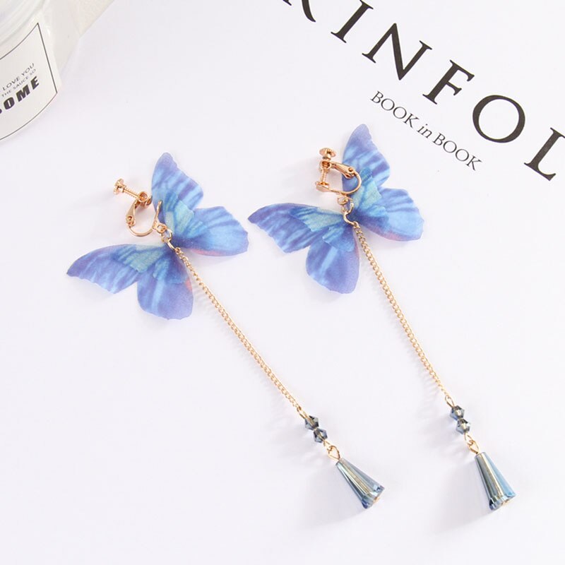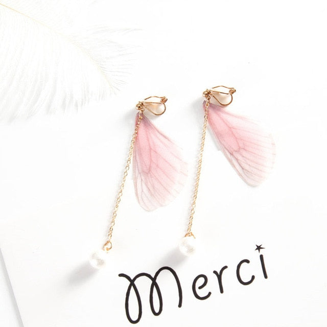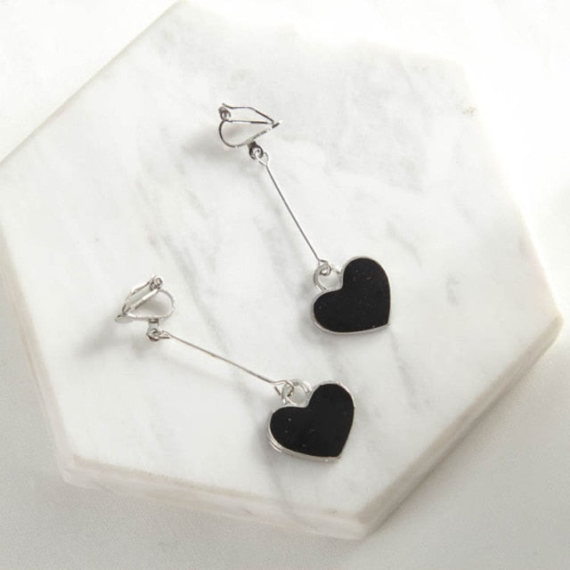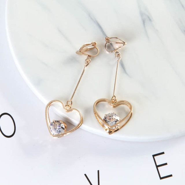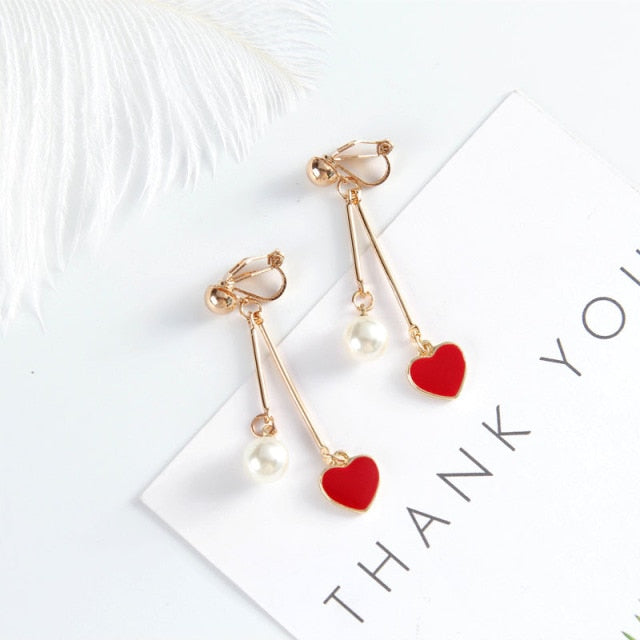 Pendientes de clip geométricos con forma de corazón, estrella y mariposa, de perla simulada de cristal y esmalte, sin perforar