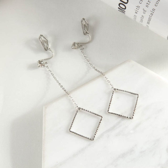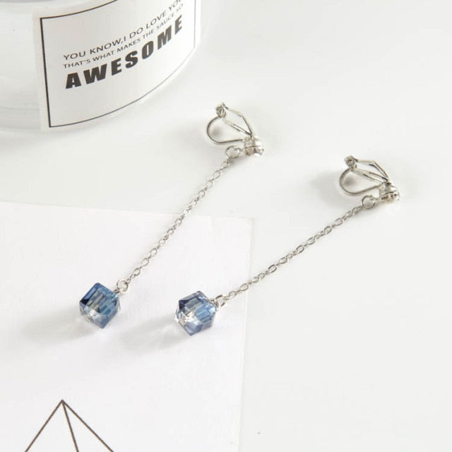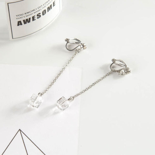 Pendientes de moda con clip geométrico, 16 colores a elegir, con cristales, perlas de imitación, esmalte, corazón, estrella, mariposa, sin perforar, para mujer.