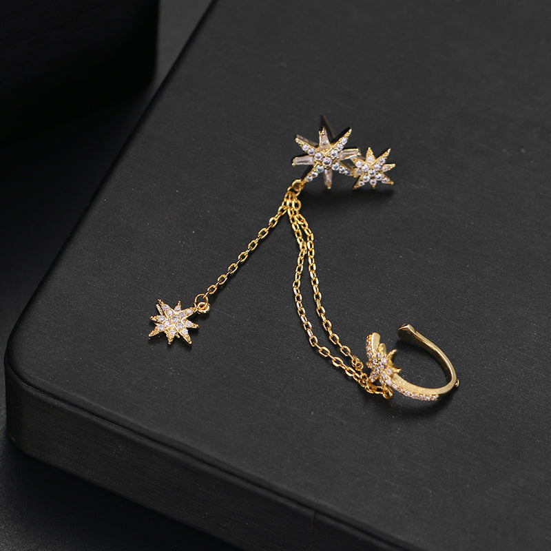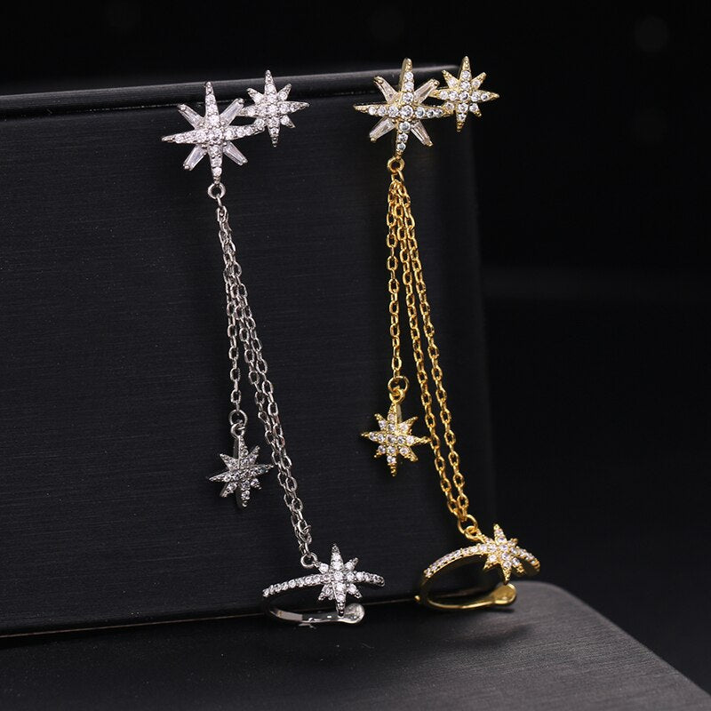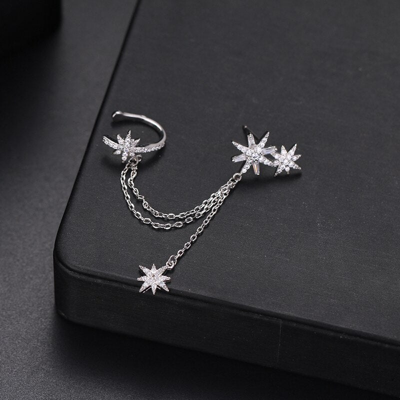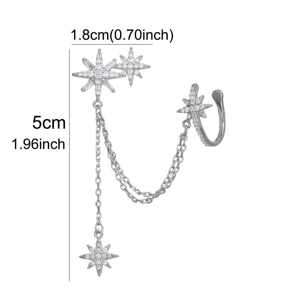 Pendientes de moda: pendientes de clip de estrella de circonita cúbica, joyería de moda para mujer, pendientes de clip de cristal de color oro blanco, regalo