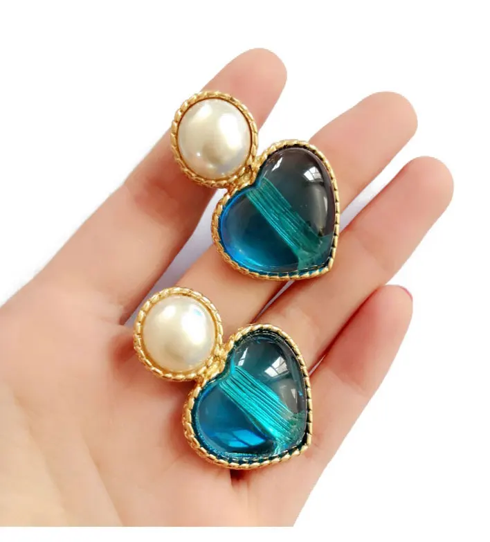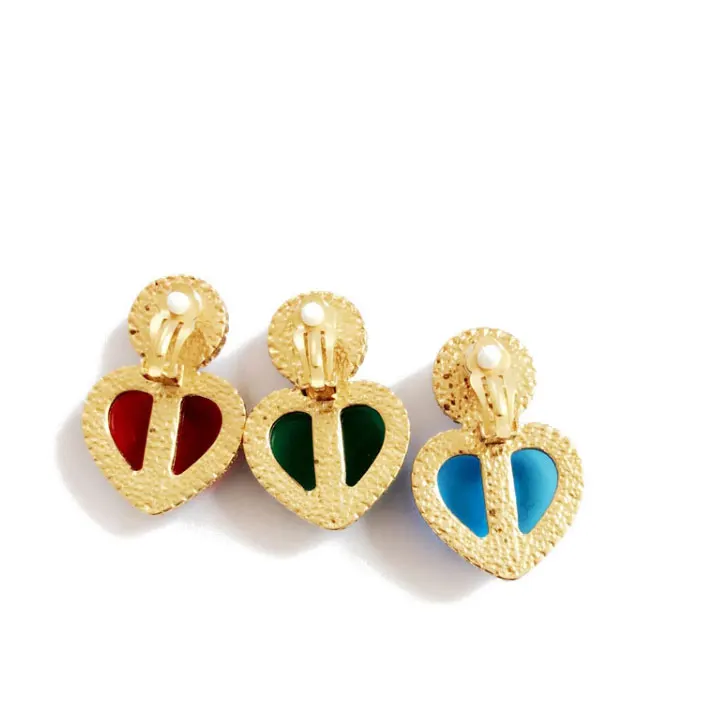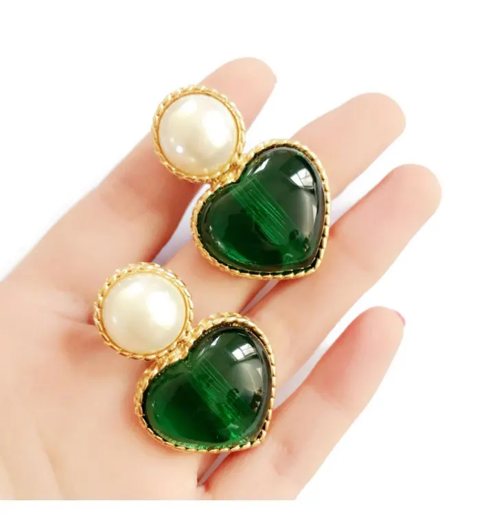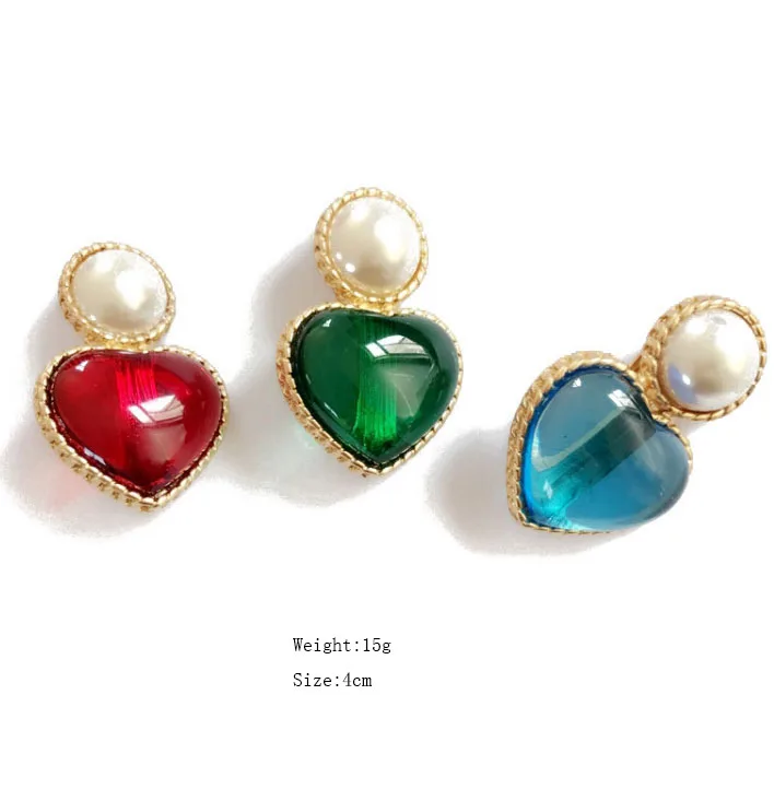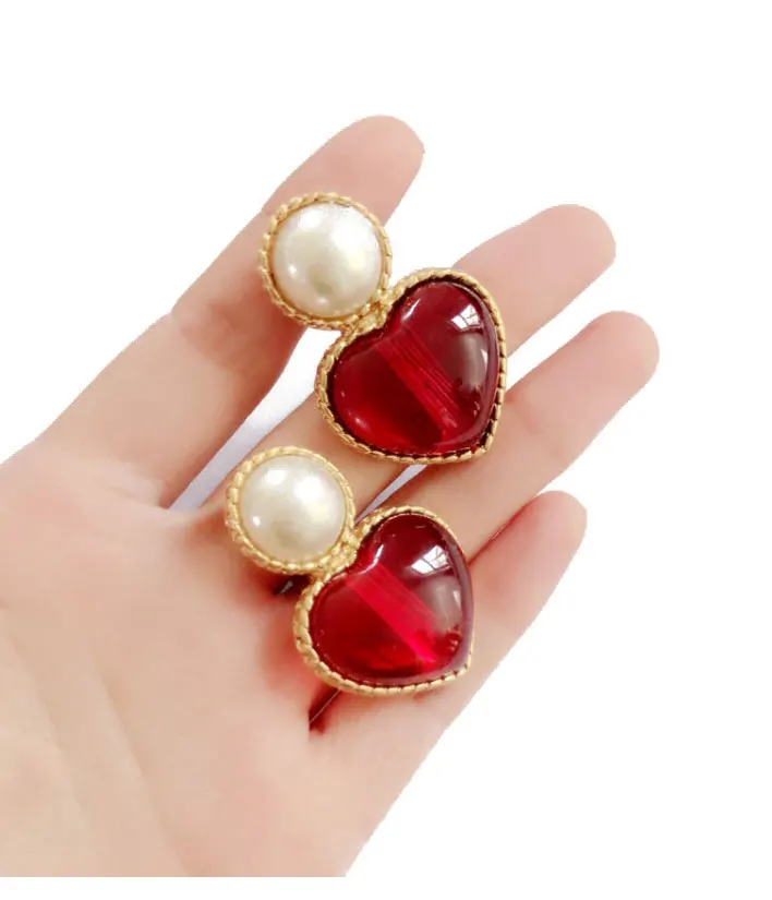 Pendientes de moda: bonitos pendientes de clip con colgante de corazón de aleación para mujer, elegantes pendientes de clip con dije de resina y perla de imitación, joyería de moda.