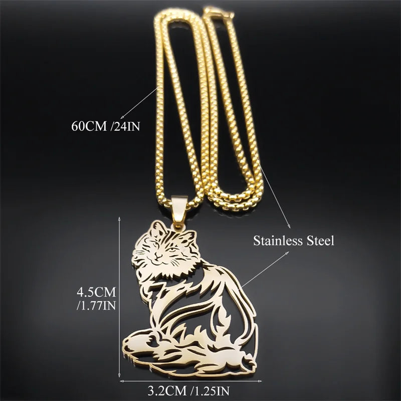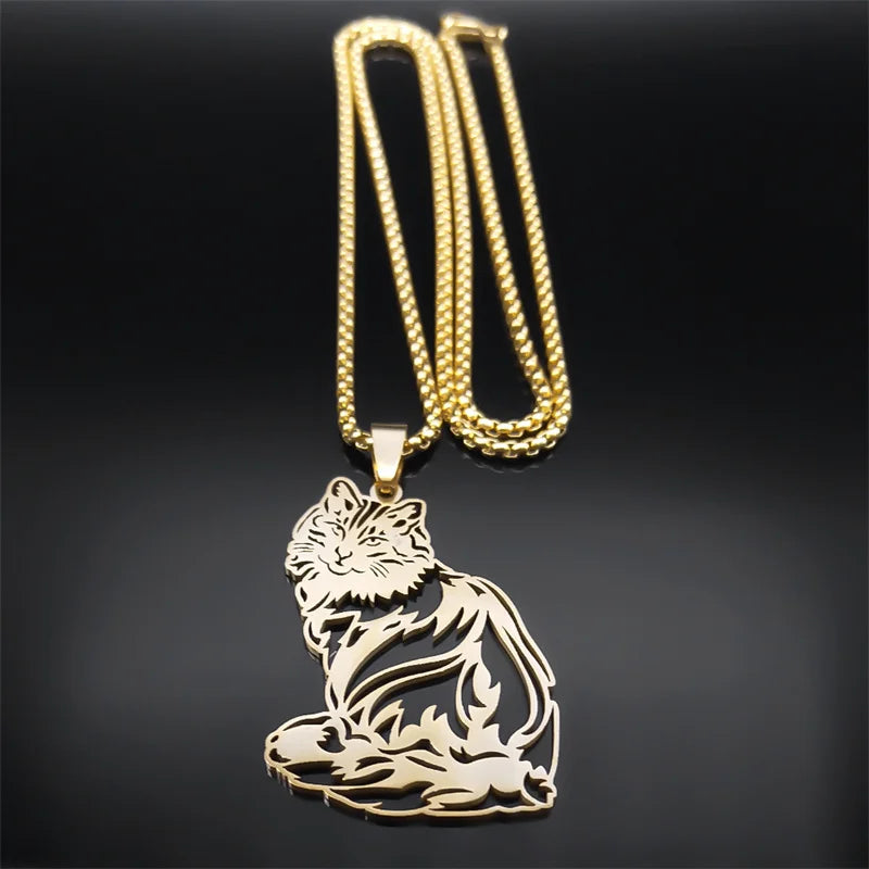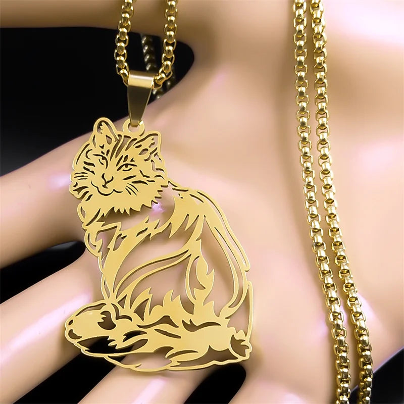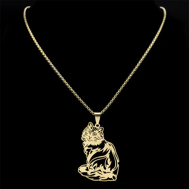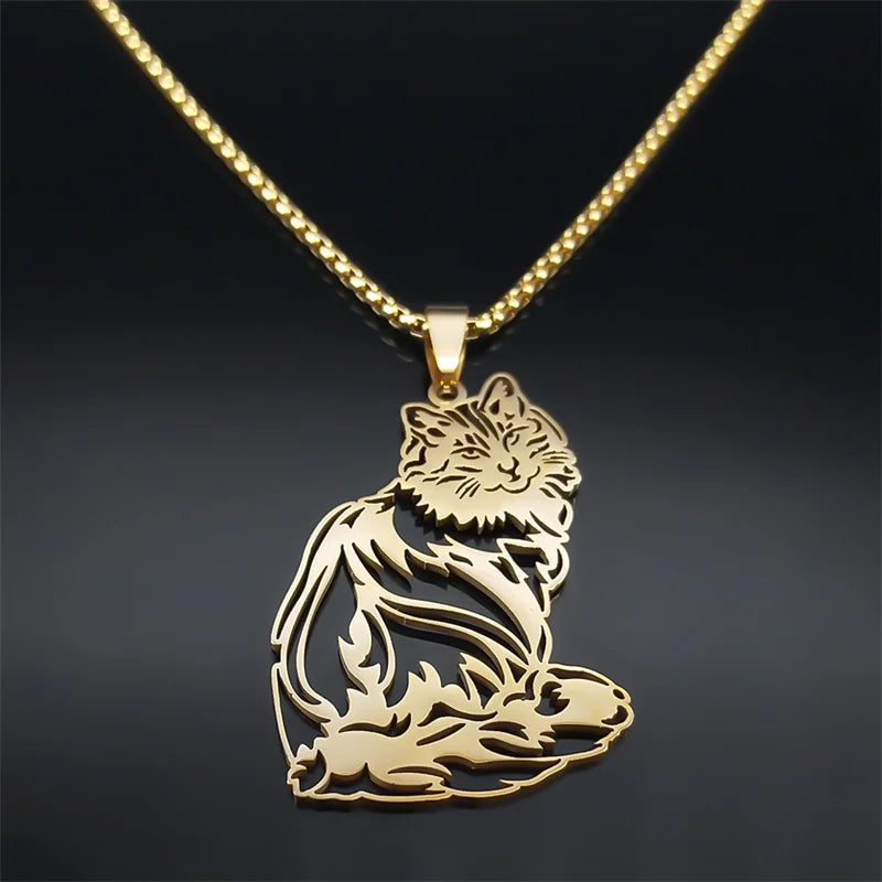 Collar con colgante de gato y animalito para mujer y hombre, de acero inoxidable, color dorado, cadena de amor, regalo, joyería