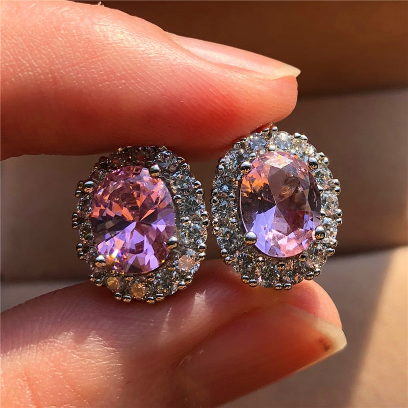 Lindos pendientes coreanos pequeños ovalados con clip de circonita blanca, verde, roja y azul.
