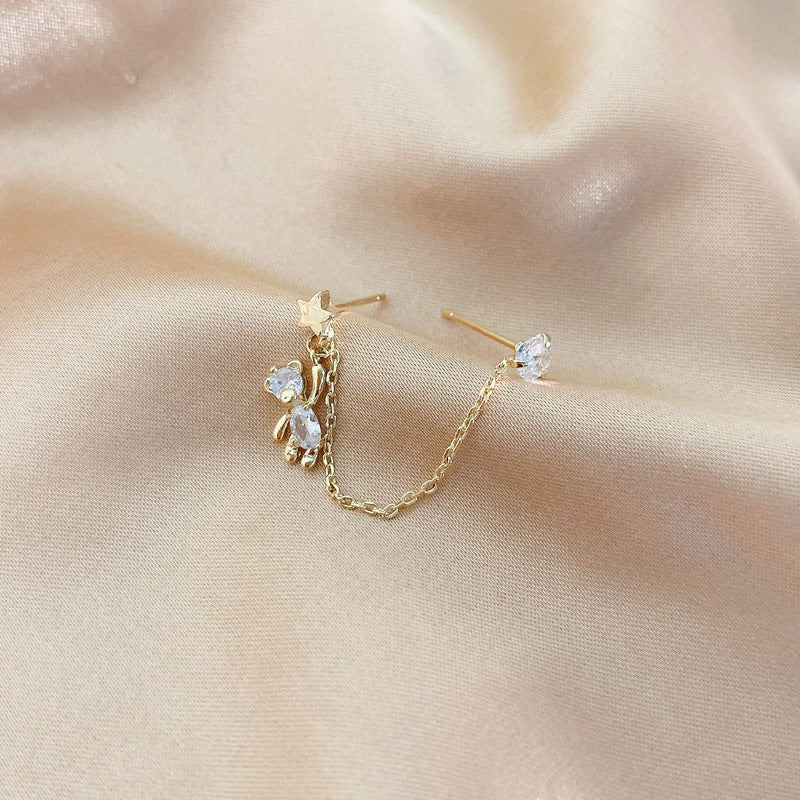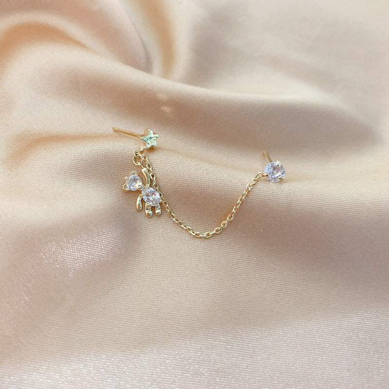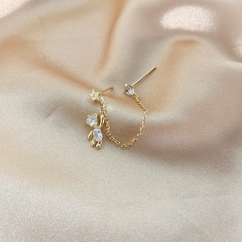 Pendientes de moda: bonitos pendientes con borlas de oso y diamantes de imitación brillantes para mujer, 2022, con cadena dorada y clip de estrella, joyería coreana llamativa.