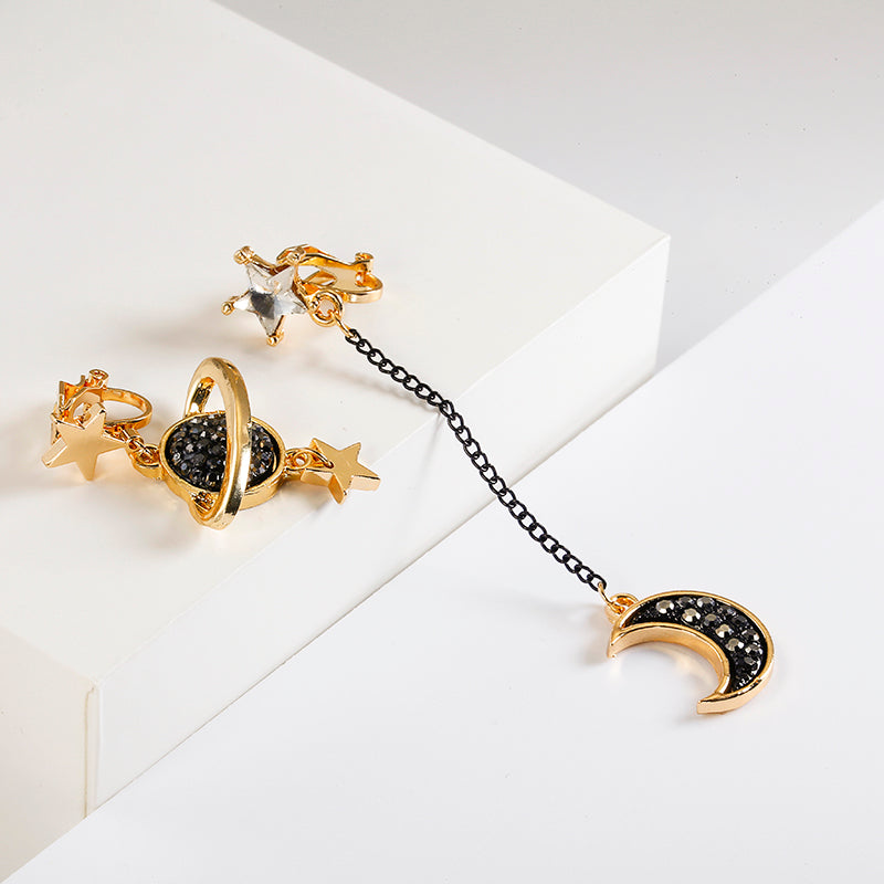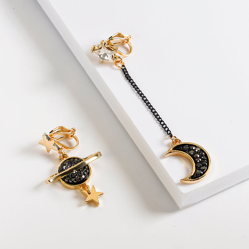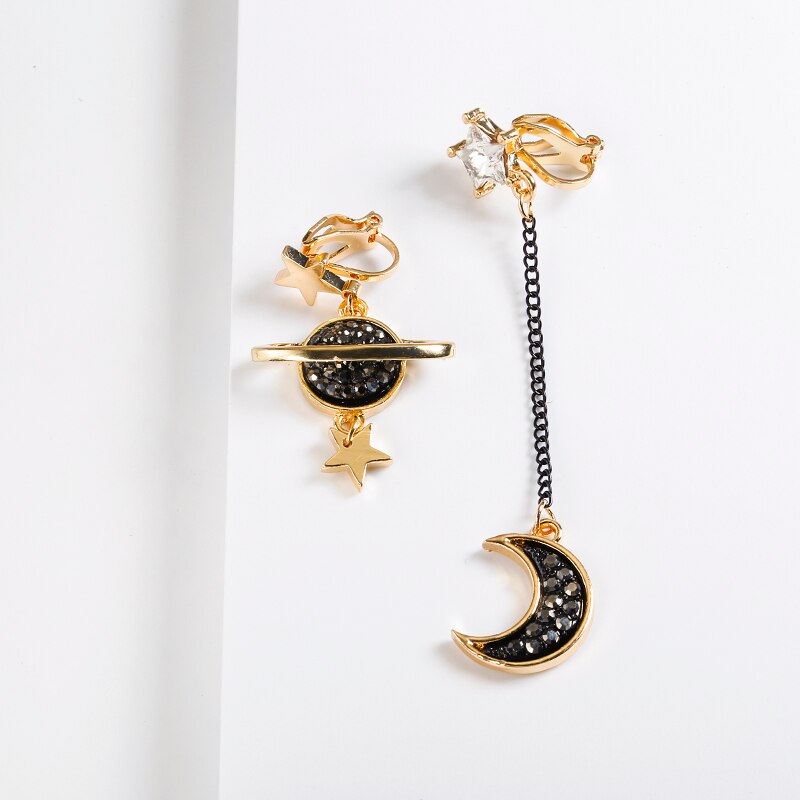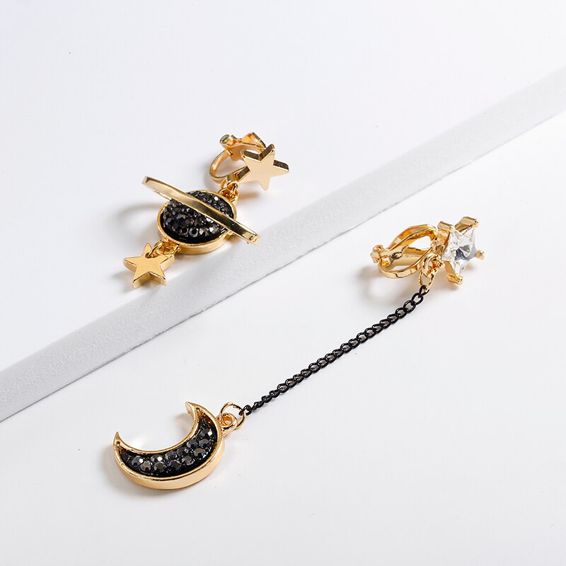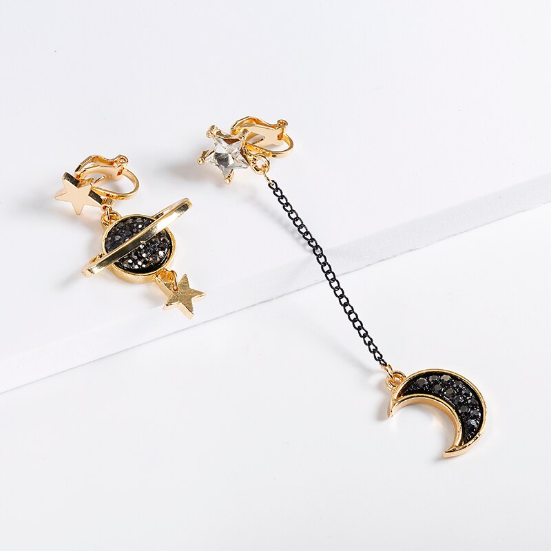 Pendientes de moda con clip, nuevos pendientes coreanos japoneses creativos, lindos, universo, planeta, luna y estrella, sin perforaciones, diseño asimétrico, clips para las orejas para mujeres.