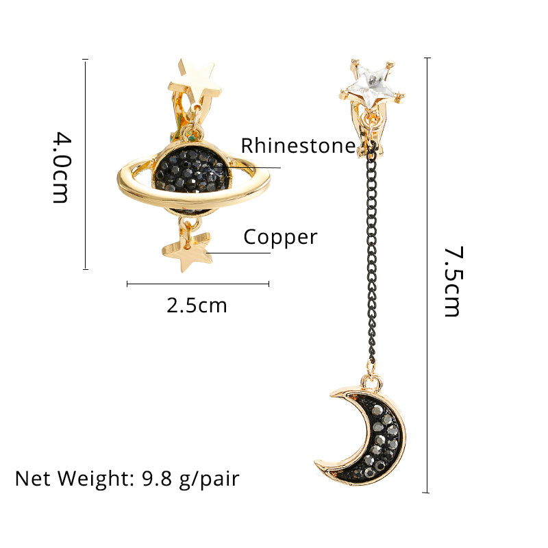 Lindos clips para las orejas con diseño asimétrico, sin perforaciones, con diseño de planeta, luna y estrella del universo