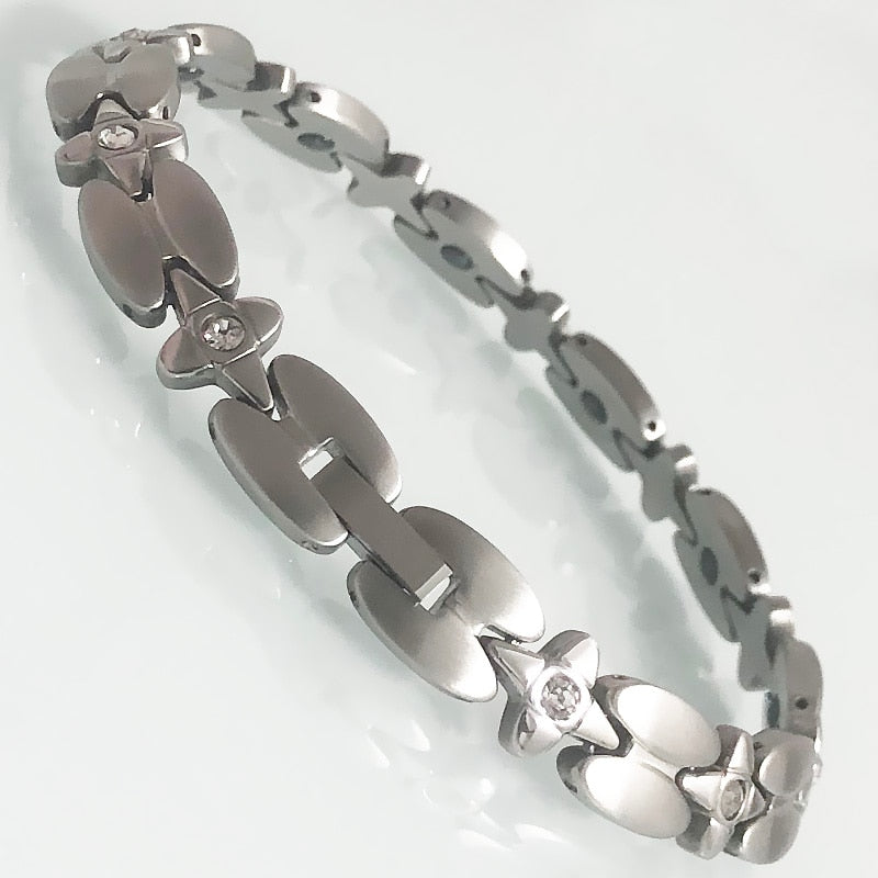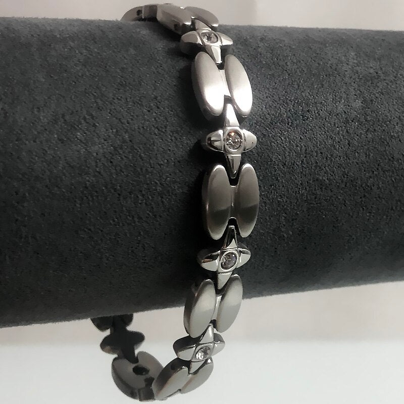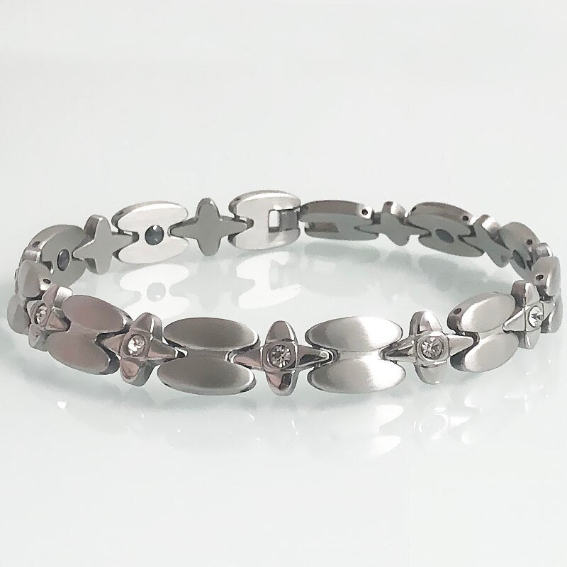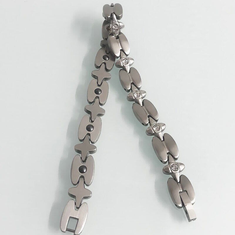 Pulsera de acero inoxidable con cruz de circonita cúbica para mujer, con beneficios para la salud, terapia magnética, cadena de mano, joyería elegante para damas y niñas.