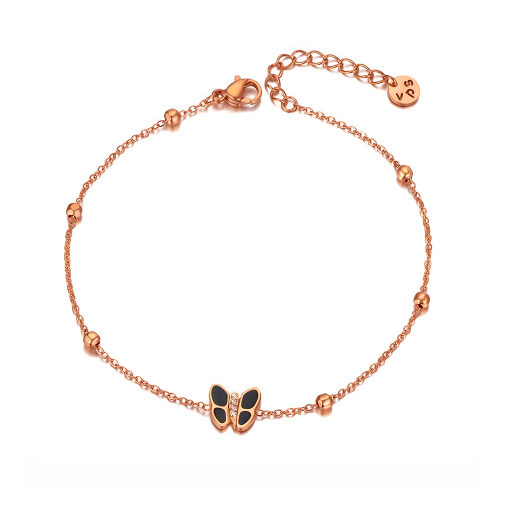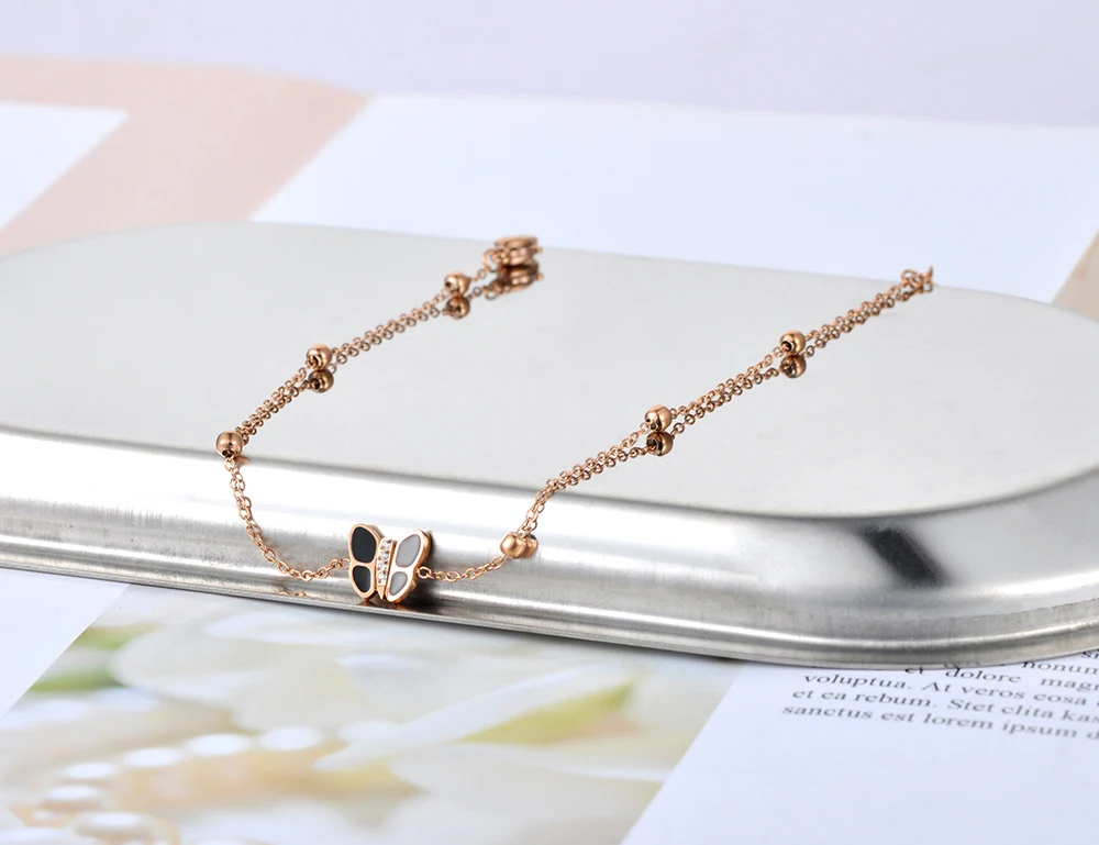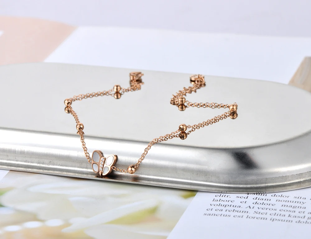 Tobillera de acero inoxidable con forma de mariposa y concha de cristal de circonia cúbica, estilo bohemio, para mujer y niña.