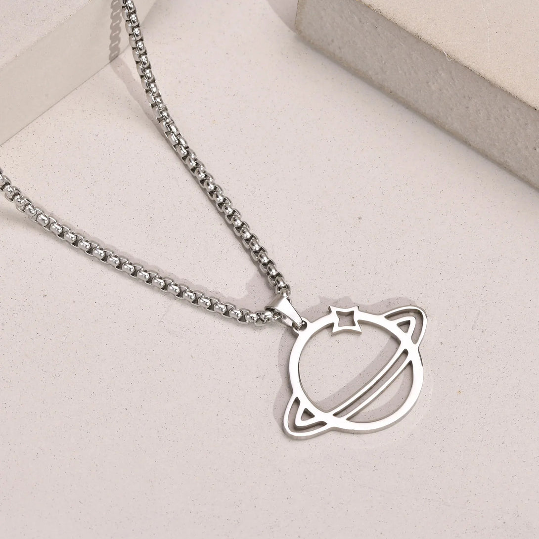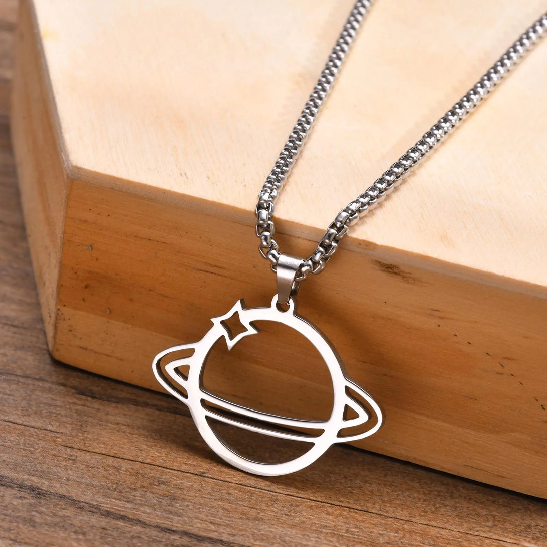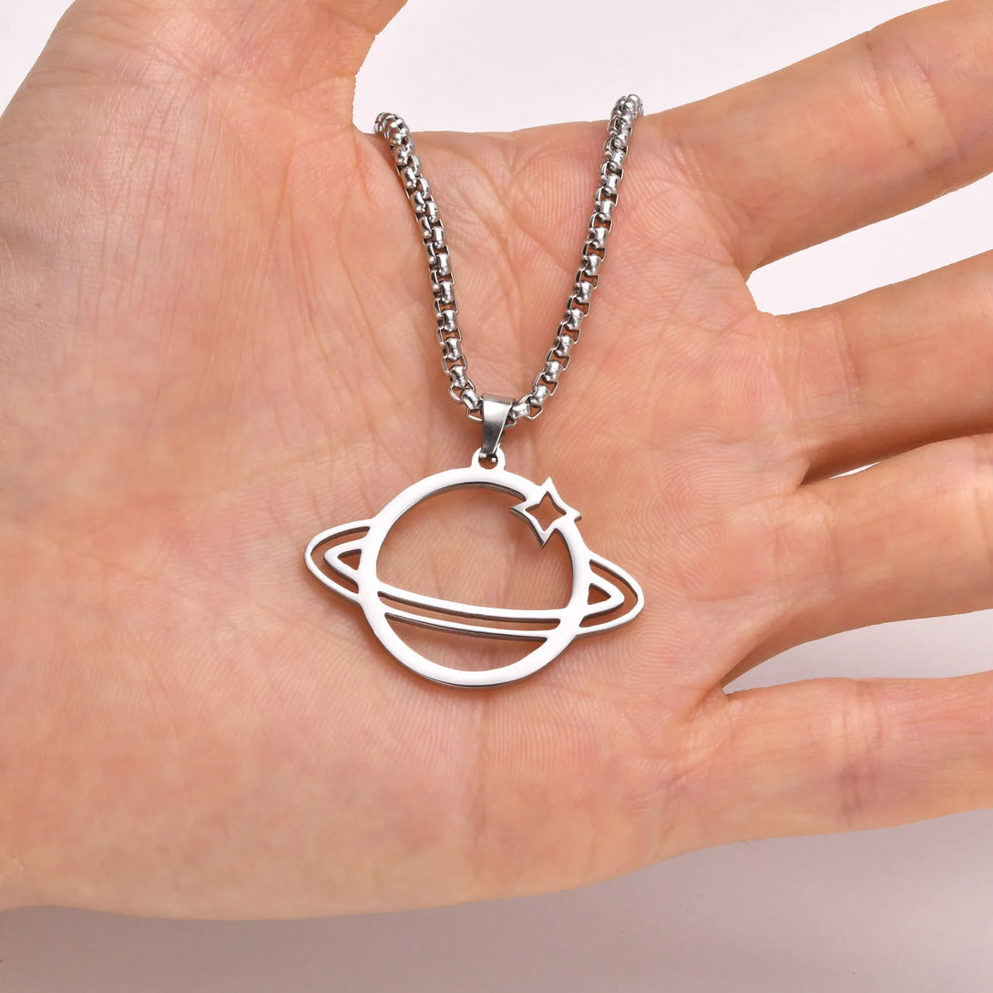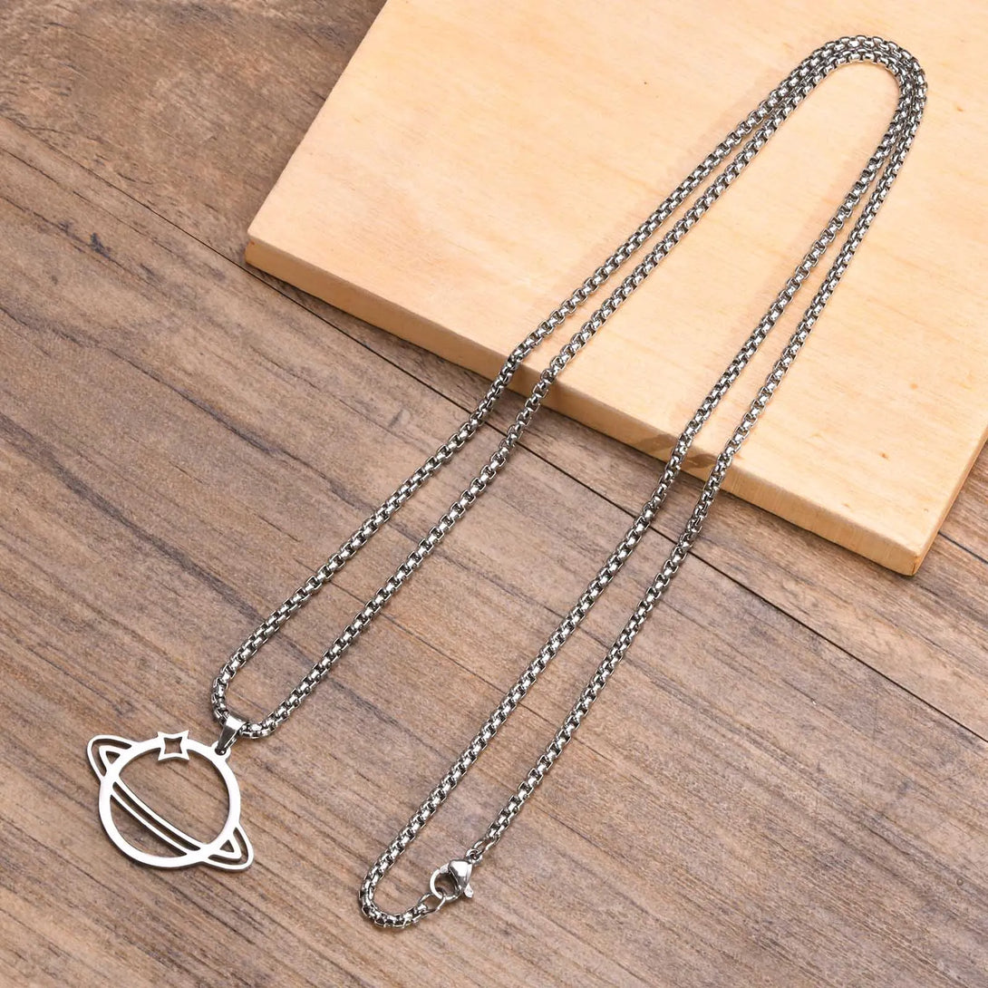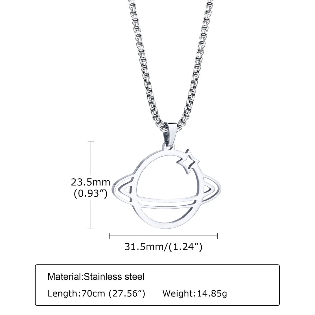 Delicado collar de Saturno, collar de acero inoxidable con planetas, collares espaciales para hombre
