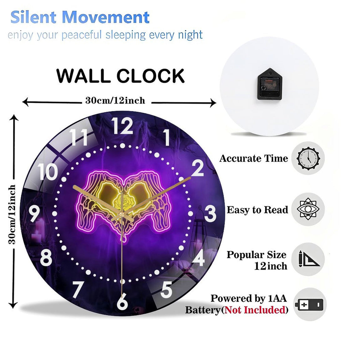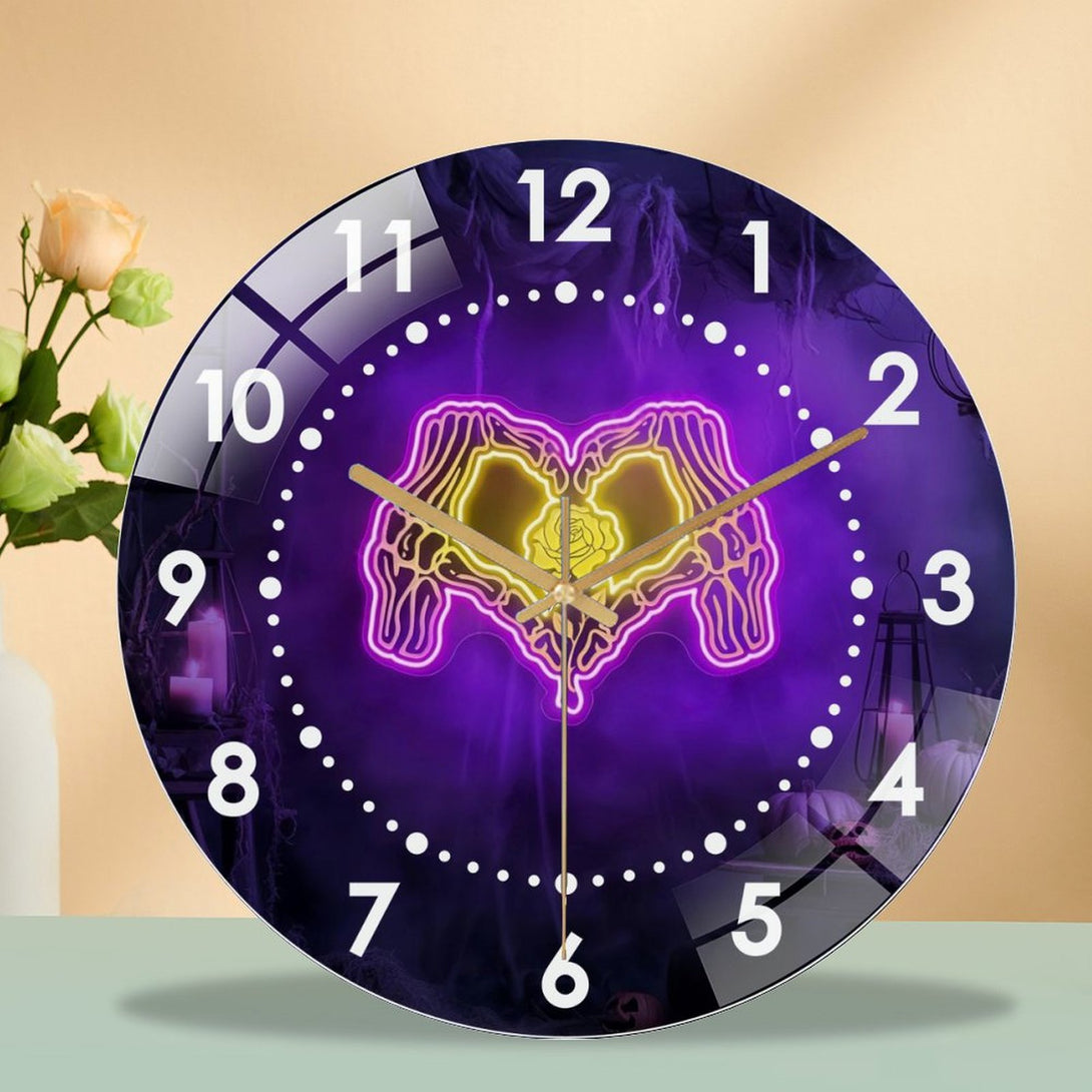 Heart Skeleton Glass Wall Clock,Skeleton Flower Decor Wall Clock for Homes, Bars, Offices, Man Caves, Garages, And Living Rooms .Also Makes A Great Gift.,12×12inch(30×30cm)