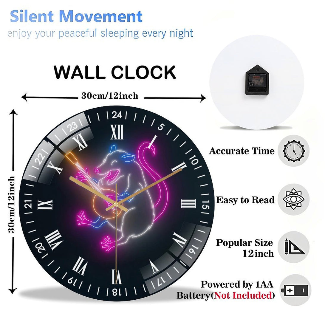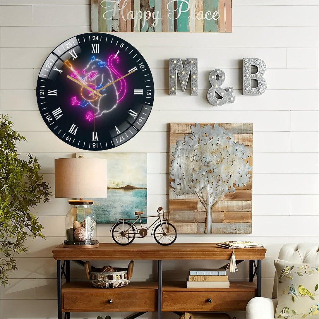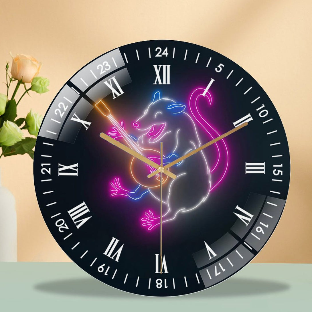 Possum Playing Banjo Wall Art Glass Wall Clock ,Possum Play Banjo Wall Clock for Home Decor, Christmas Gift for Bedroom, Game Room, Man Cave, Party Decor,12×12inch(30×30cm)