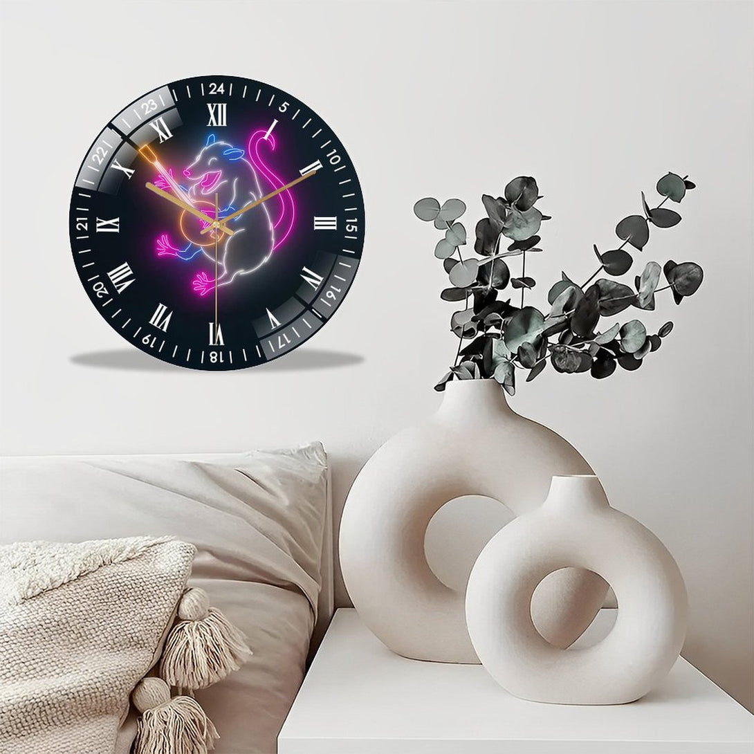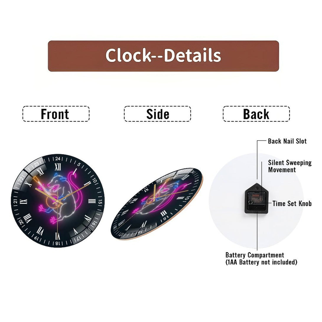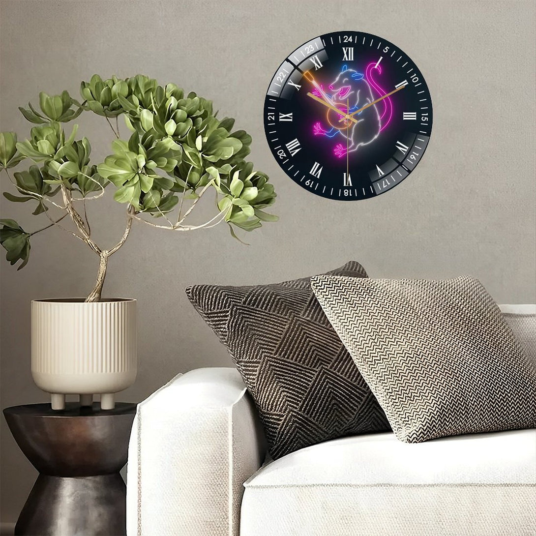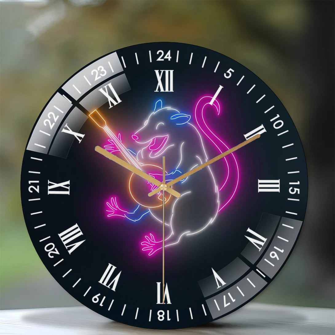 Possum Playing Banjo Wall Art Glass Wall Clock ,Possum Play Banjo Wall Clock for Home Decor, Christmas Gift for Bedroom, Game Room, Man Cave, Party Decor,12×12inch(30×30cm)