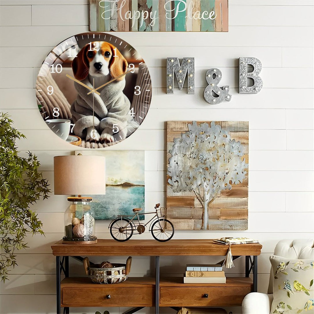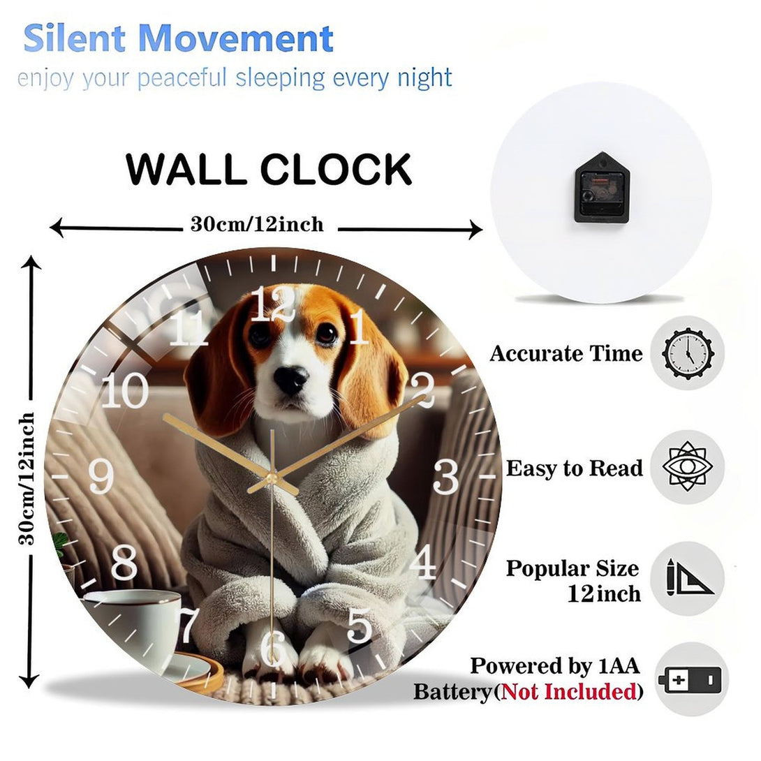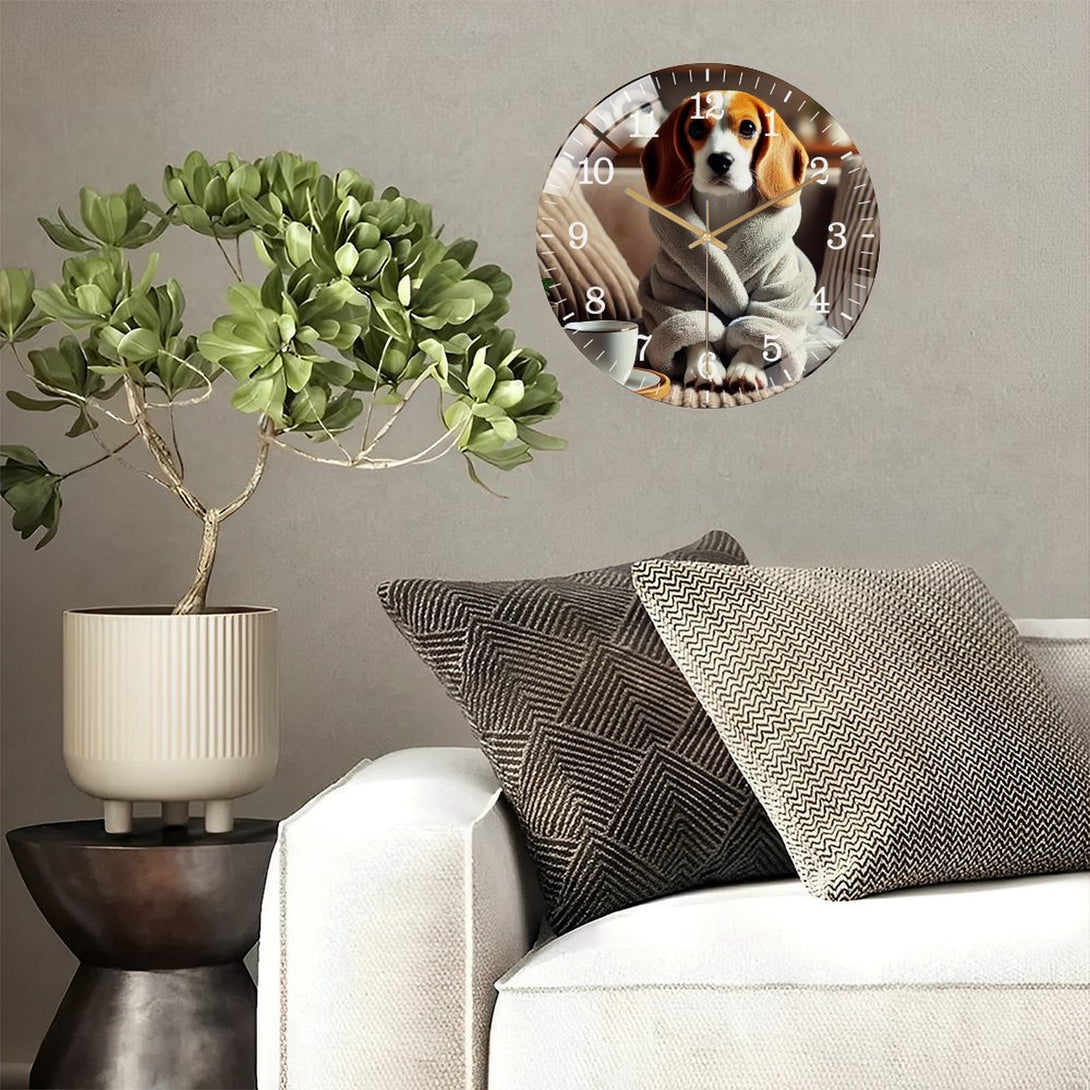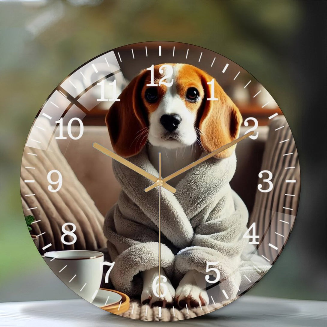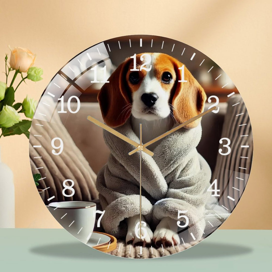 Beagle in A Bathrobe Glass Wall Clock ,Dog Lover . Pet Portrait Wall Clock for Homes, Bars, Offices, Man Caves, Garages, And Living Rooms. .Also Makes A Great Gift.,12×12inch(30×30cm)