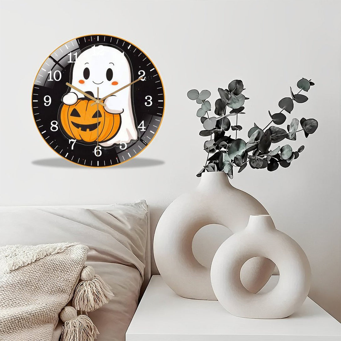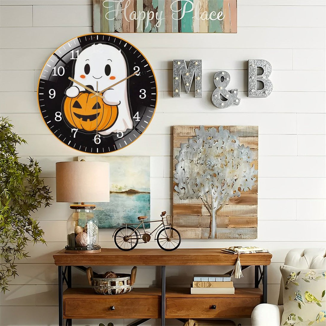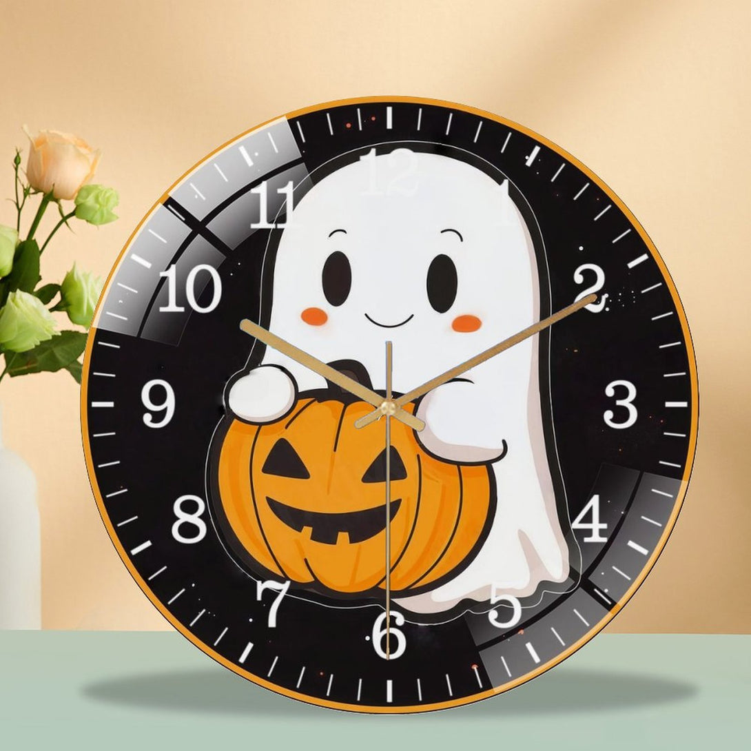 Decor Wall Clocks: Cute Ghost Holding A Pumpkin Hallo Ween Glass Wall Clock, Trick Or Treat Decor Wall Clock for Homes, Bars, Offices, Man Caves, Garages, And Living Rooms .Also Makes A Great Gift.