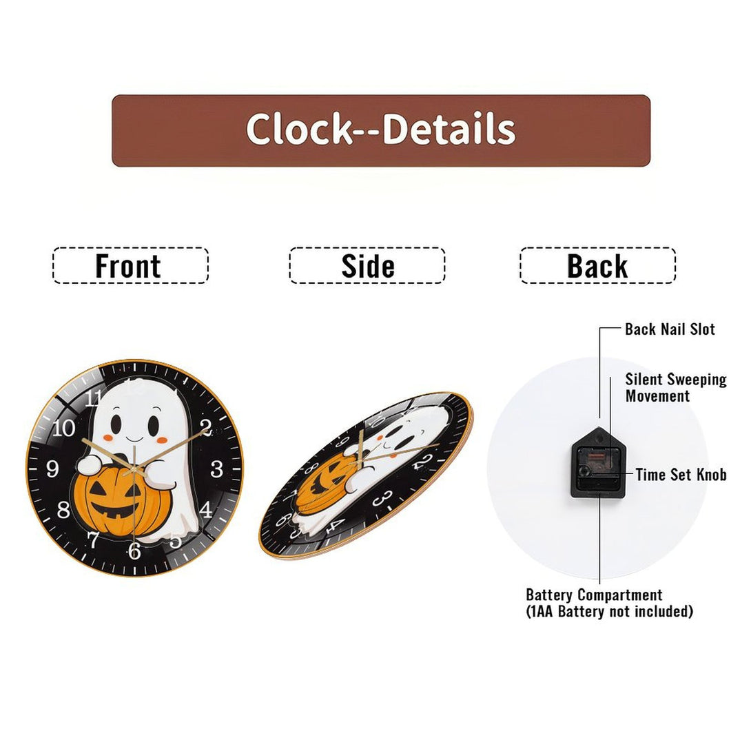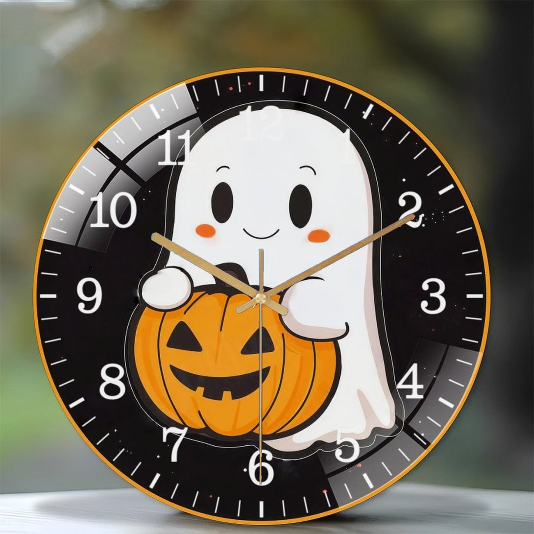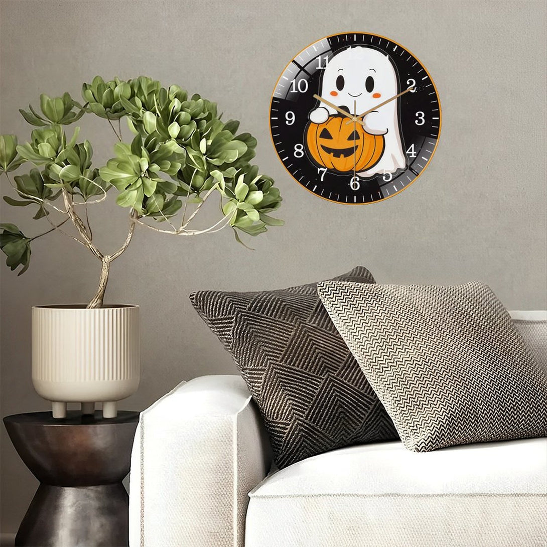 Decor Wall Clocks: Cute Ghost Holding A Pumpkin Hallo Ween Glass Wall Clock, Trick Or Treat Decor Wall Clock for Homes, Bars, Offices, Man Caves, Garages, And Living Rooms .Also Makes A Great Gift.