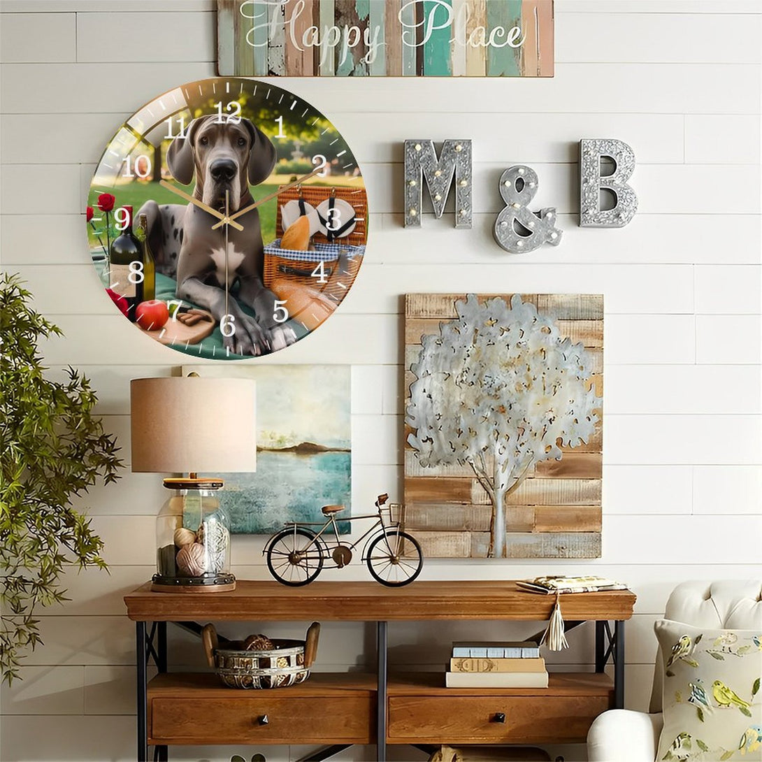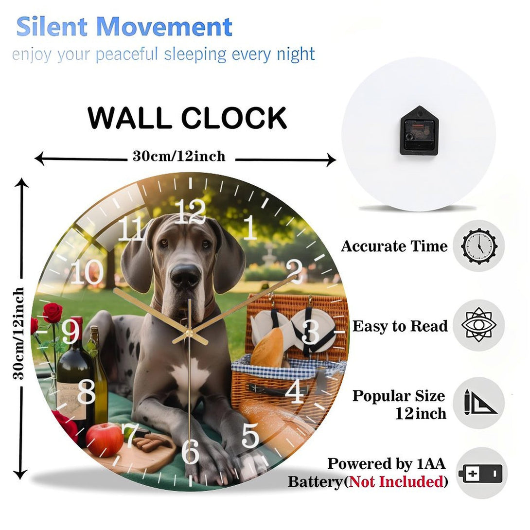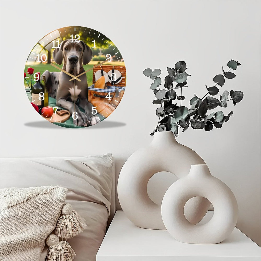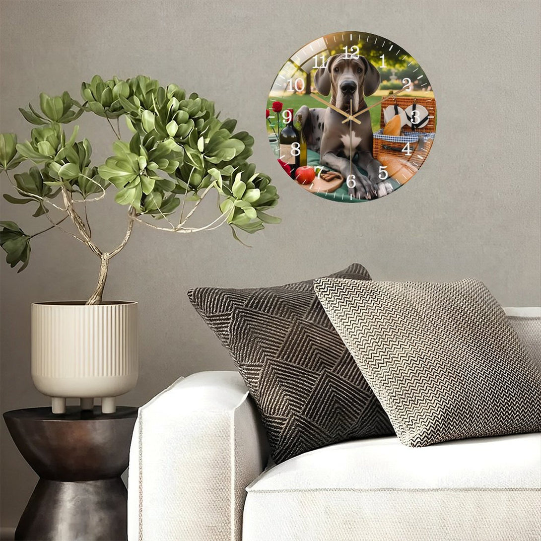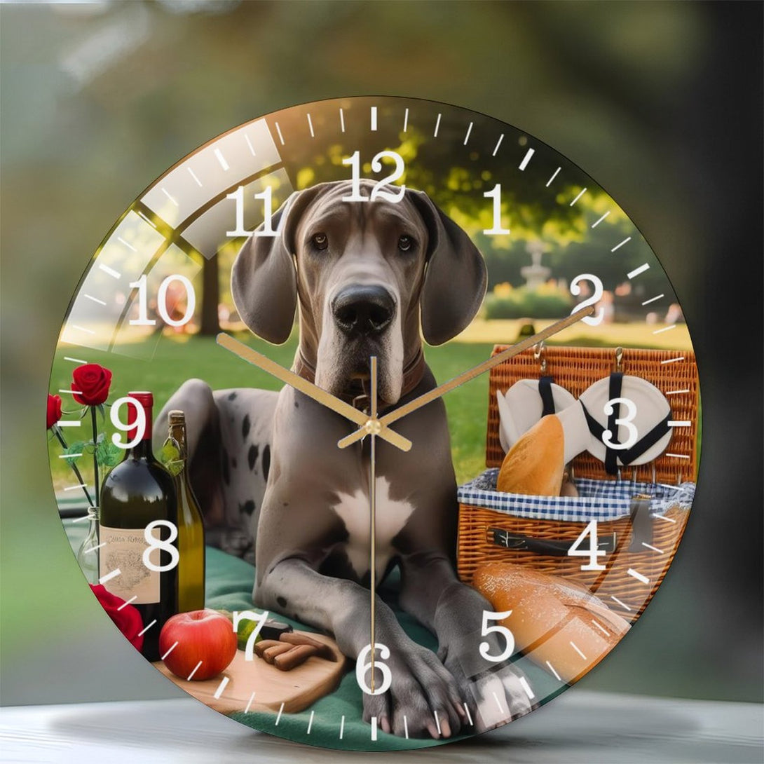 Great Dane Having A Picnic Glass Wall Clock ,Dog Lover . Pet Portrait Wall Clock for Homes, Bars, Offices, Man Caves, Garages, And Living Rooms. .Also Makes A Great Gift.,12×12inch(30×30cm)