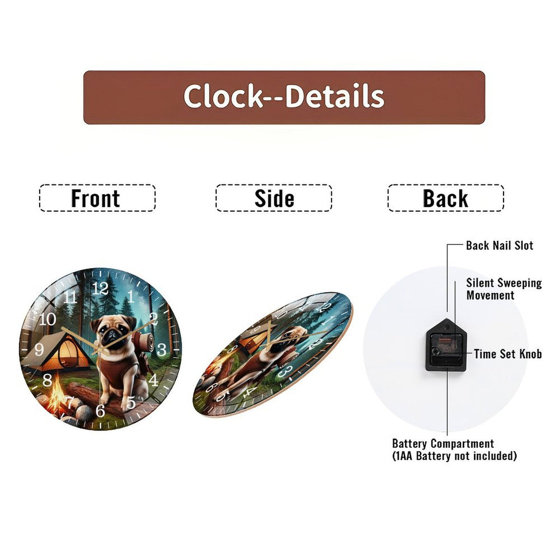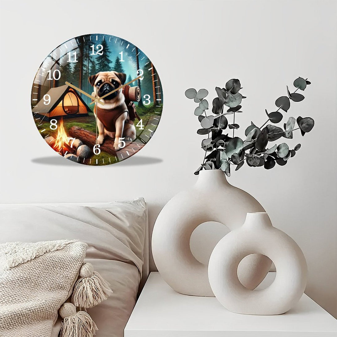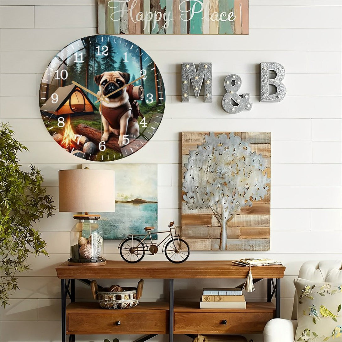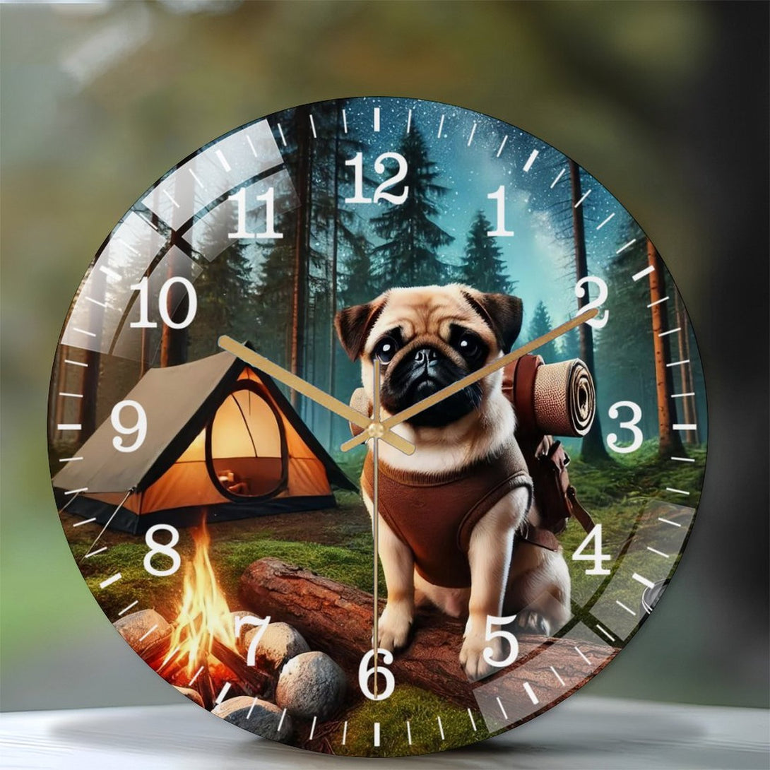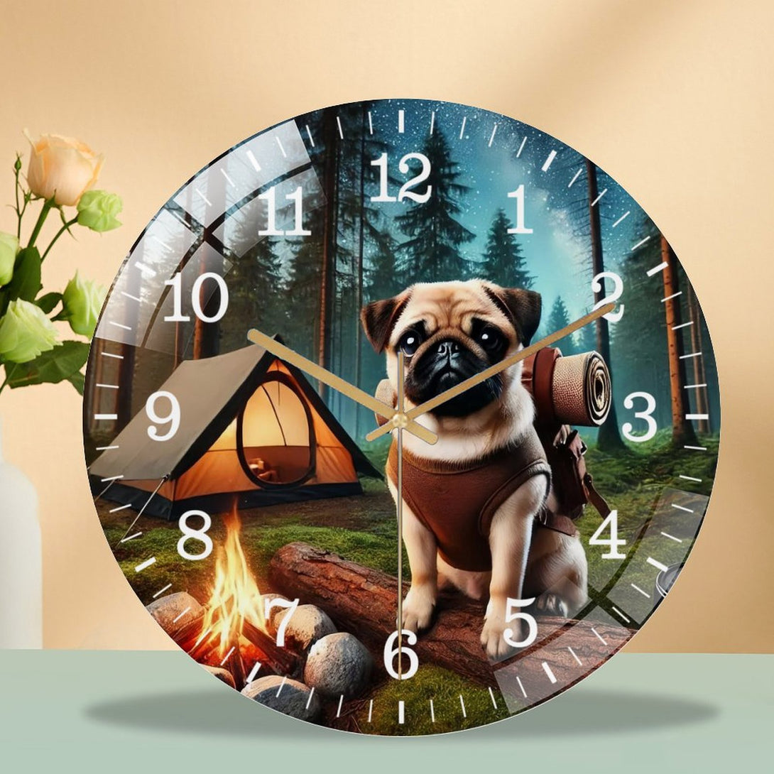 Pug on A Adventure Glass Wall Clock ,Dog Lover Wall Clock for Homes, Bars, Offices, Man Caves, Garages, And Living Rooms. Hallo Ween Gift .Also Makes A Great Gift.,12×12inch(30×30cm)