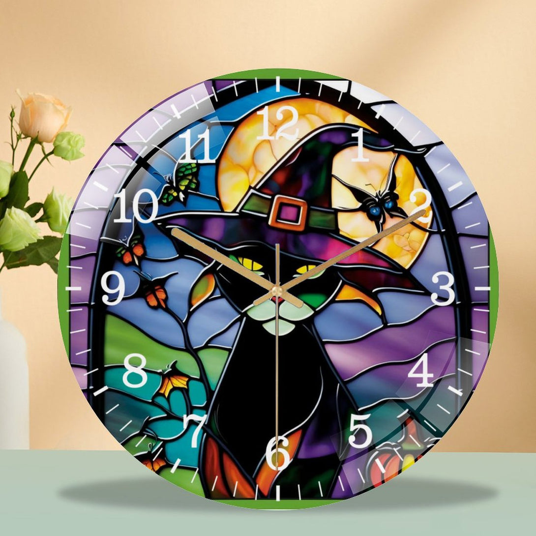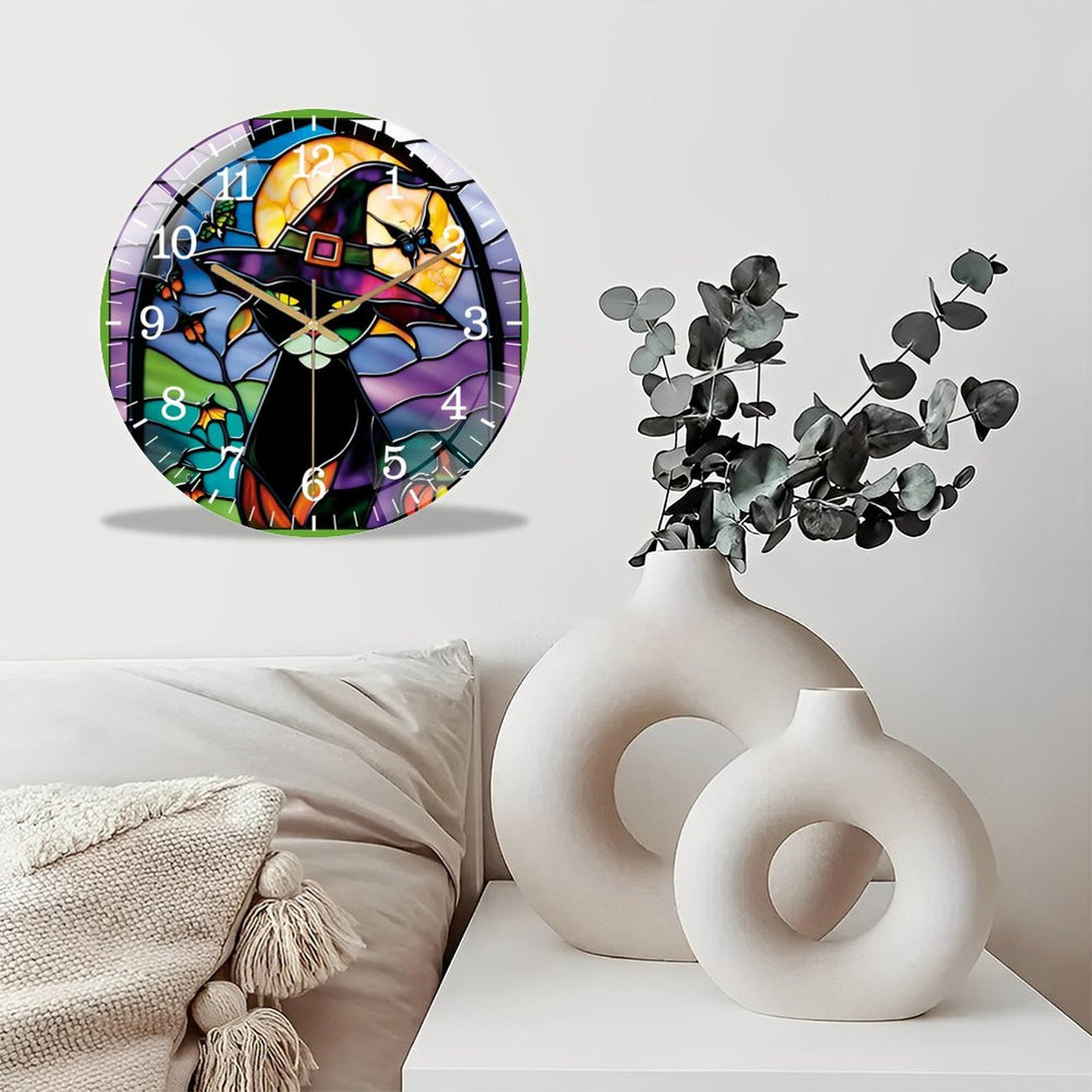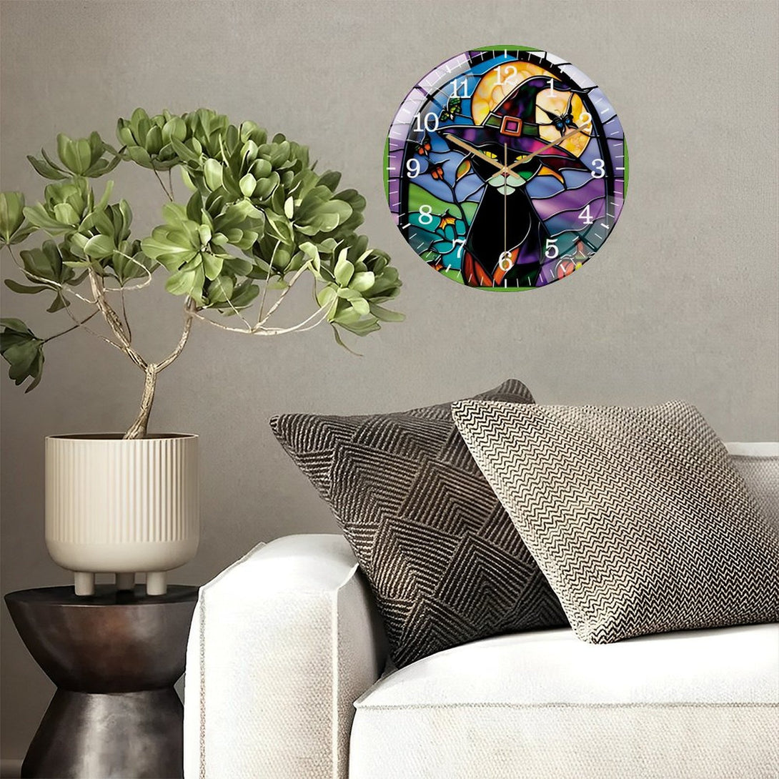 Round Faux Stained Glass Black Cat Glass Wall Clock for Homes, Bars, Offices, Man Caves, Garages, And Living Rooms. Also Makes A Great Gift.,12×12inch(30×30cm)