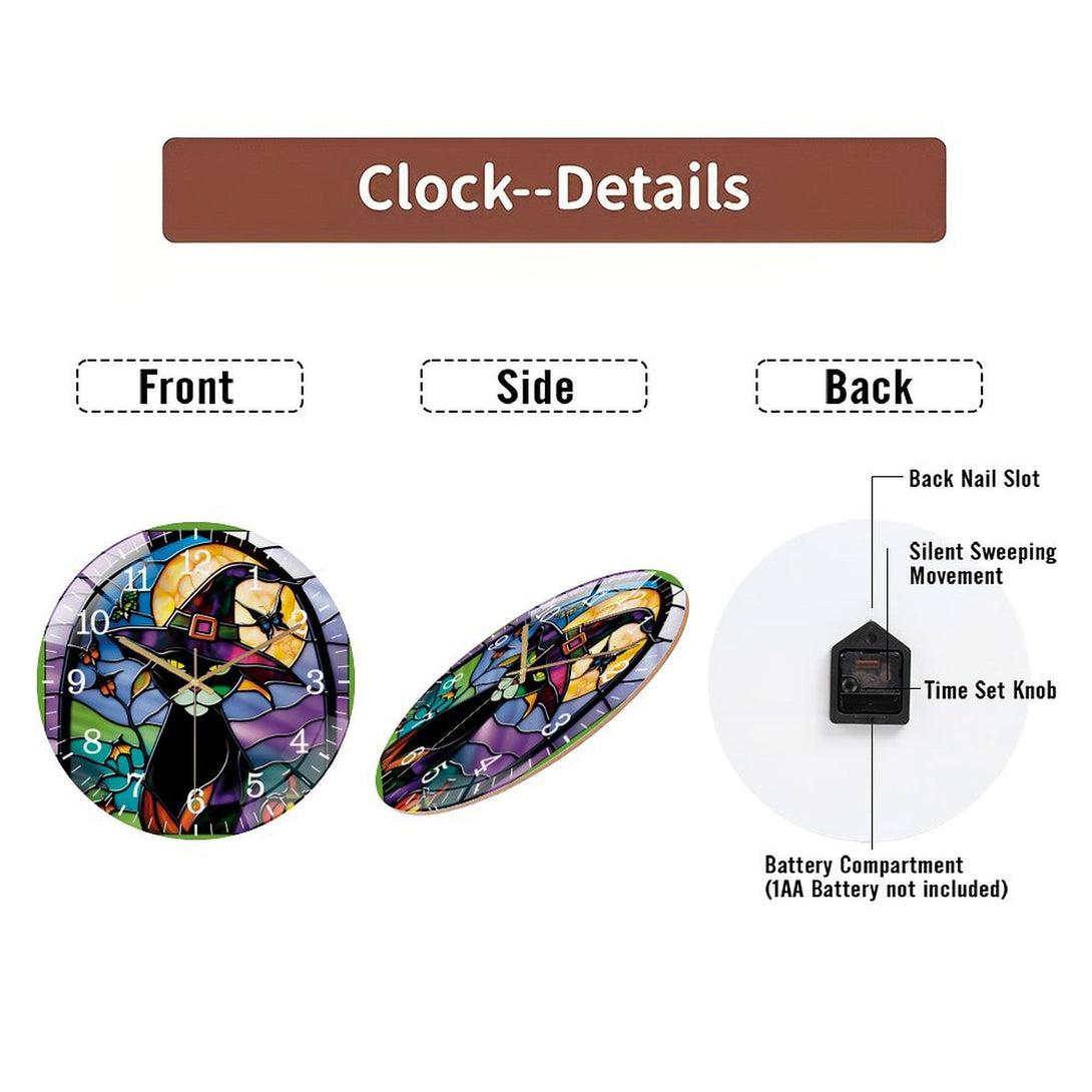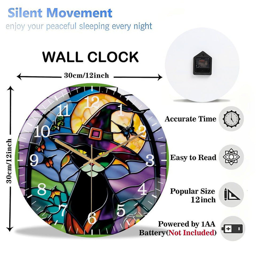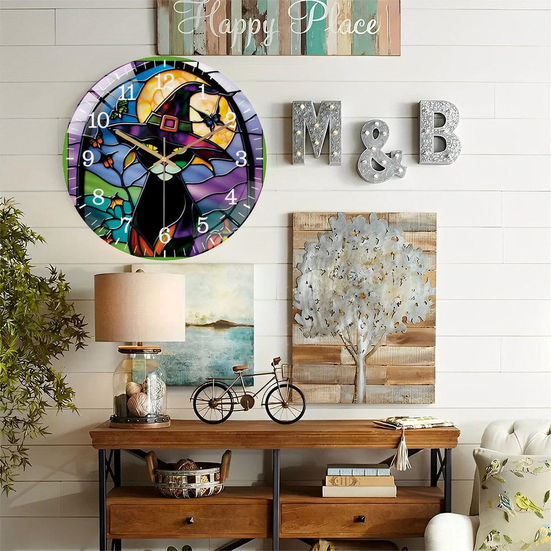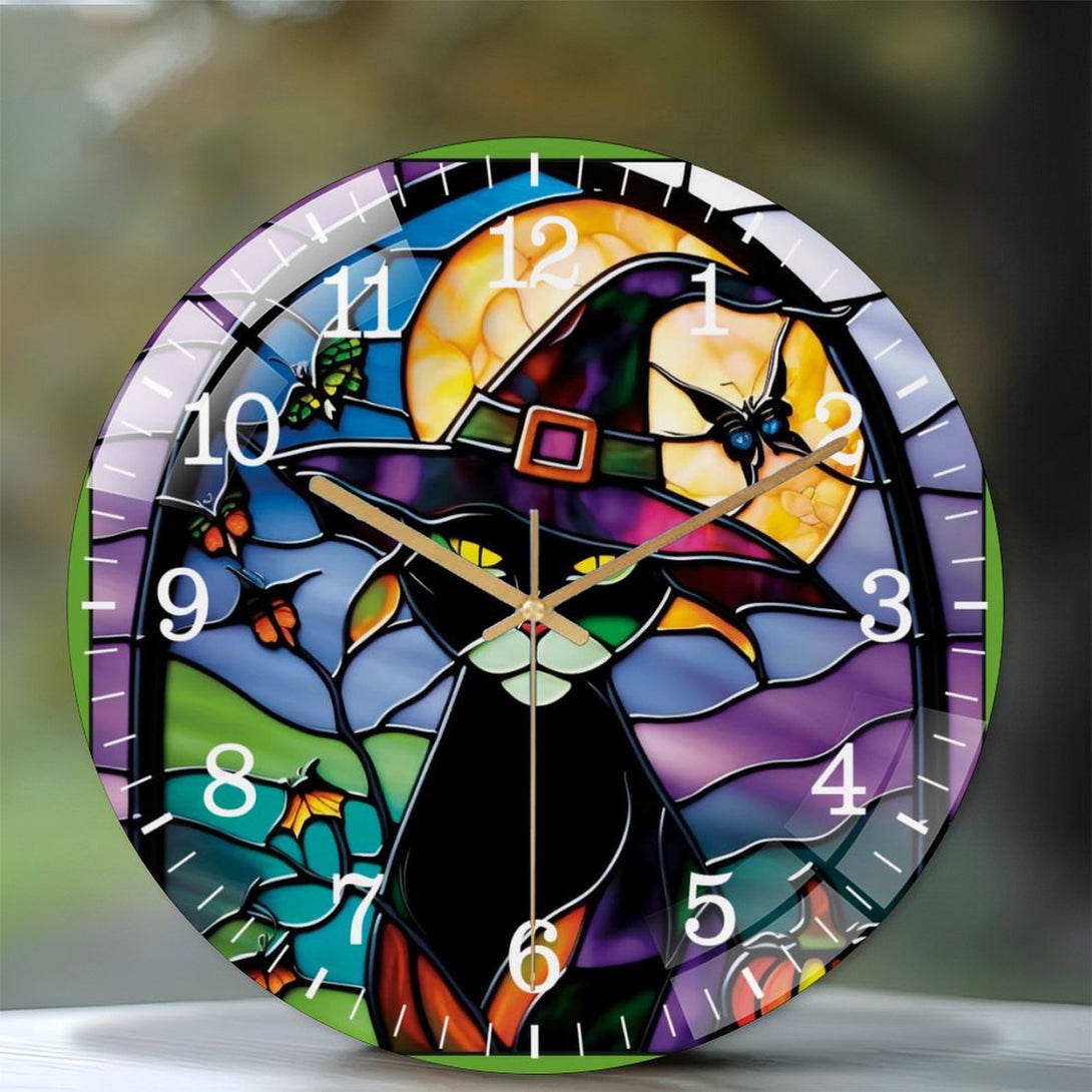 Round Faux Stained Glass Black Cat Glass Wall Clock for Homes, Bars, Offices, Man Caves, Garages, And Living Rooms. Also Makes A Great Gift.,12×12inch(30×30cm)