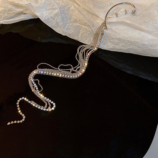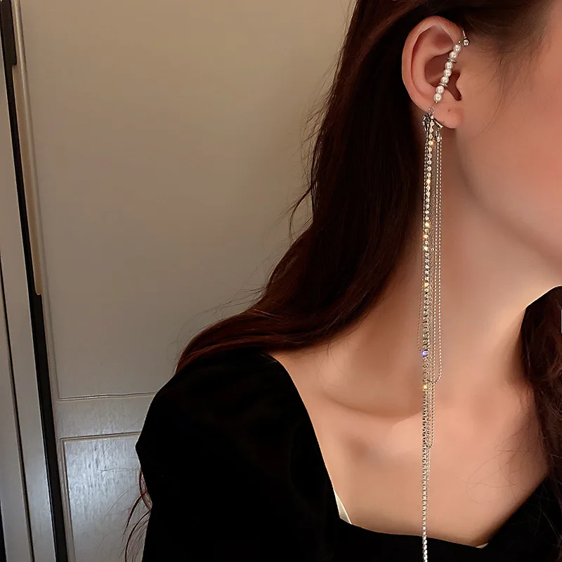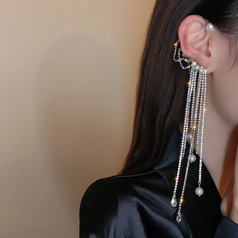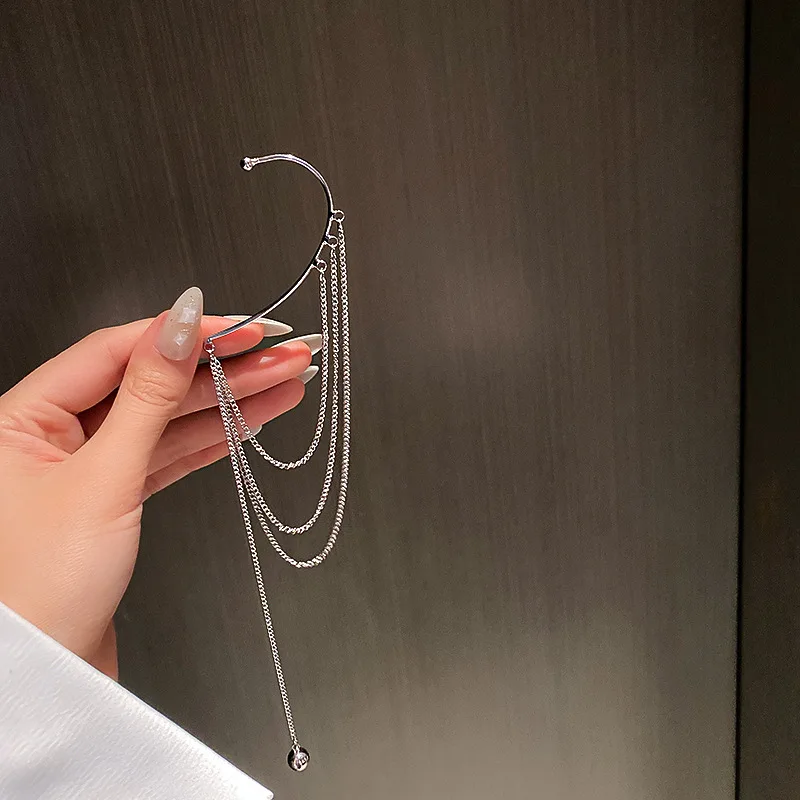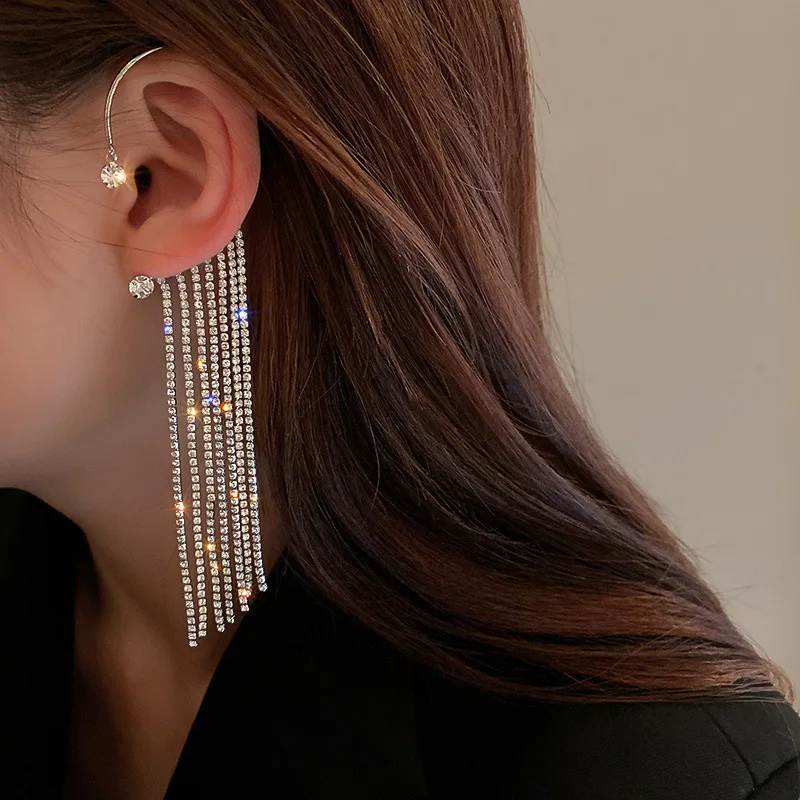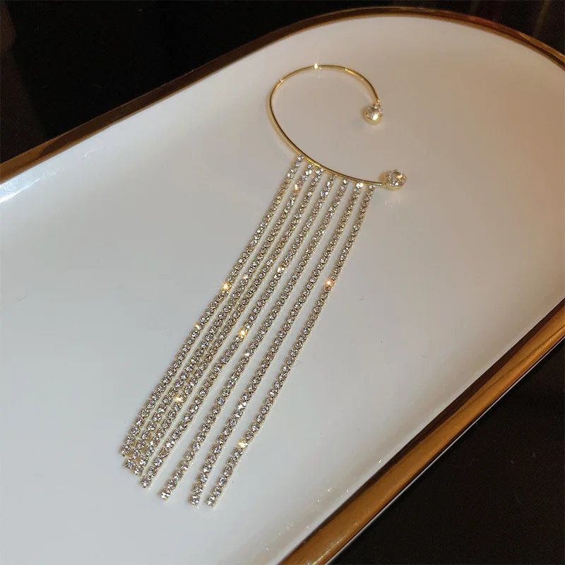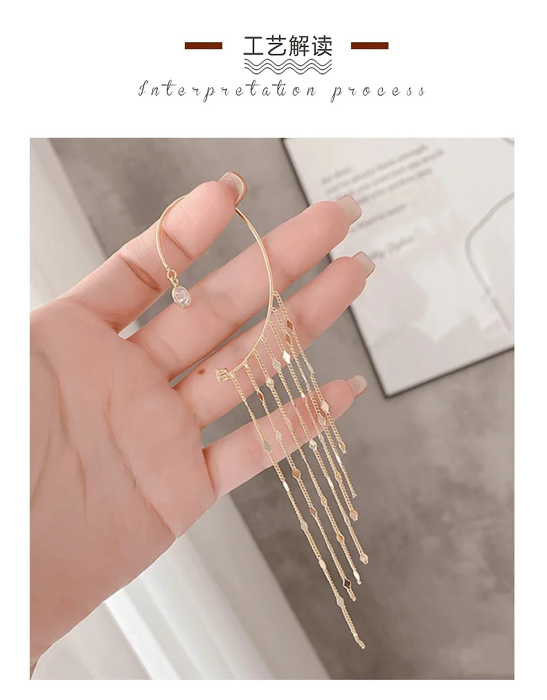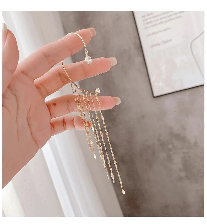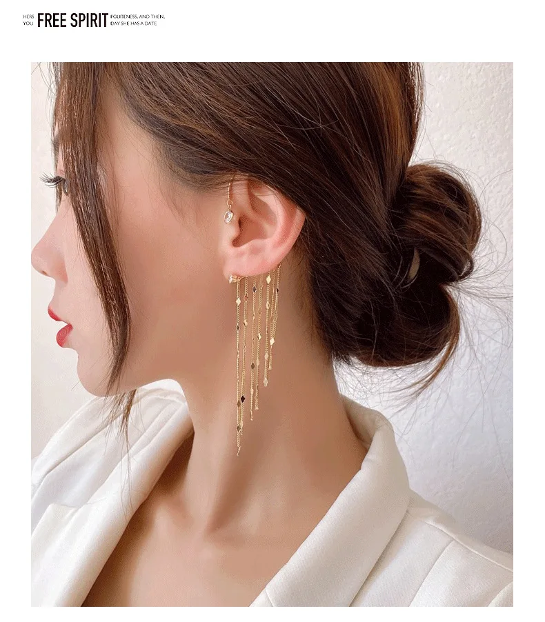 Pendientes de moda: delicados pendientes largos con borlas chapados en oro para mujer, con clip para oreja, exquisitos pendientes sin perforación, joyería de boda.