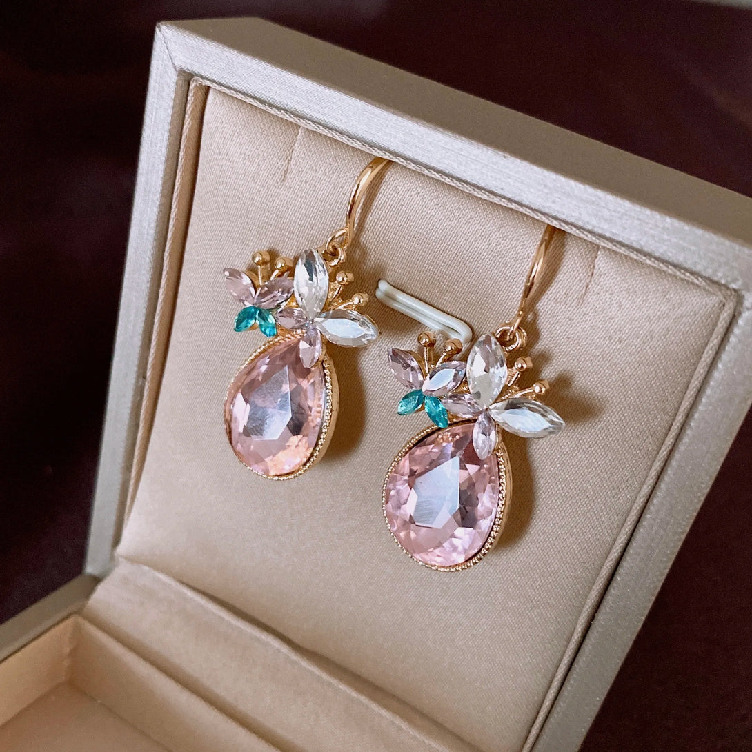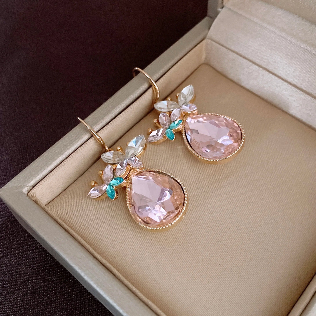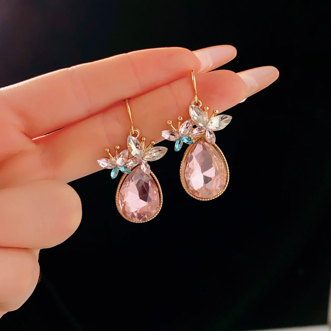 Delicados pendientes de circonita rosa para mujer, a la moda, con mariposa brillante y gota de agua.