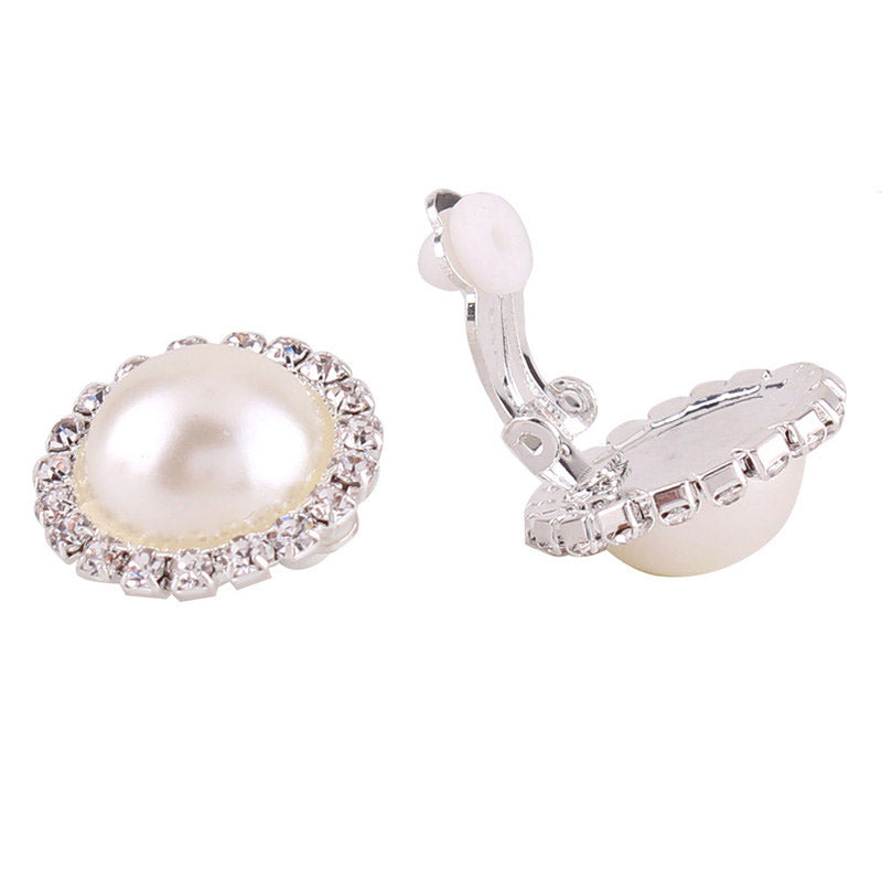 Ideales para bodas, fiestas, clubes y desfiles, estos hermosos aretes con clip de diamantes de imitación plateados están incrustados con diamantes de imitación brillantes y son perfectos para una princesa el día de la boda.