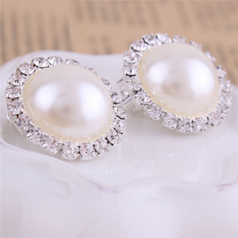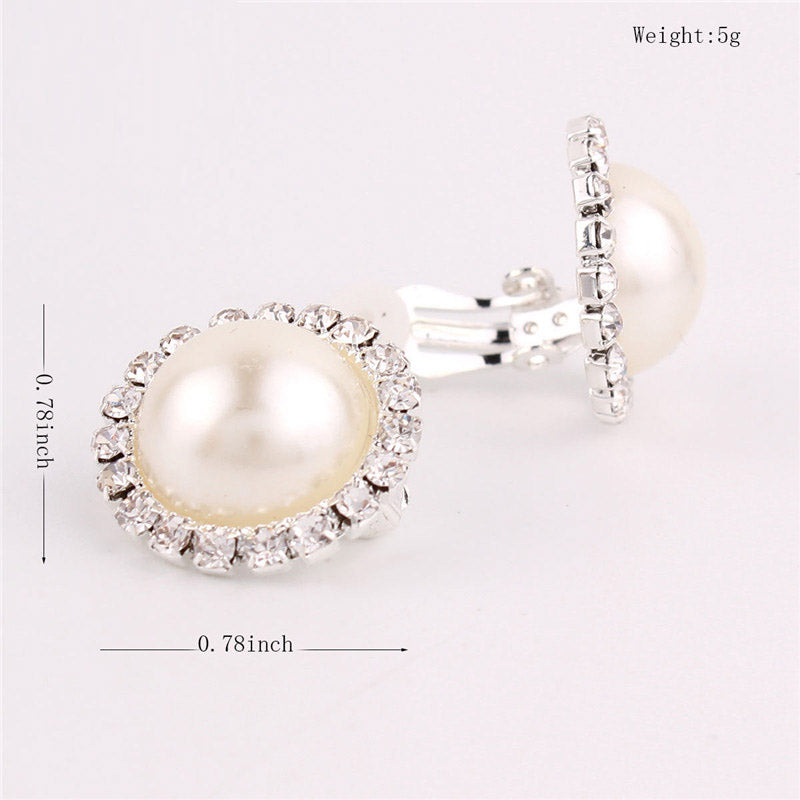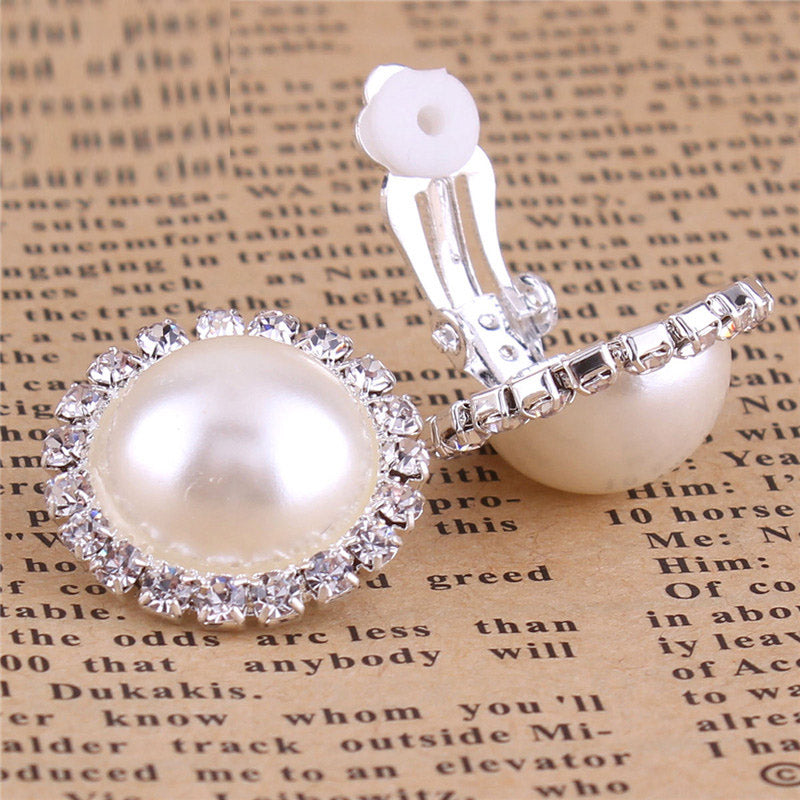 Pendientes de moda: nuevo diseño de doble forma redonda con diamantes de imitación y clip sin perforación, pendientes de moda con perla simulada.
