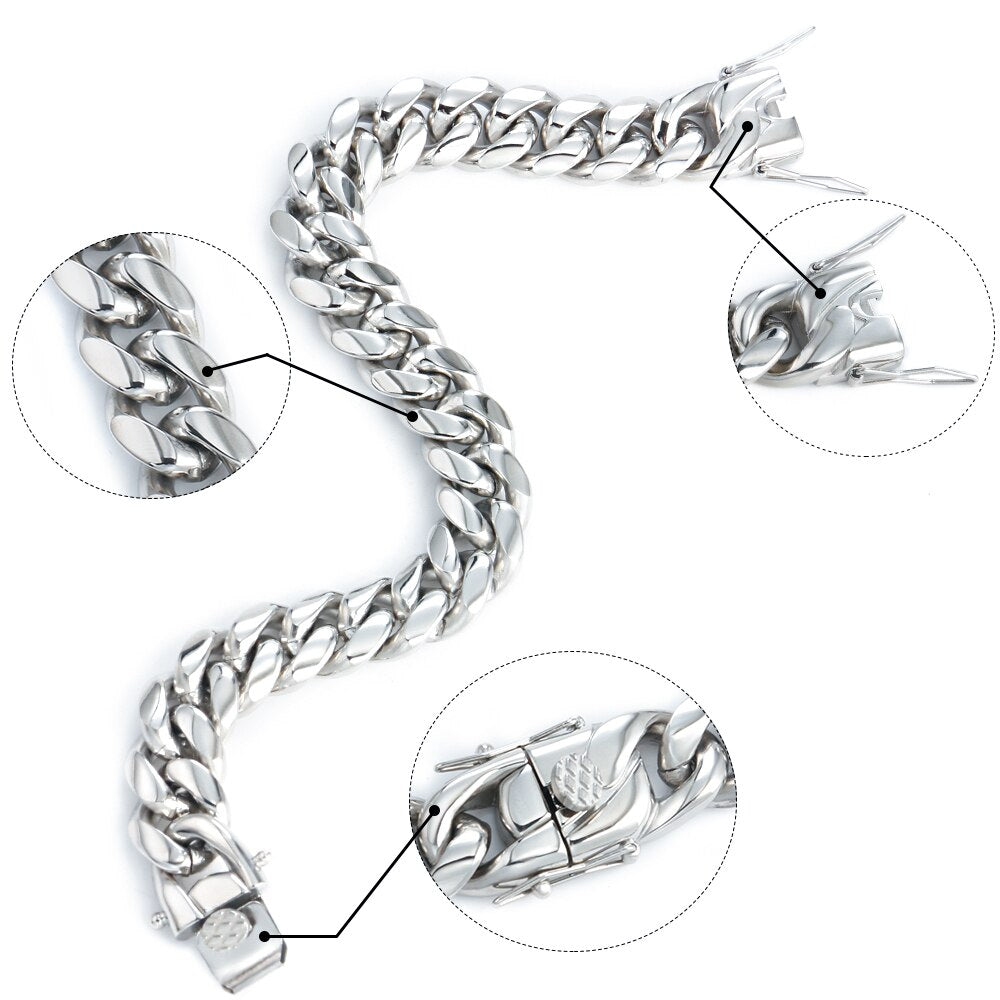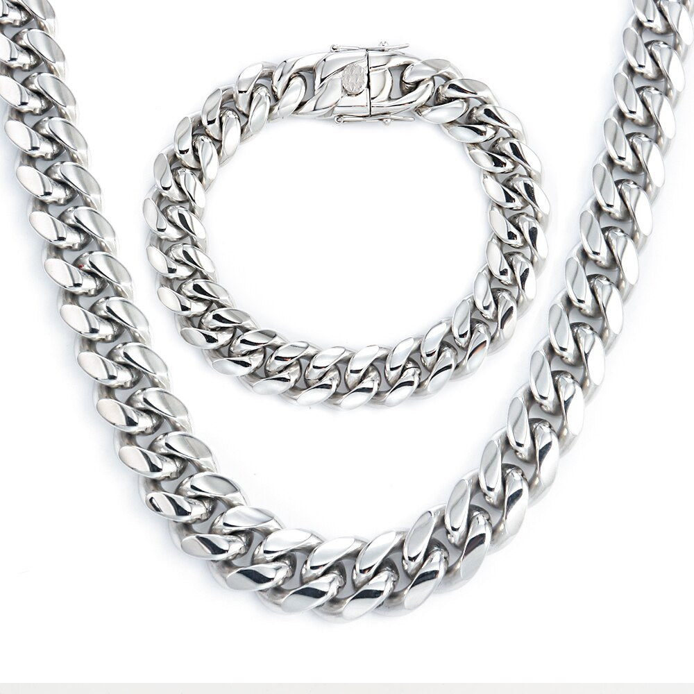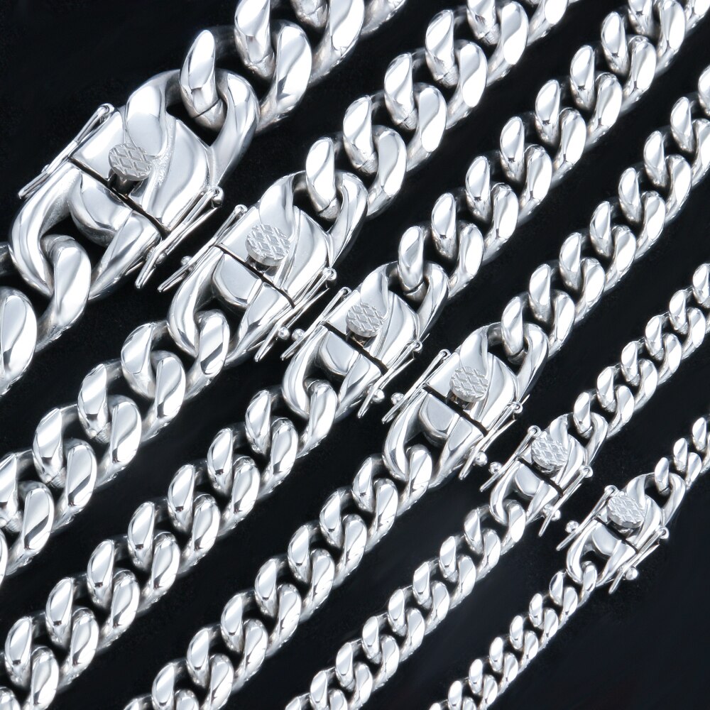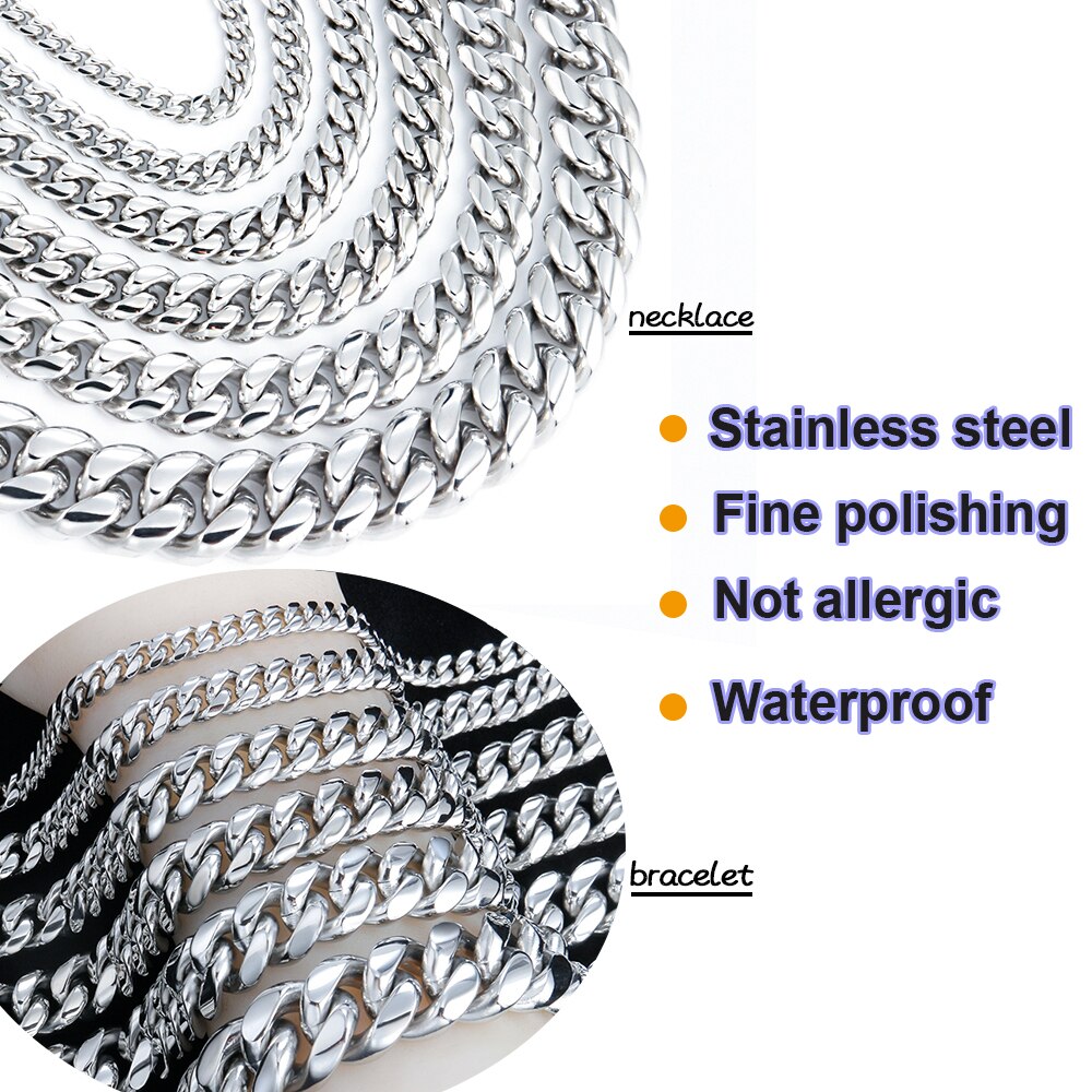 Collar de acero inoxidable 316L con cadena de eslabones cubanos de hip hop para hombre y mujer, pulsera de plata, joyería de moda 2021.