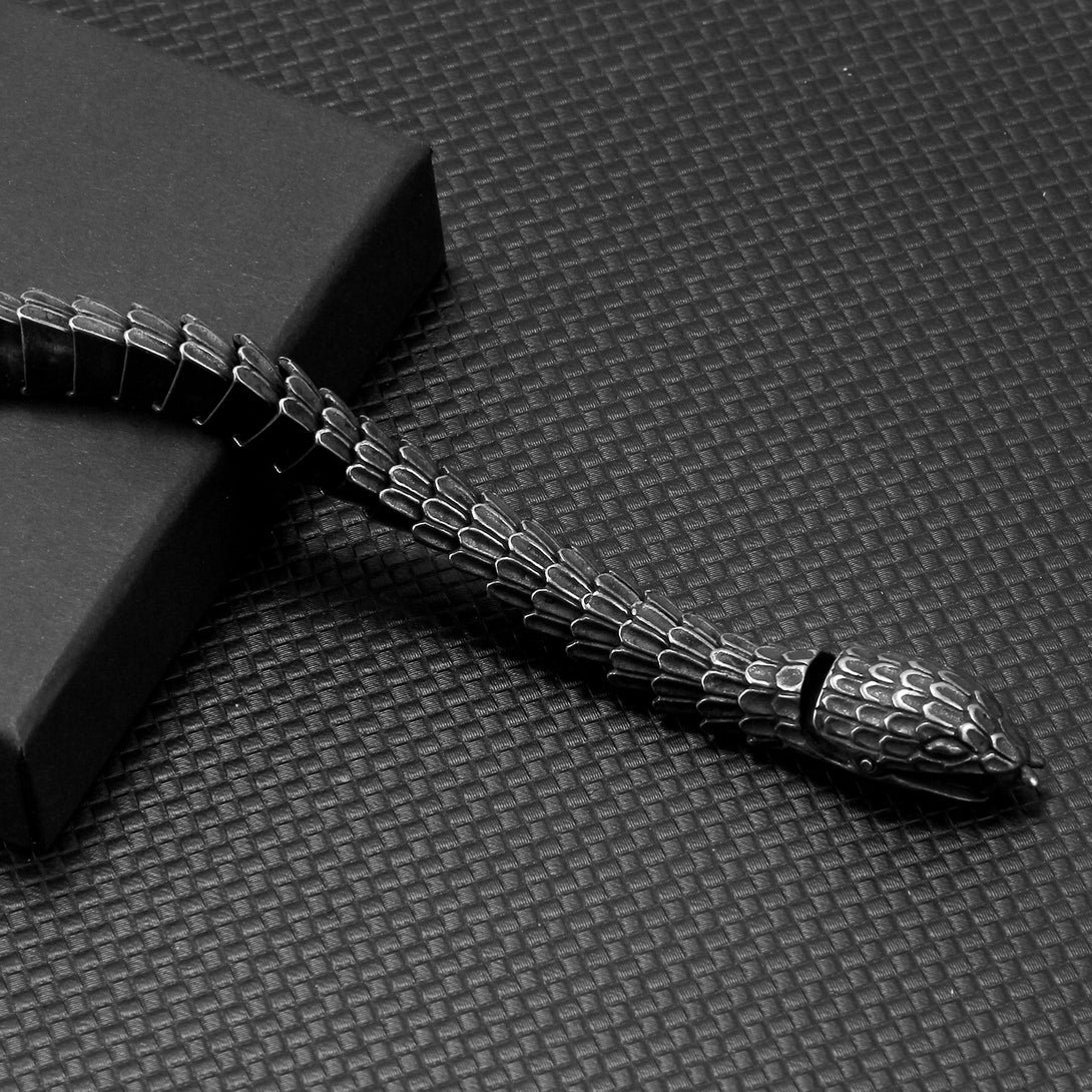 Pulsera de acero inoxidable 316L con diseño de serpiente para hombre y mujer, cadena negra estilo punk.