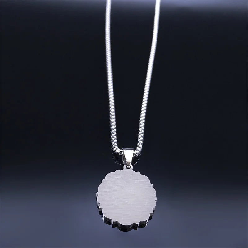 Collar con medalla ovalada de acero inoxidable "Divina Gracia" para mujer y hombre, color plata