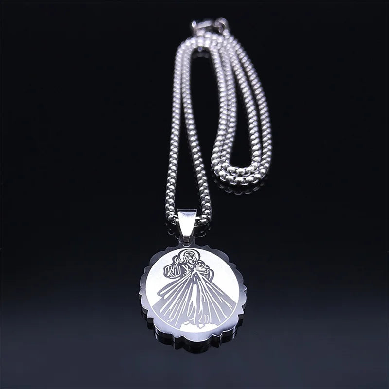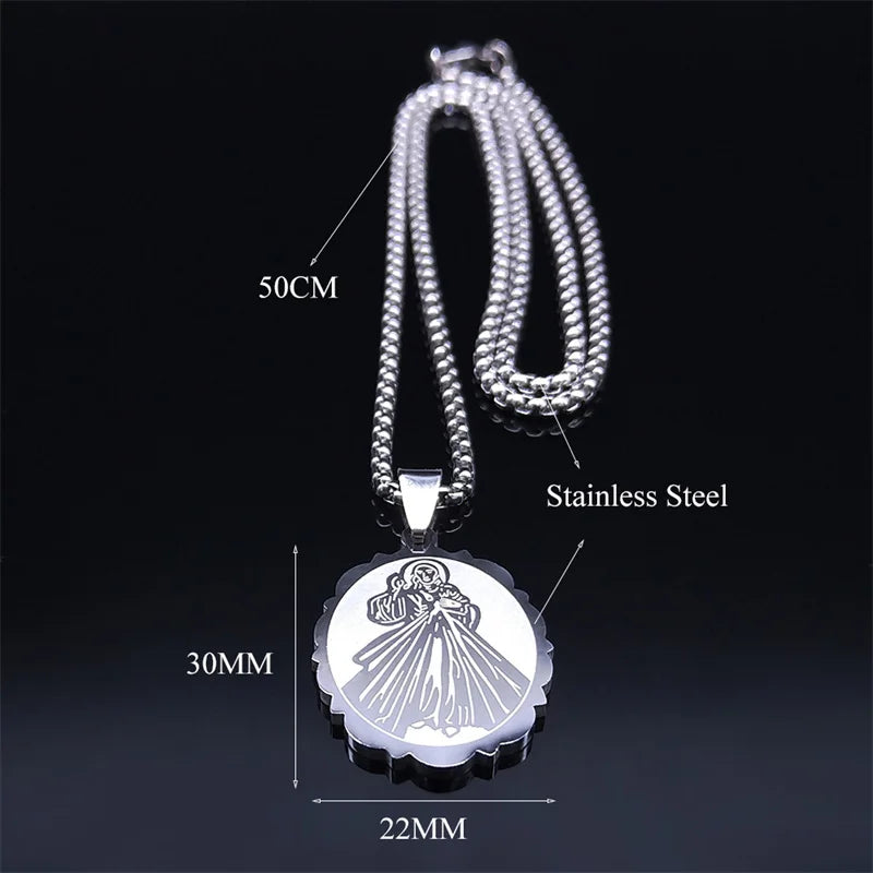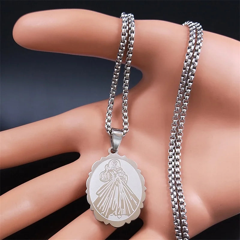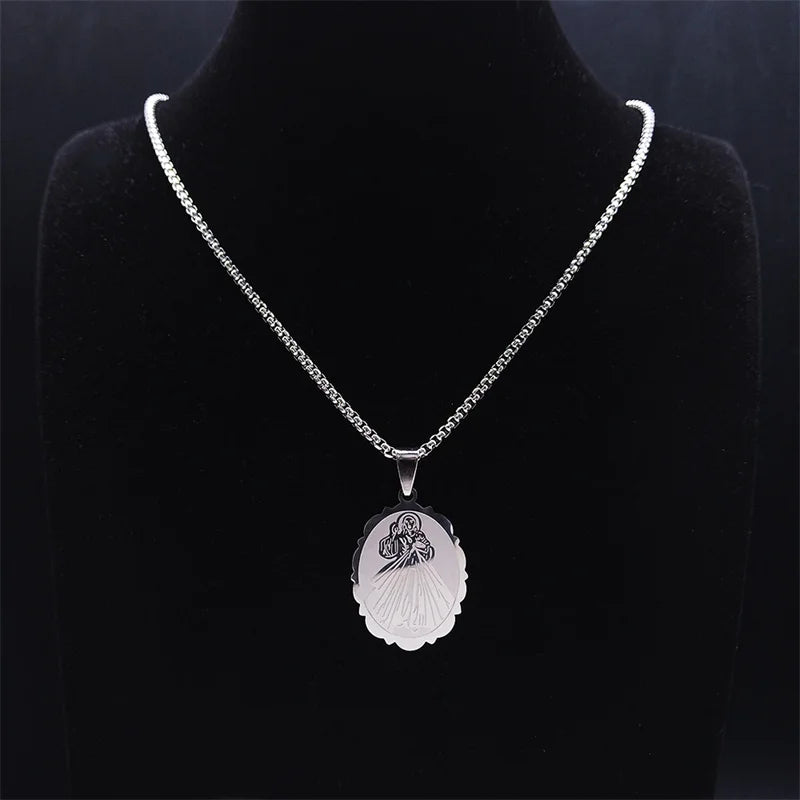 Collar con medalla ovalada de acero inoxidable de la Divina Gracia para mujer y hombre, color plata, collares religiosos de arcángel, joyería