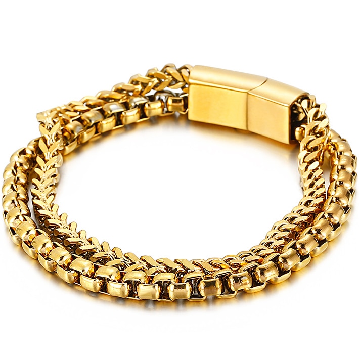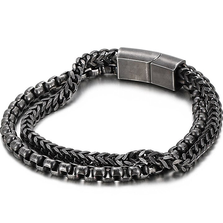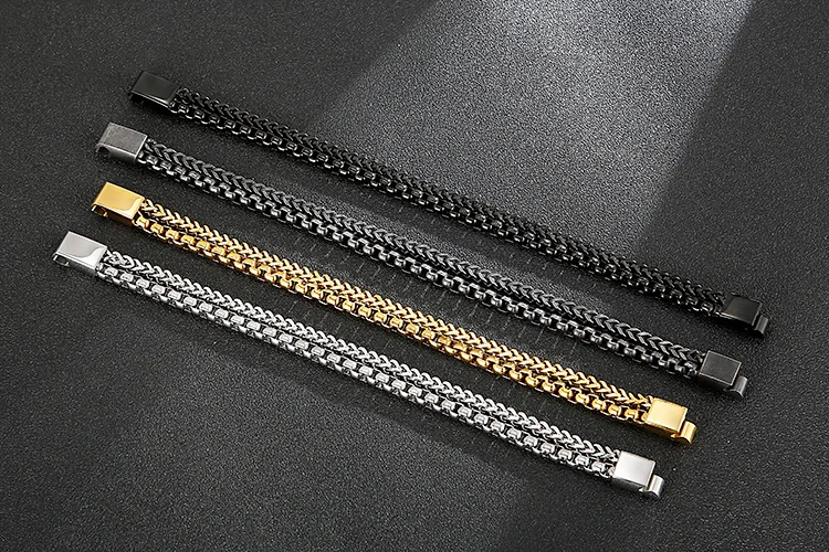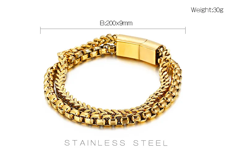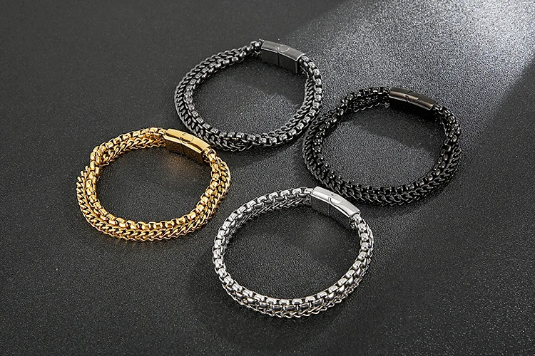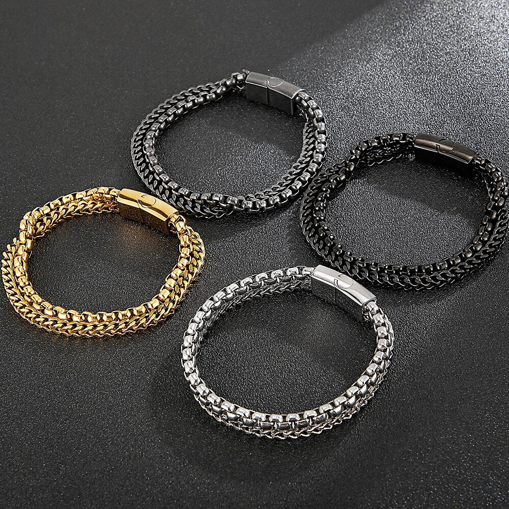 Pulsera de doble cadena para hombre con cierre magnético, estilo hip hop, de acero inoxidable, accesorios de joyería para hombre, regalos para su marido.