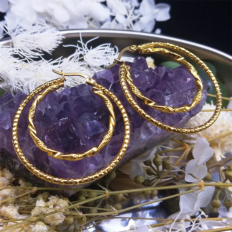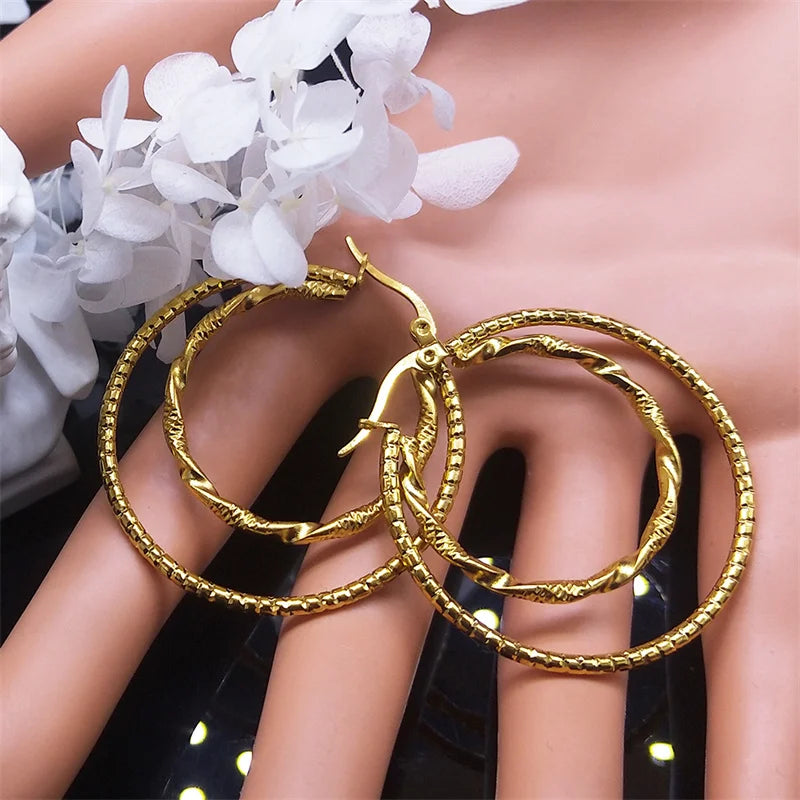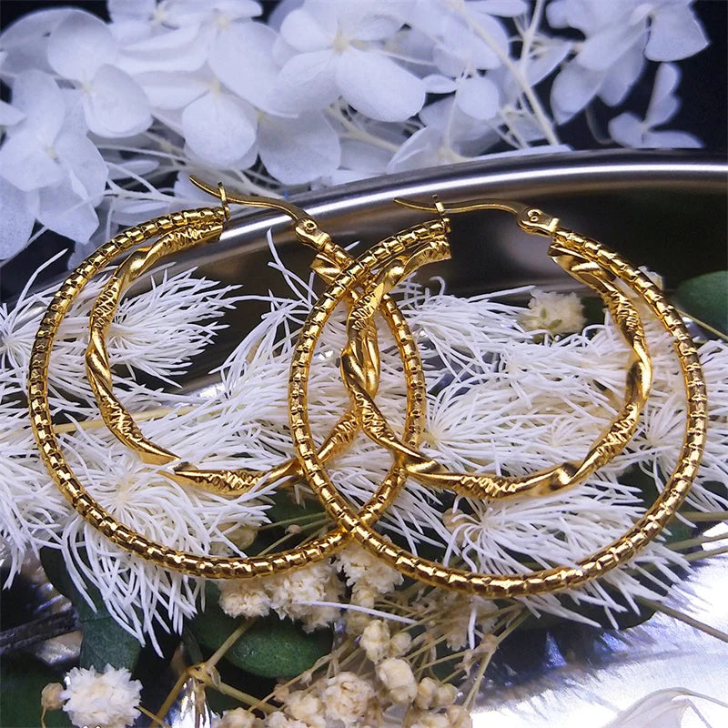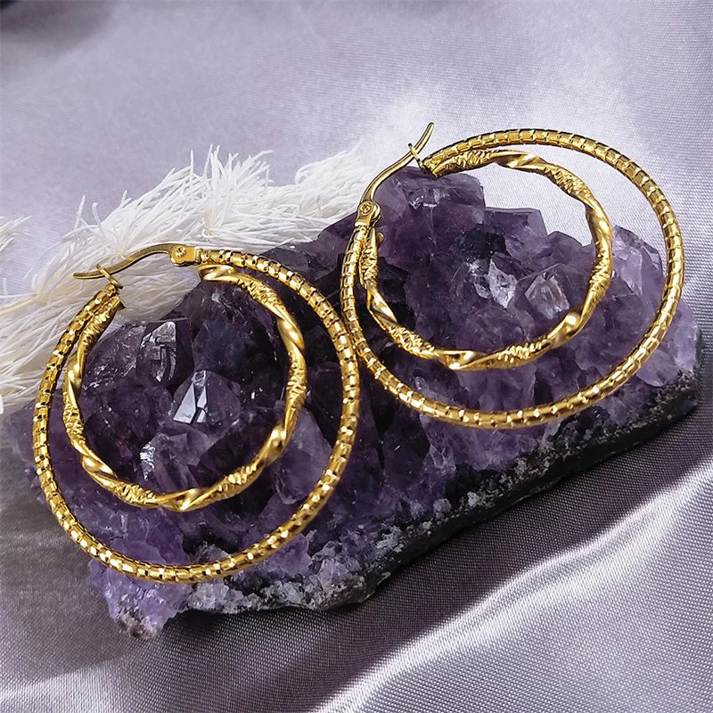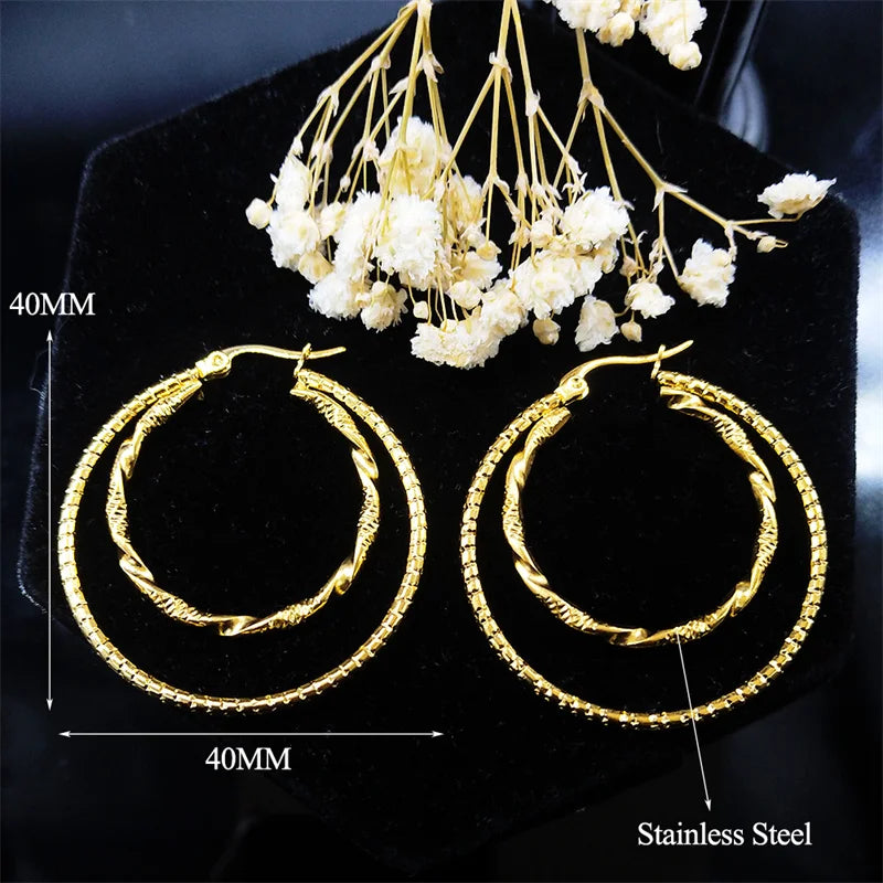 Pendientes de aro de doble círculo para mujer, de acero inoxidable, grandes pendientes de alambre trenzado, joyería, pendientes de aro para mujer