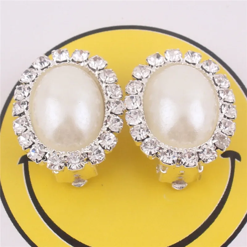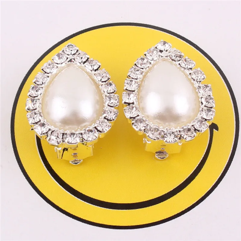 Pendientes de moda: nuevos pendientes de clip con diamantes de imitación en forma de gota de agua ovalada doble sin perforación, pendientes de clip de oreja de perla simulada de moda