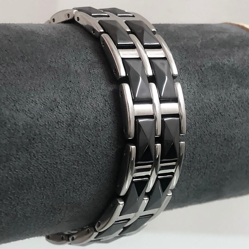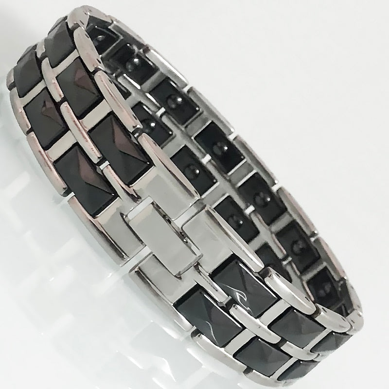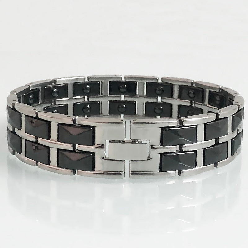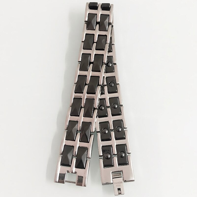 Pulsera de cerámica negra de doble fila para hombres y mujeres, con terapia magnética, ideal para el cuidado de la salud y la energía.