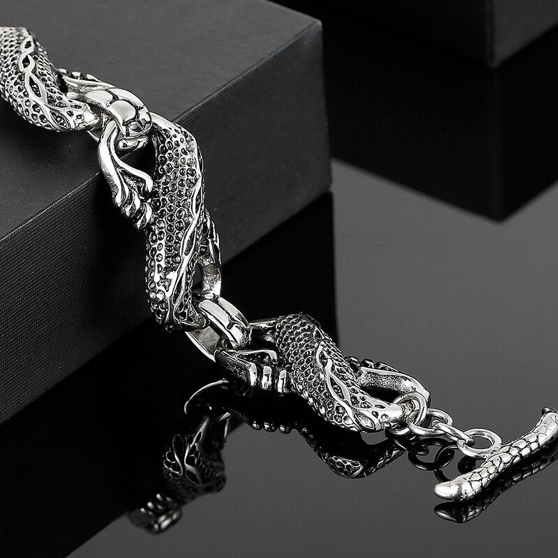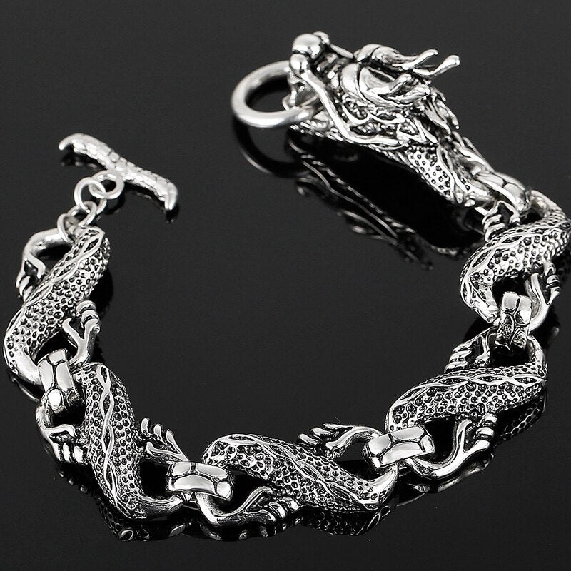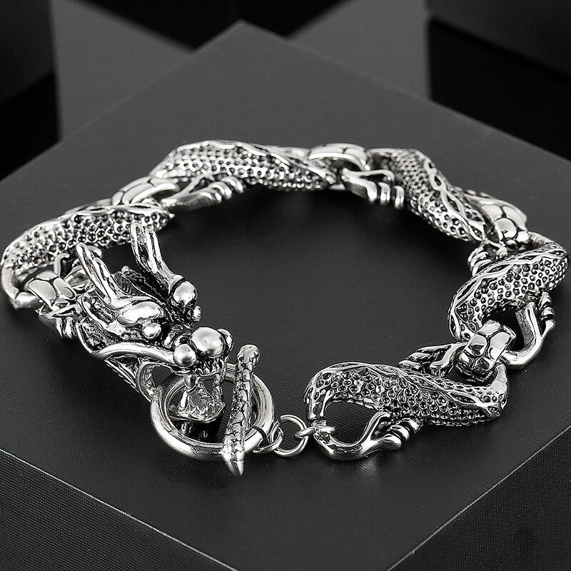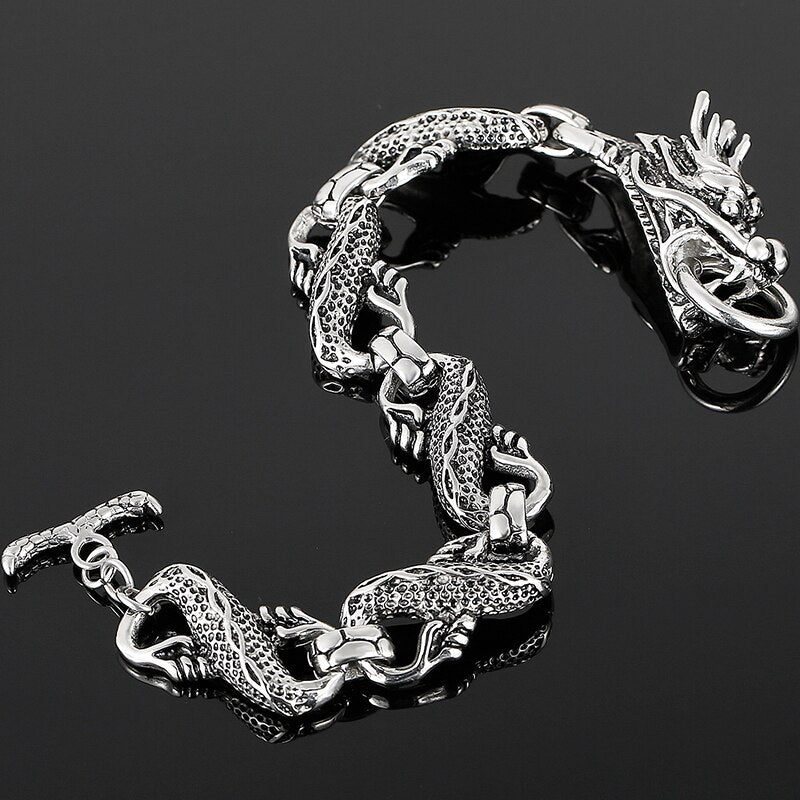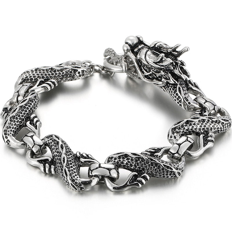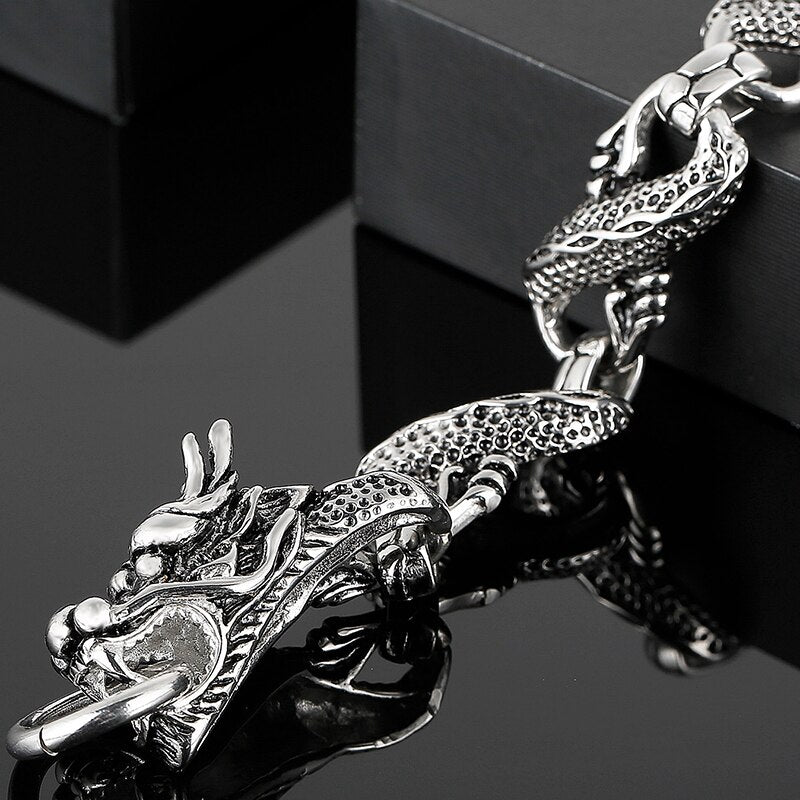 Pulsera de dragón para hombre, de acero inoxidable 316L, con cadena para planchar, ideal como regalo de motociclista.