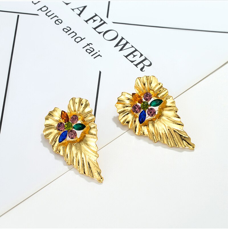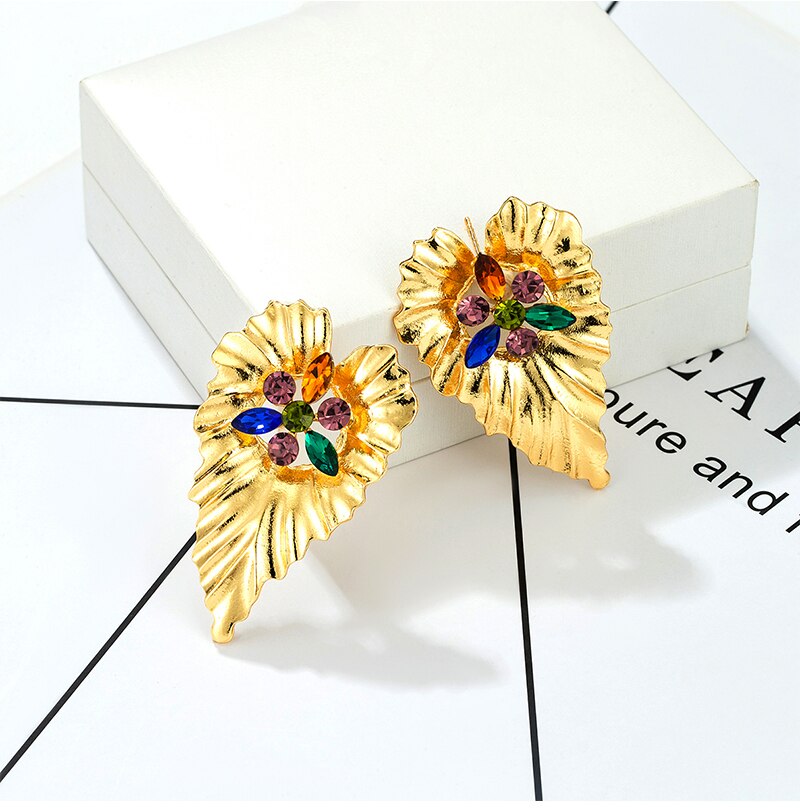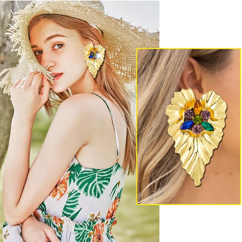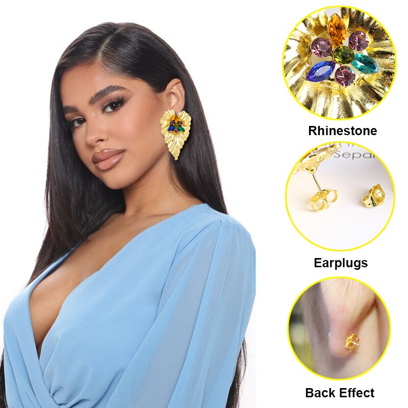 Conjunto de joyas: pendientes colgantes para mujer con hojas grandes de diamantes de imitación chapados en oro de 24 quilates, joyería de moda para fiestas, regalo de Navidad para damas de honor.