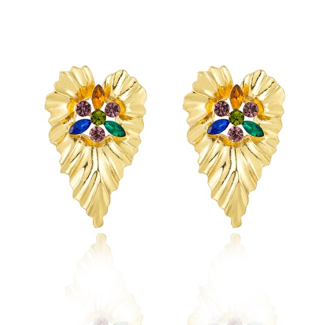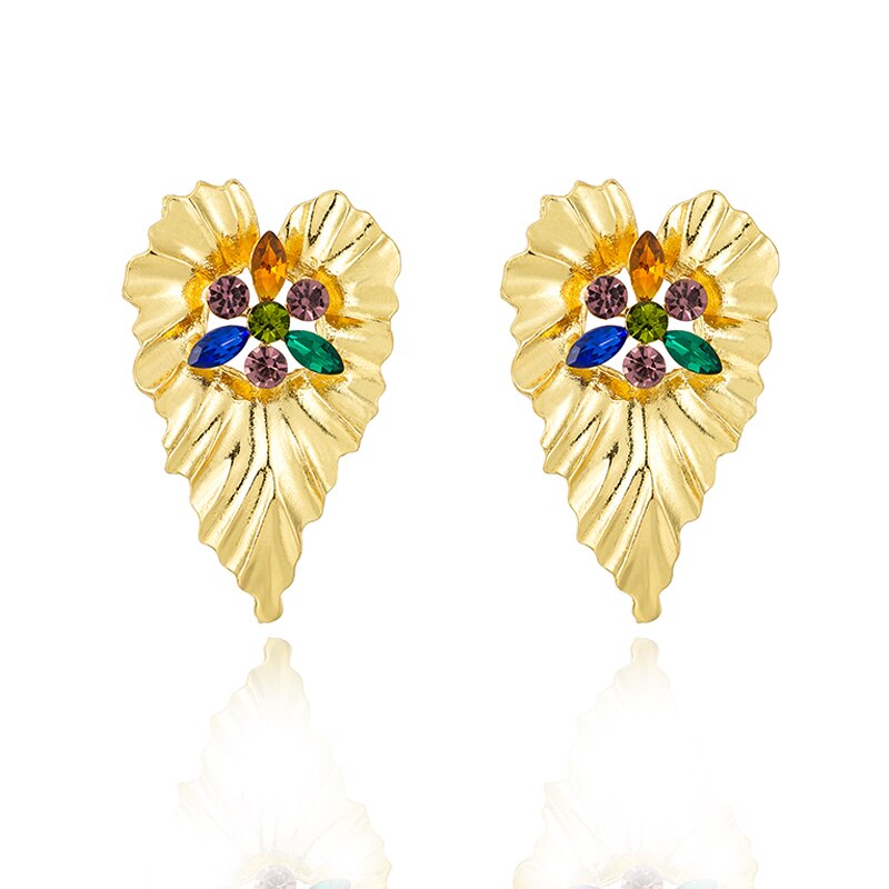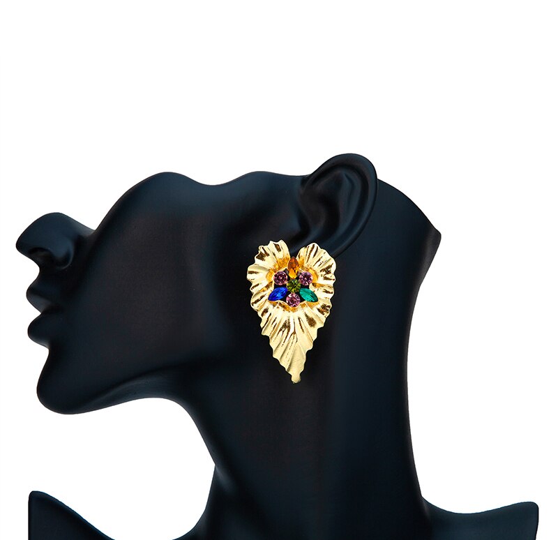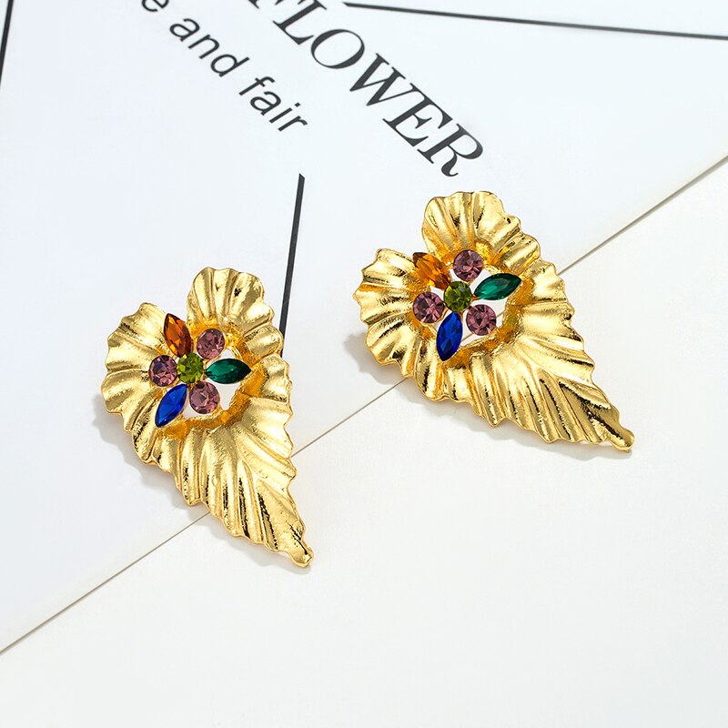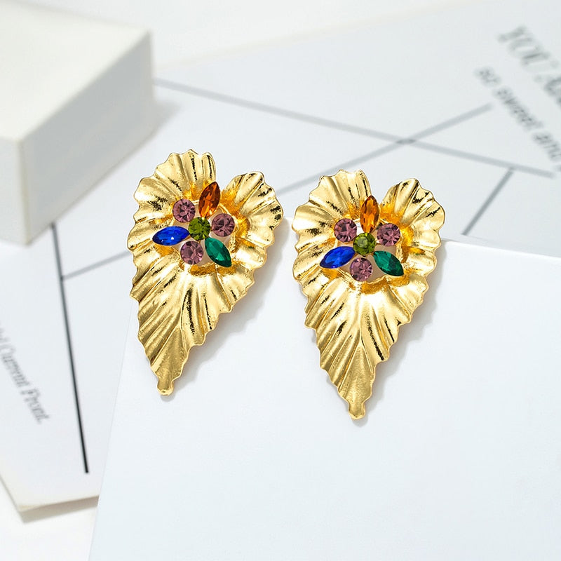Pendientes colgantes para mujer con hojas grandes de diamantes de imitación chapados en oro de 24 quilates