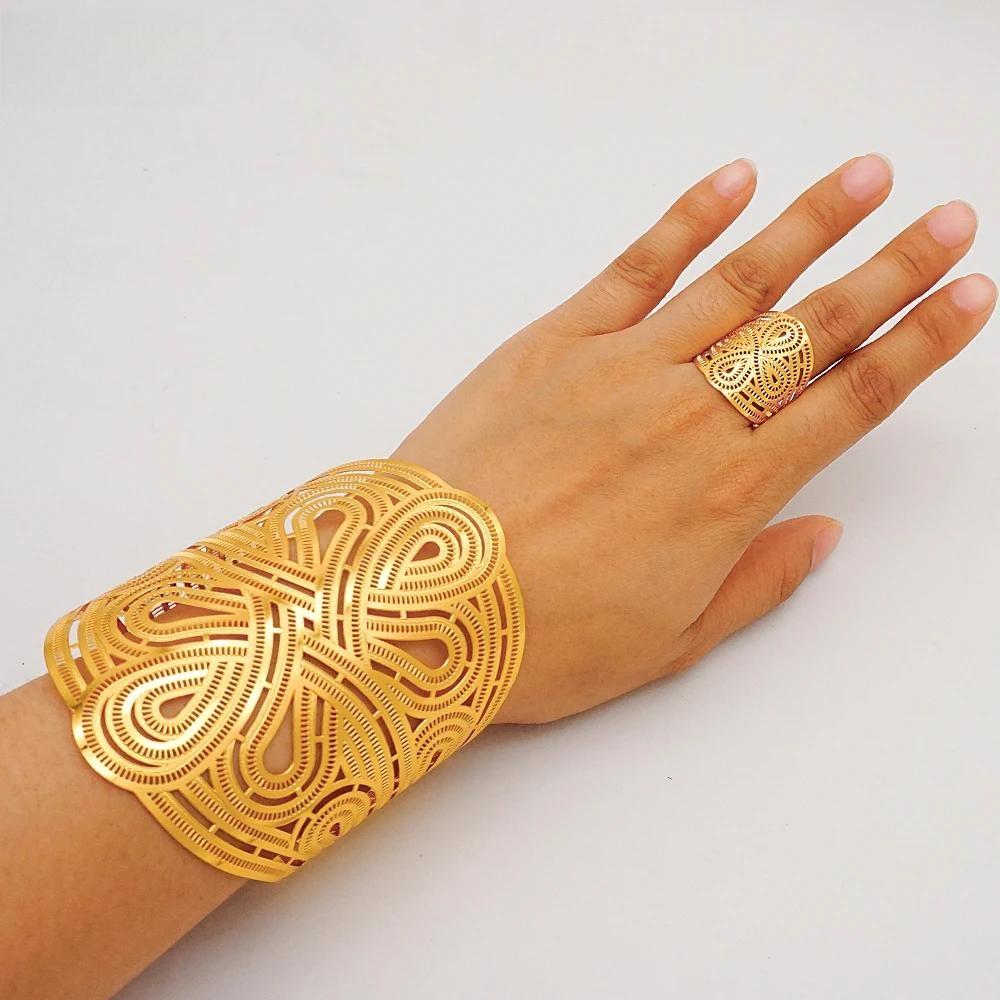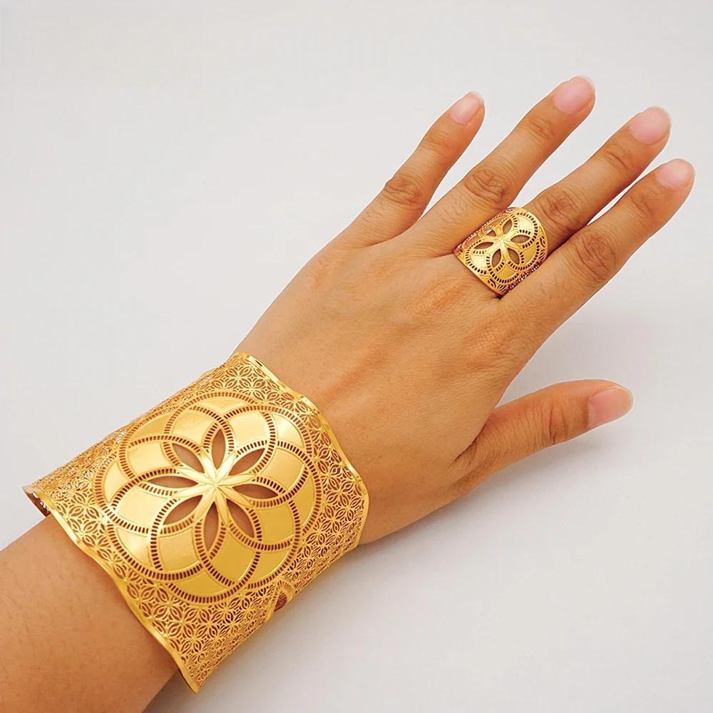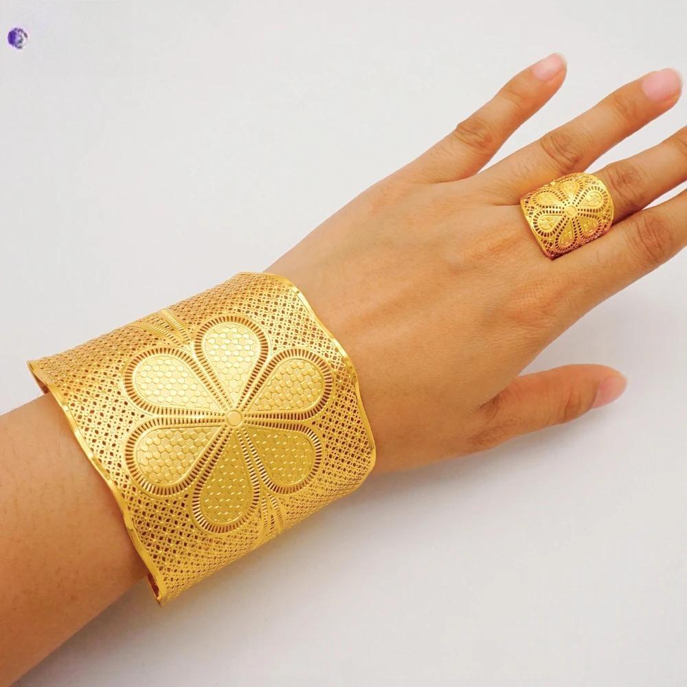 Brazaletes de color dorado de Dubái para mujer, pulseras de Oriente Medio, pulseras de Arabia Etíope, regalos de joyería para bodas y novias africanas.