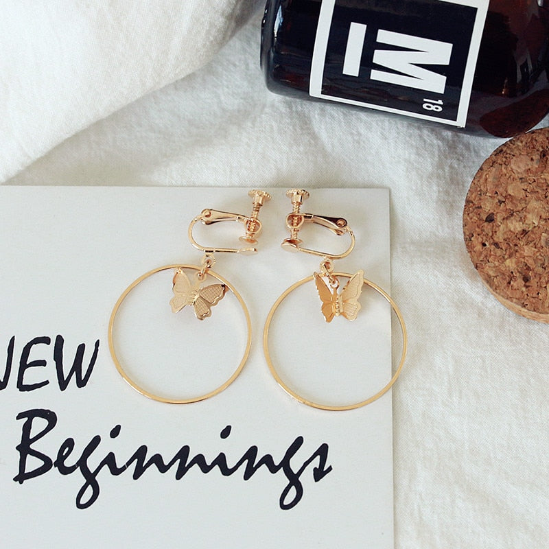 Pendientes de moda: pendientes de clip tipo puño sin perforar para mujer, aretes de mariposa, joyería de moda.