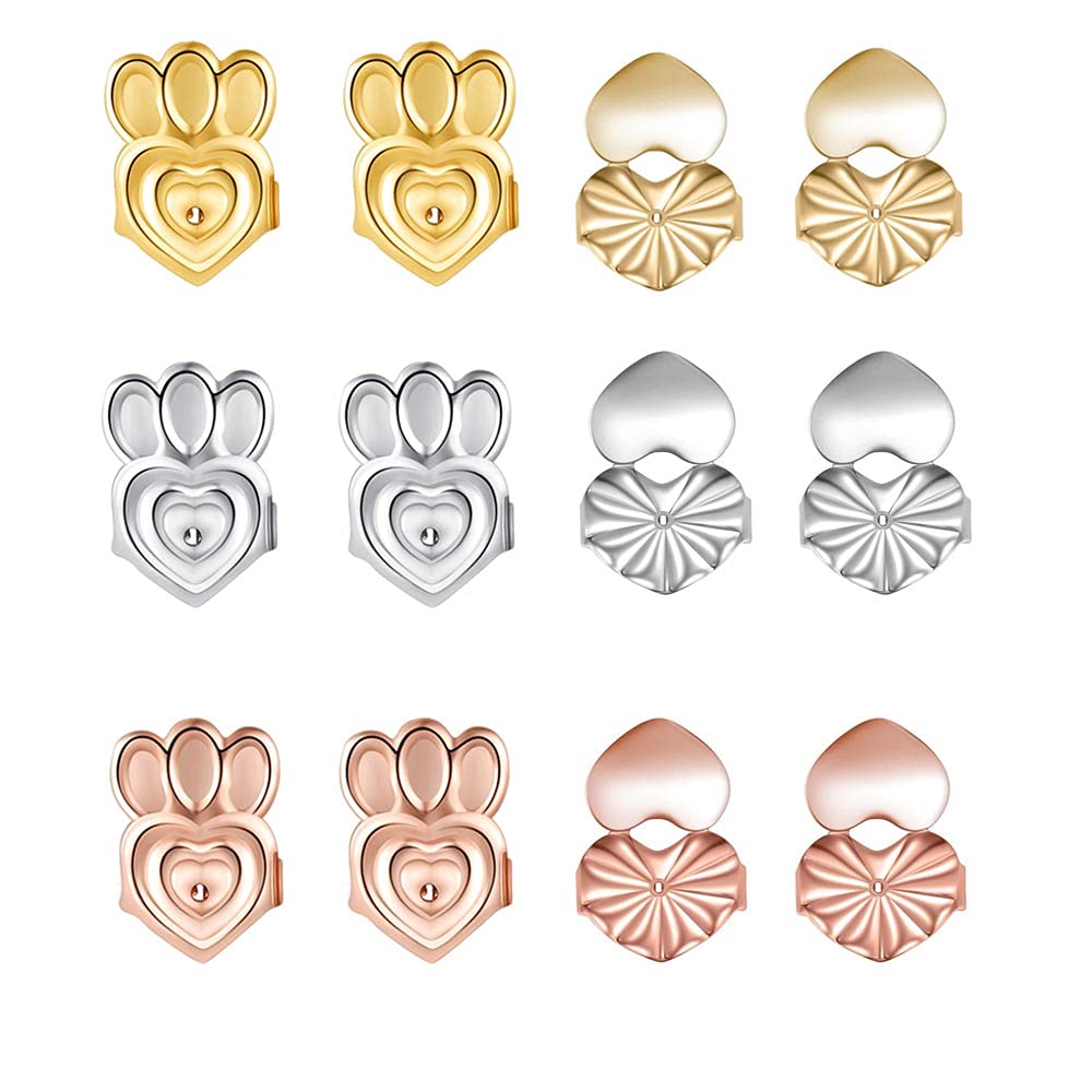 【Paquete】 - Recibirás 6 pares de cierres para aretes (2 pares de cierres para aretes de oro, 2 pares de cierres para aretes de plata, 2 pares de cierres para aretes de oro rosa).