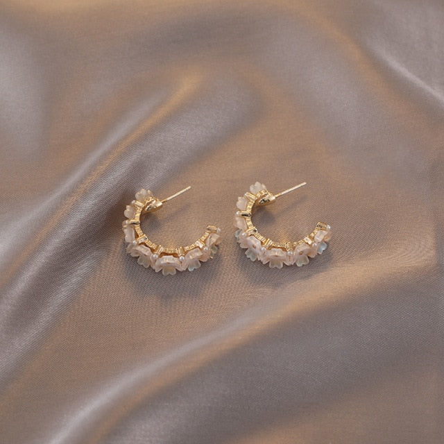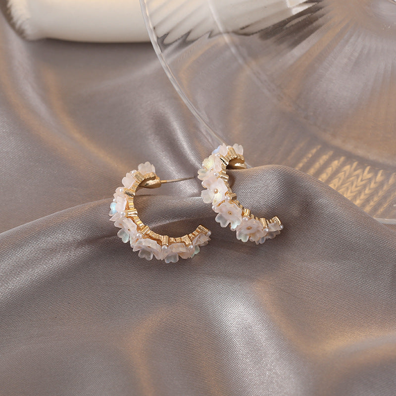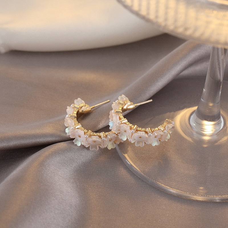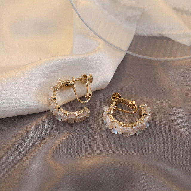 Elegantes y lindos pendientes de aro con clip de flor sin perforar para mujer