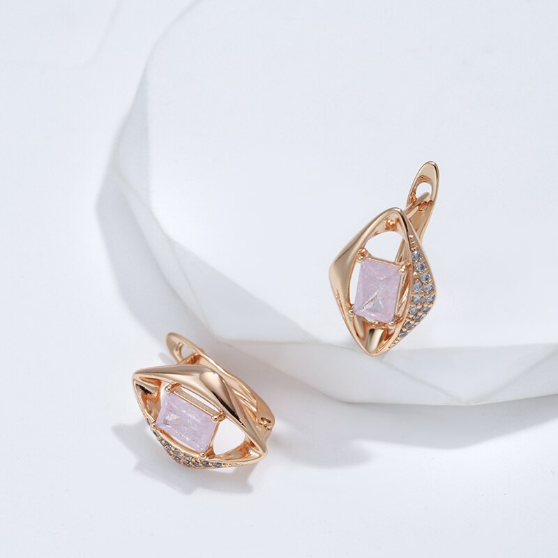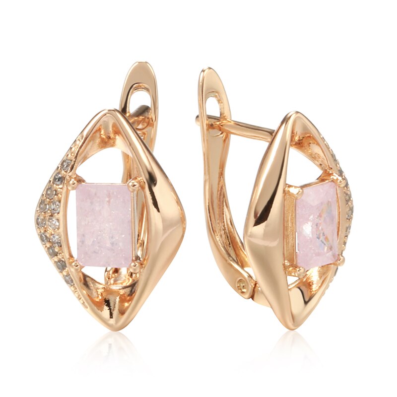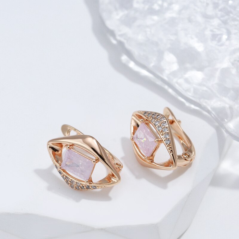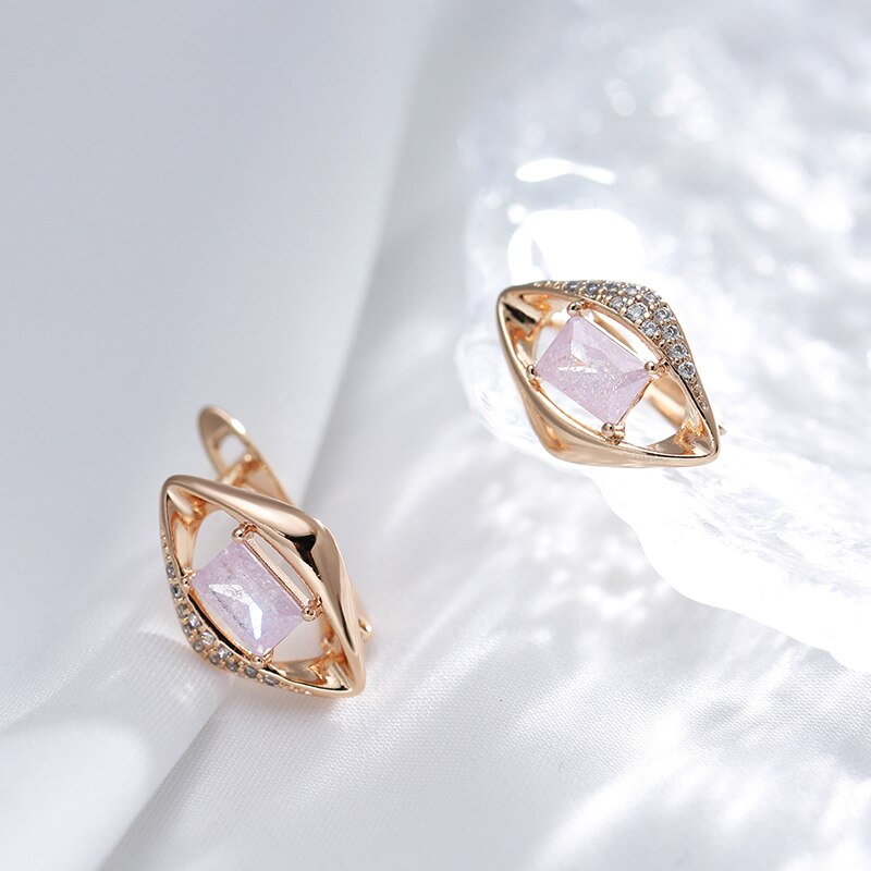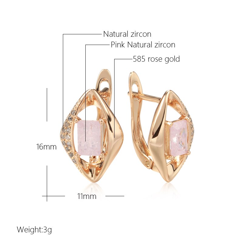 Joyería de oro 585: elegantes pendientes geométricos de circonita esmerilada con forma de diamante para mujer, accesorios vintage de color oro 585