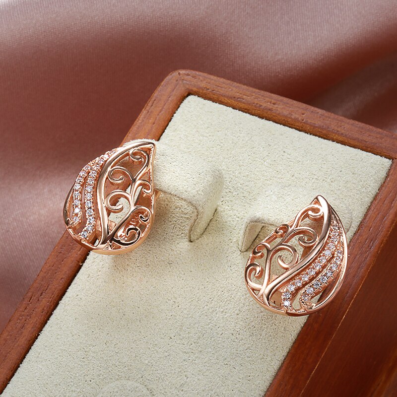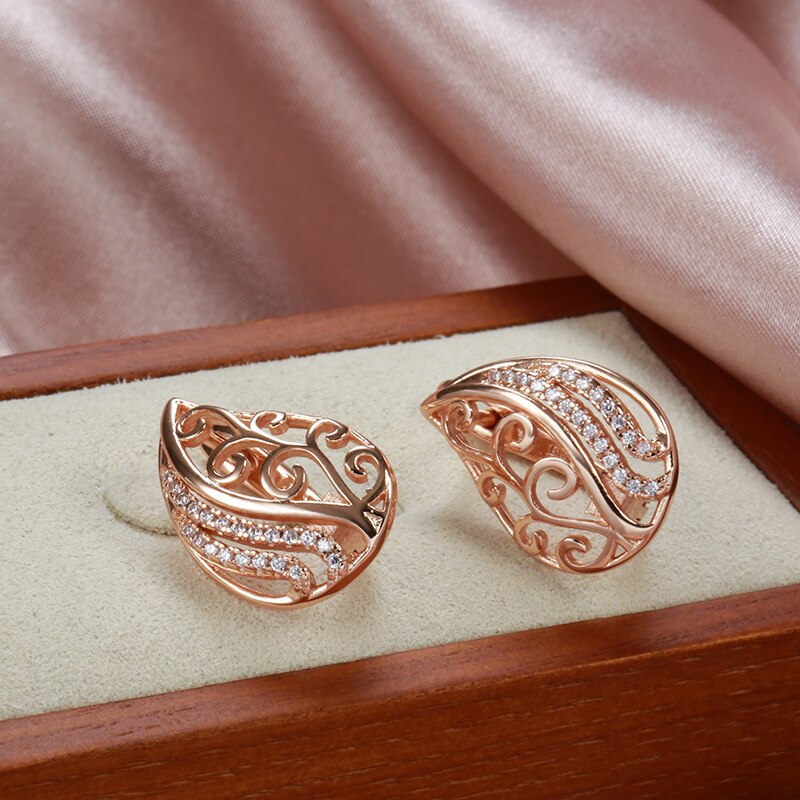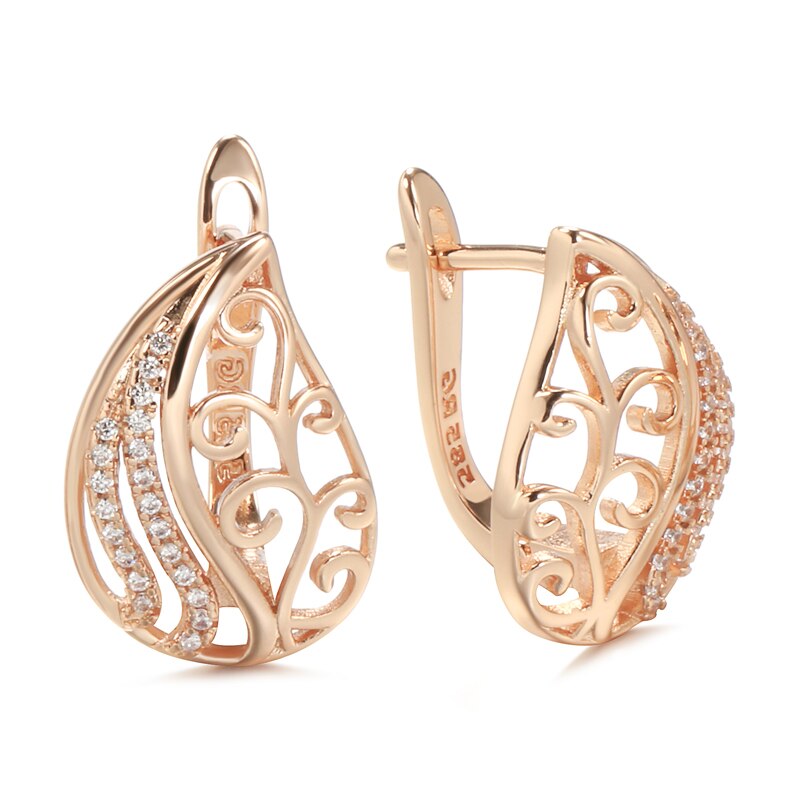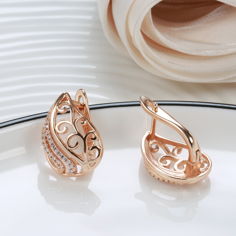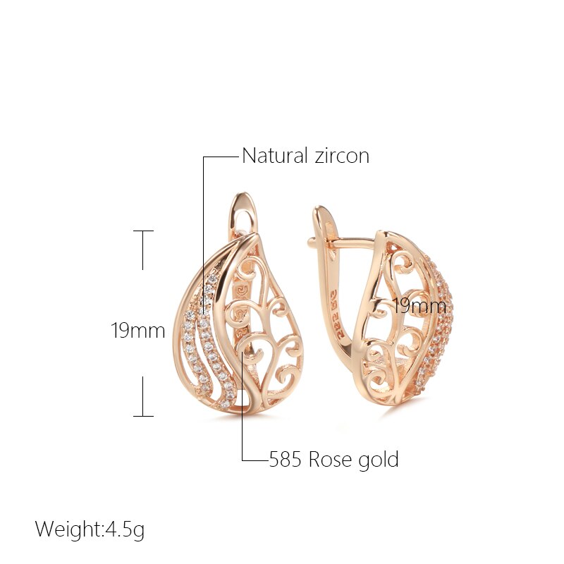 Joyería de oro 585: elegantes pendientes colgantes con textura geométrica de circonita para mujer. Joyería fina de moda en oro 585. Accesorios vintage para bodas y fiestas.