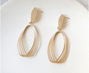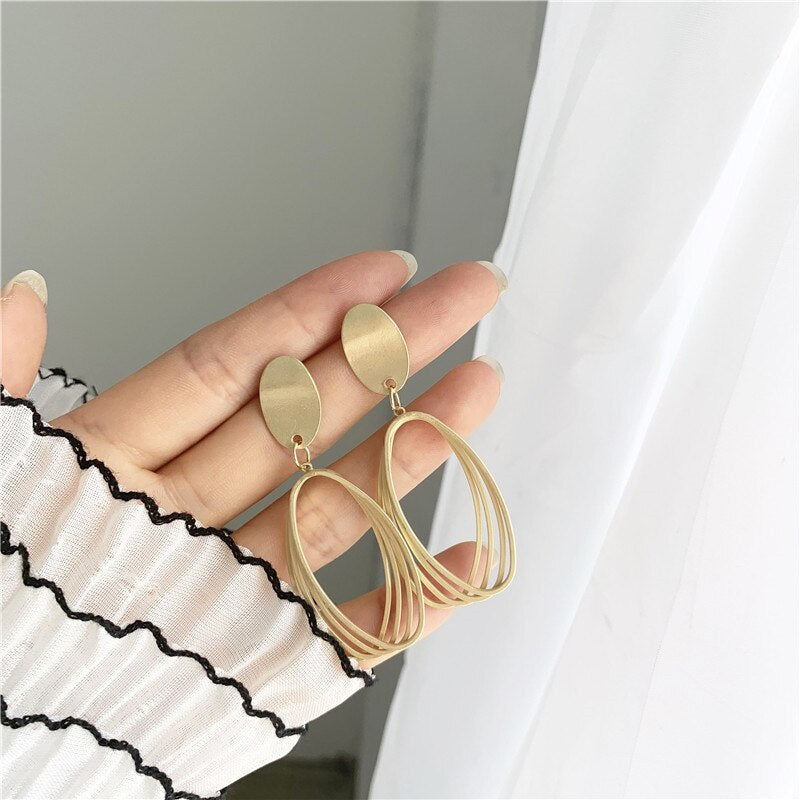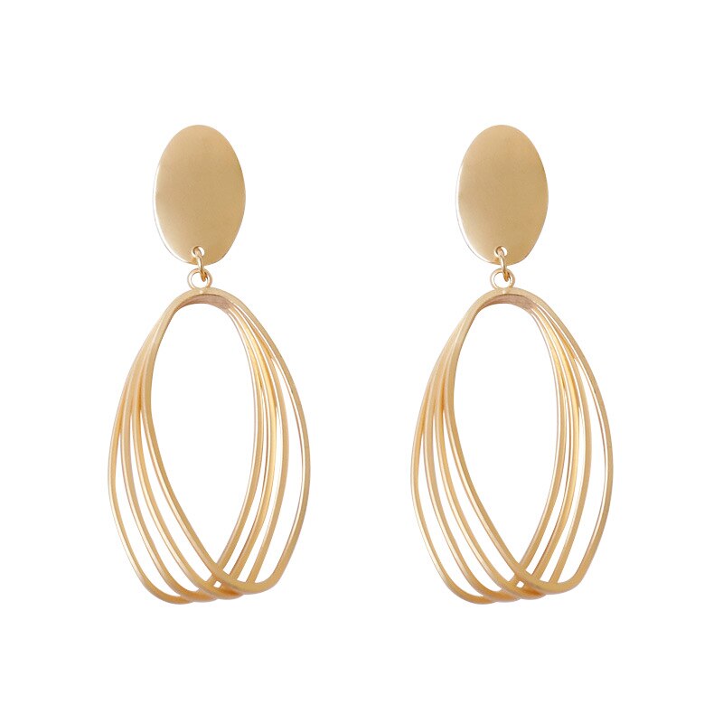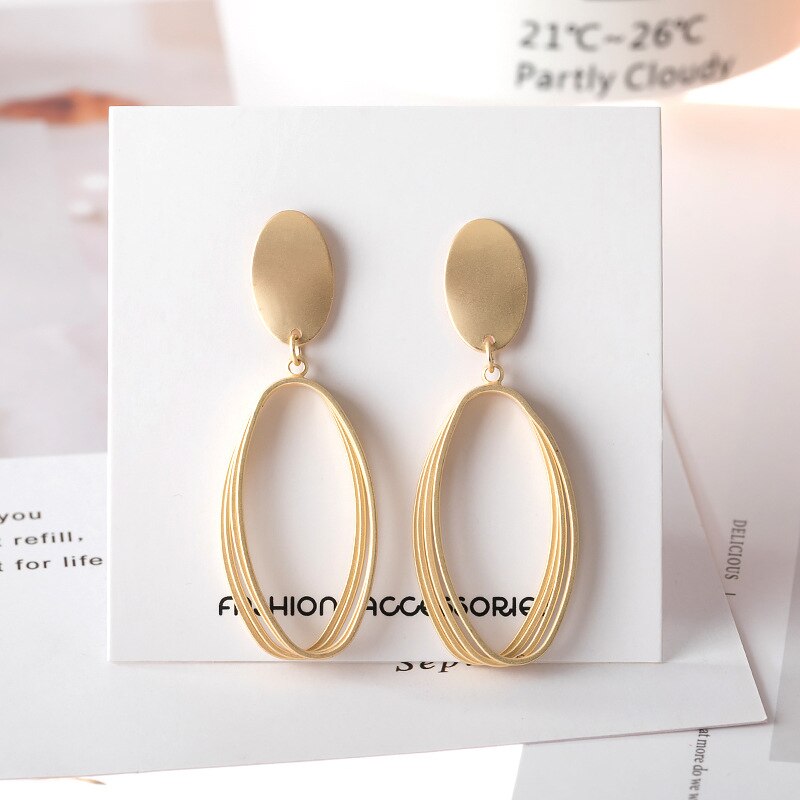Elegantes pendientes de clip con colgante ovalado de metal dorado mate geométrico