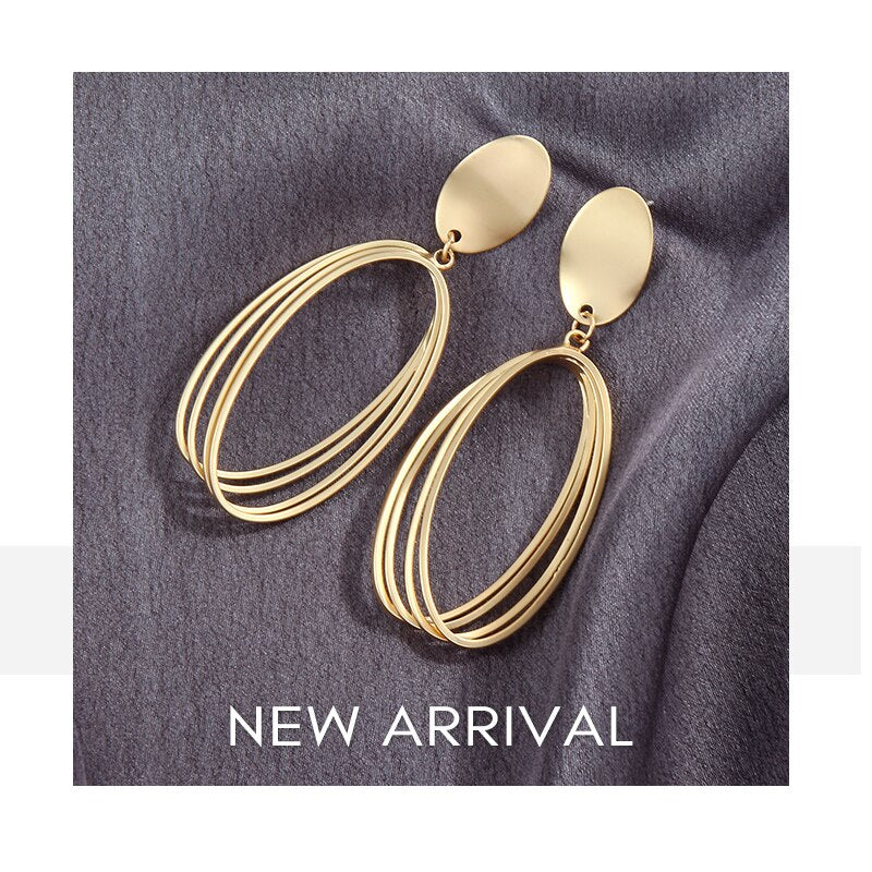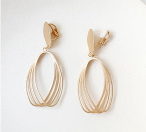 Pendientes de moda: elegantes pendientes geométricos de metal mate dorado con forma ovalada, con clip, sin perforaciones, para mujeres y niñas, regalo de joyería.