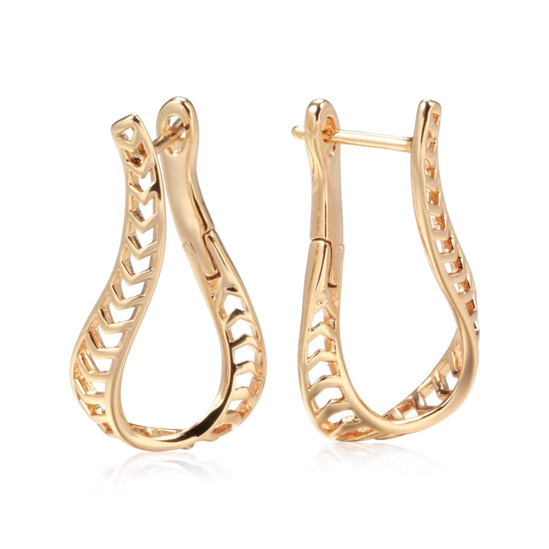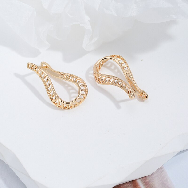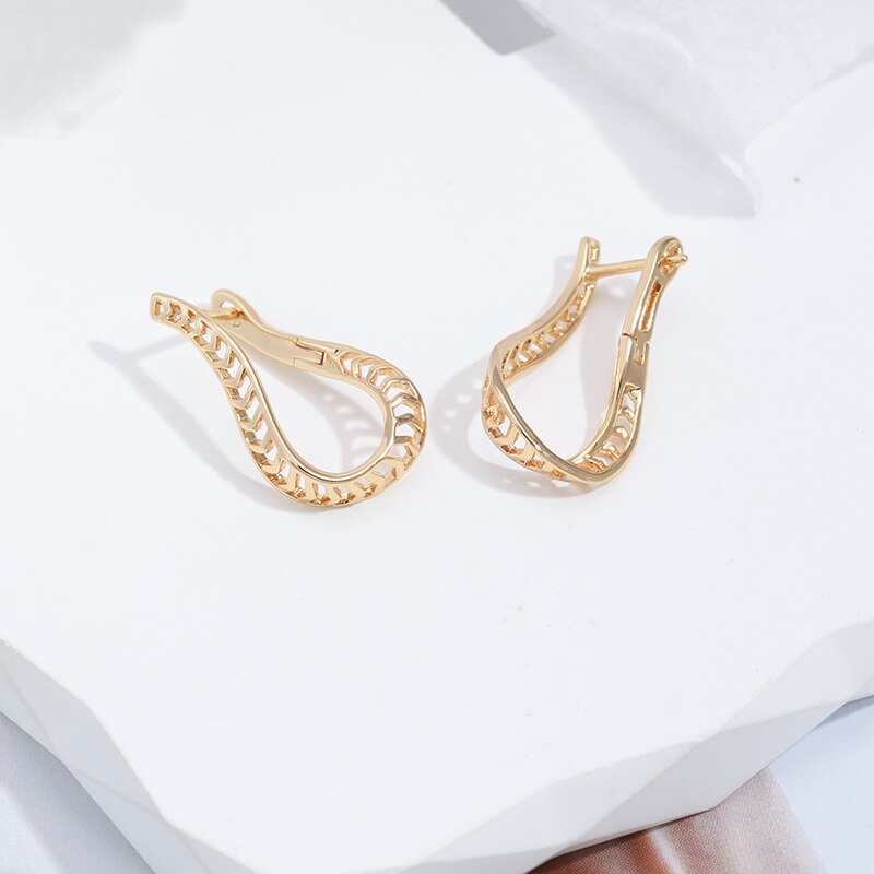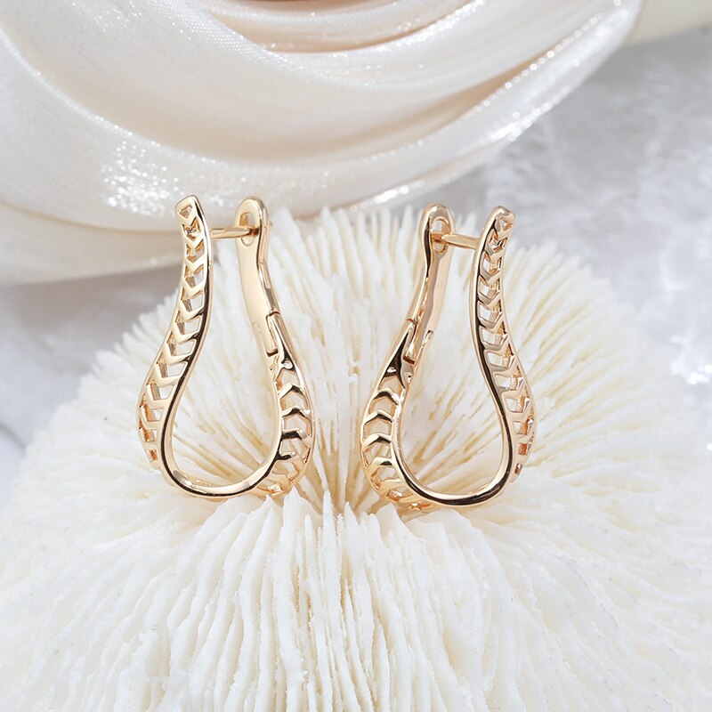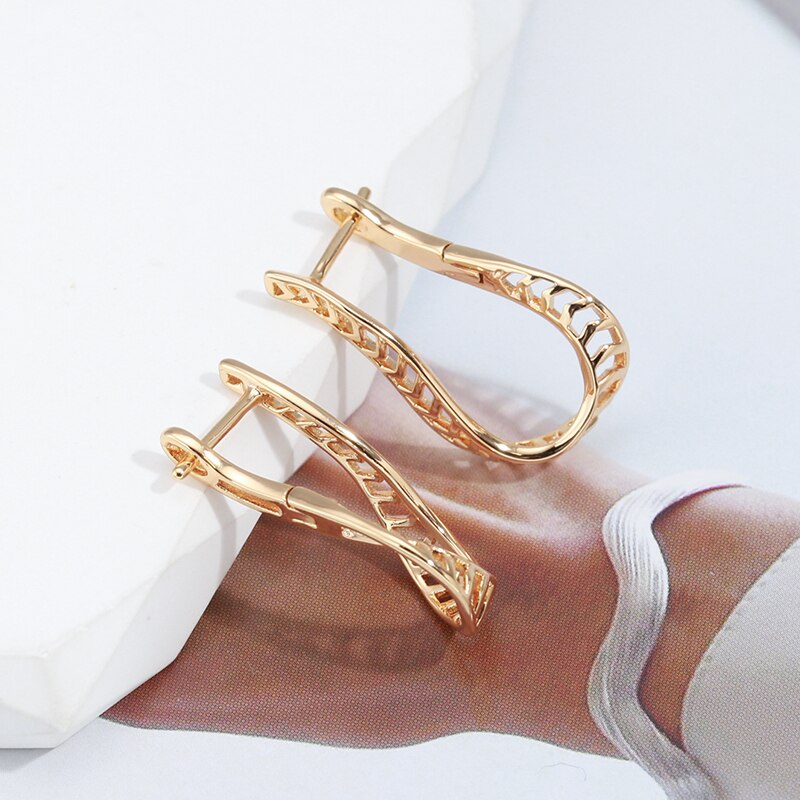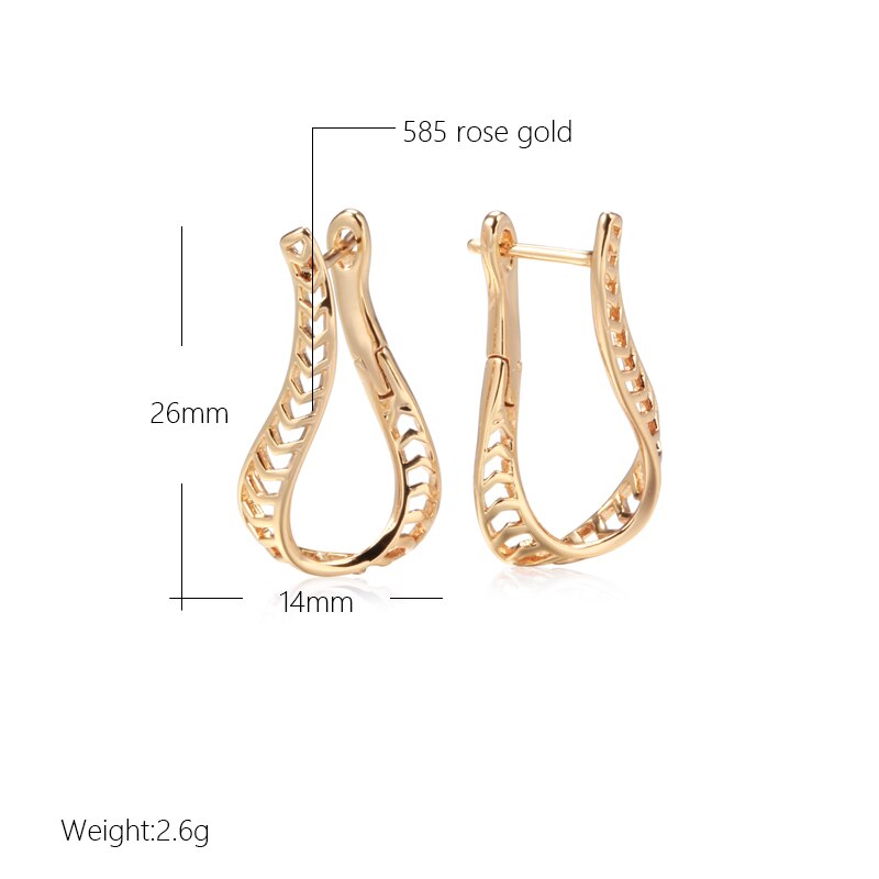 Joyería de oro 585: elegantes pendientes largos con textura de serpiente y curvas, estilo inglés, para mujer. Color oro 585. Joyería sencilla y de moda. Regalo inusual.