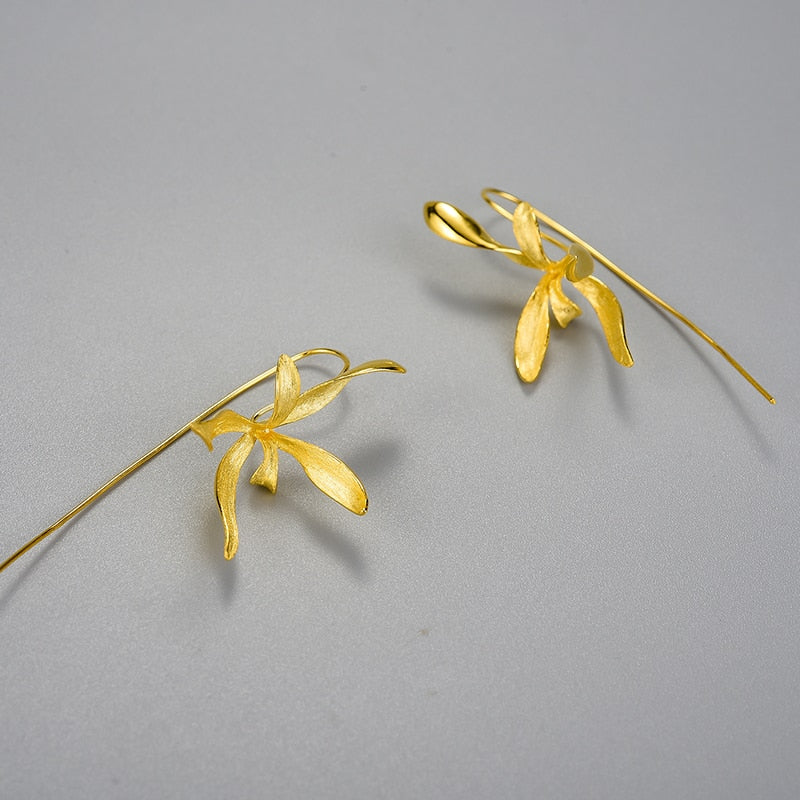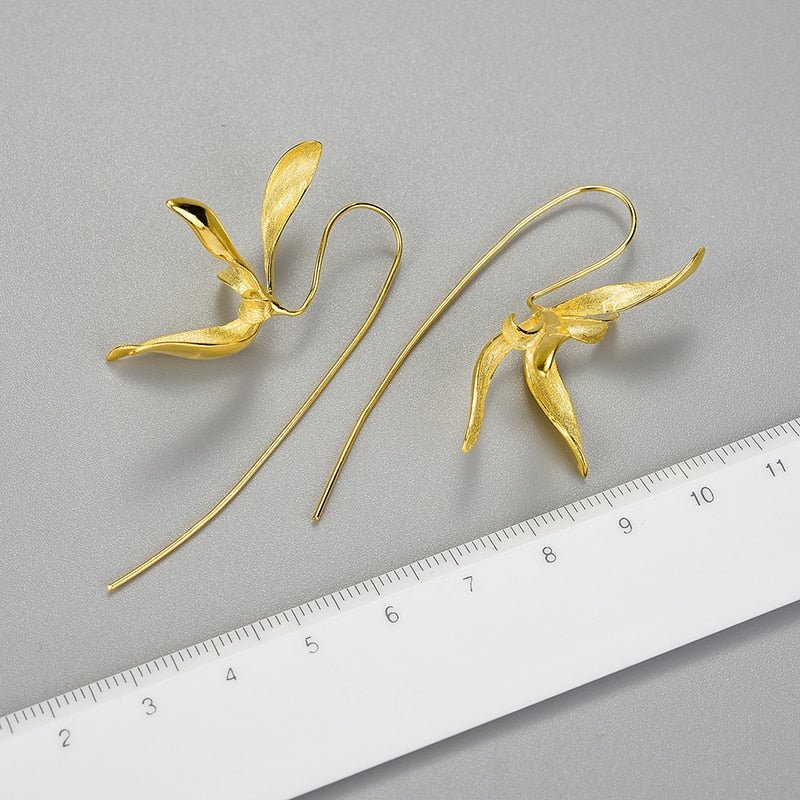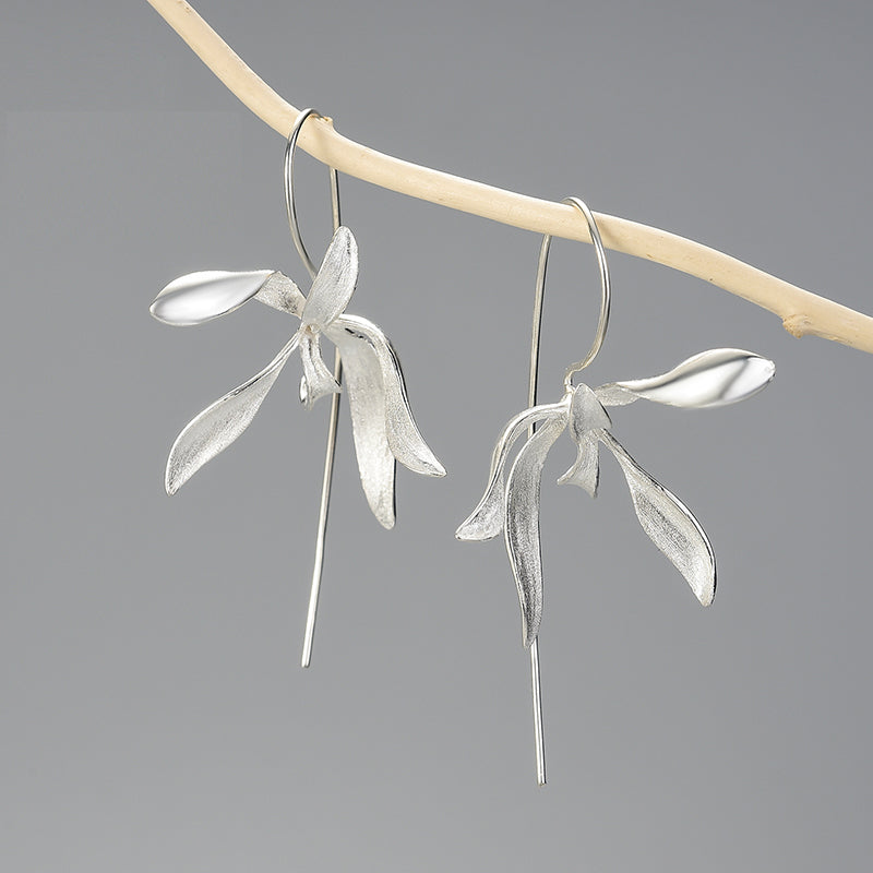 Pendientes de moda: elegantes y lujosos pendientes colgantes con orquídea grande para mujer, de plata de ley 925 auténtica, joyería fina para bodas.