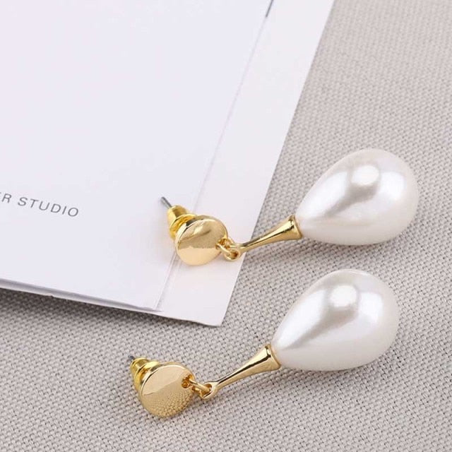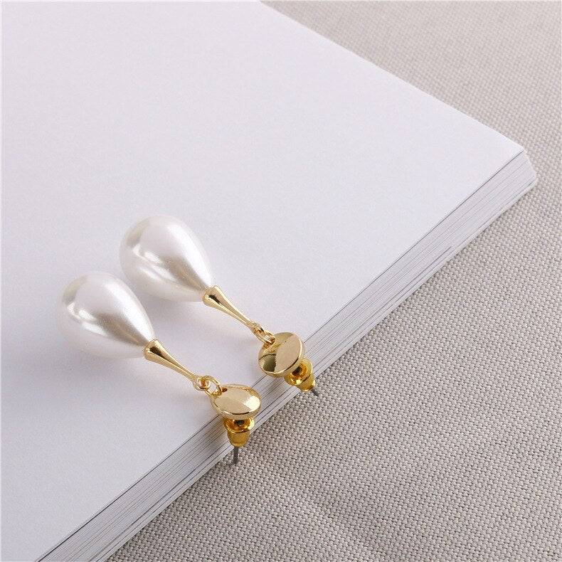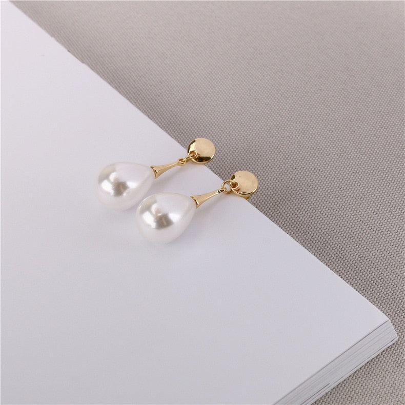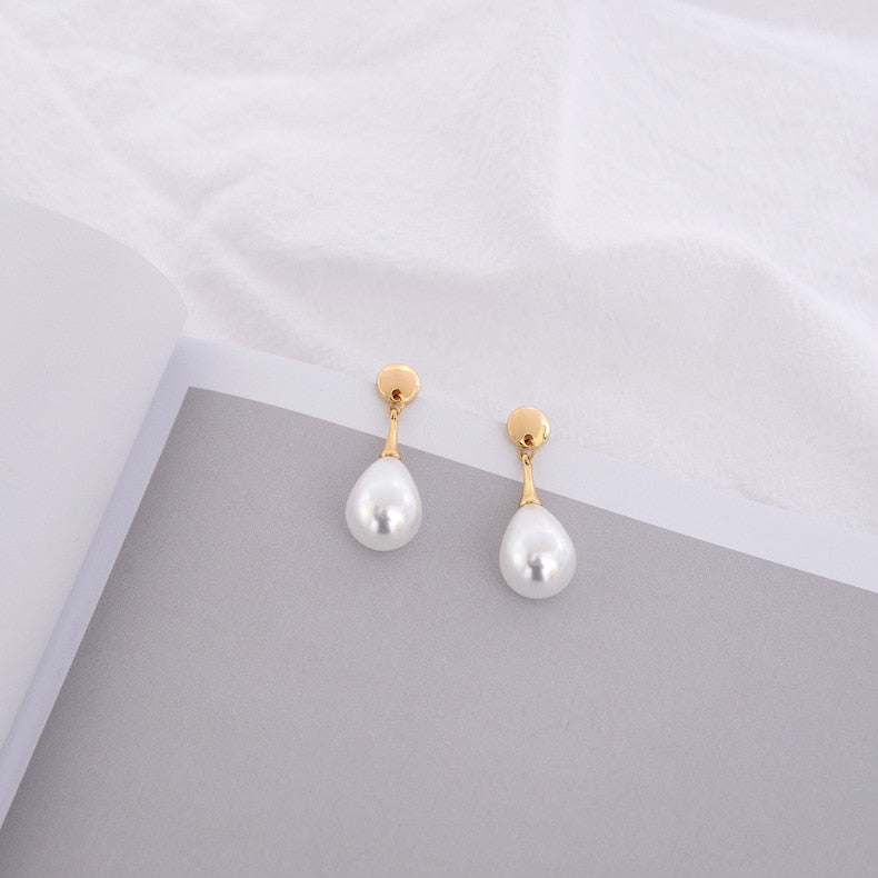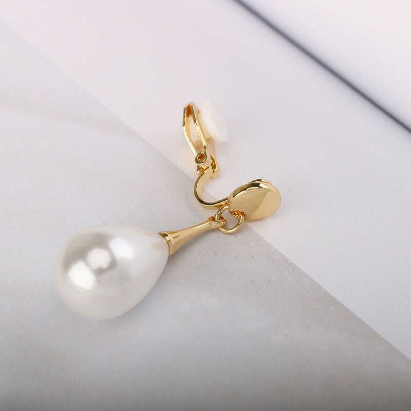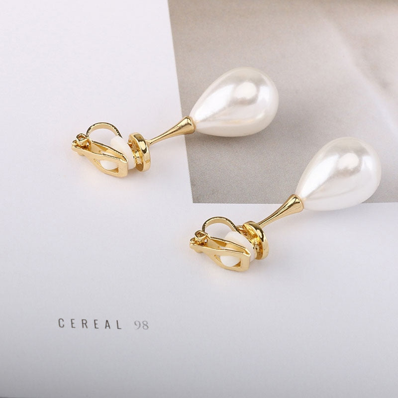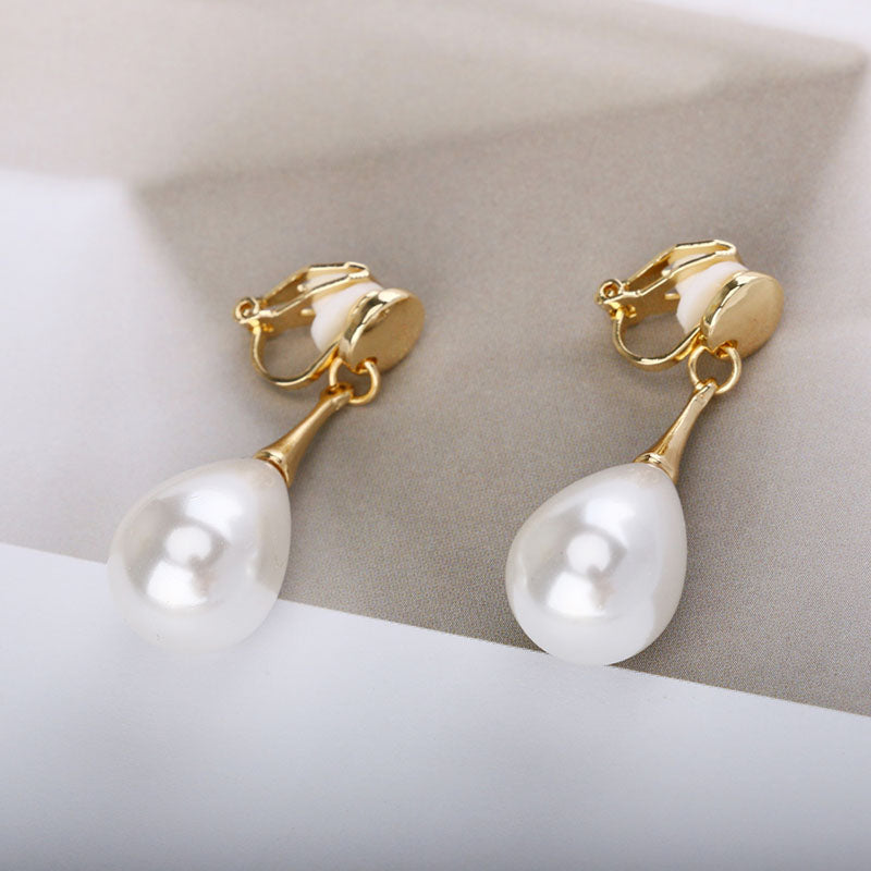 Elegantes pendientes con clip de perla simple en forma de gota de agua con dije colgante