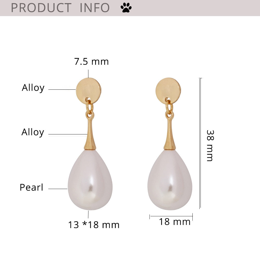 Pendientes de moda: elegantes pendientes de clip con perla de gota de agua, sencillos, con dije de perla simulada, geométricos, sin perforaciones, para mujer, joyería de boda.