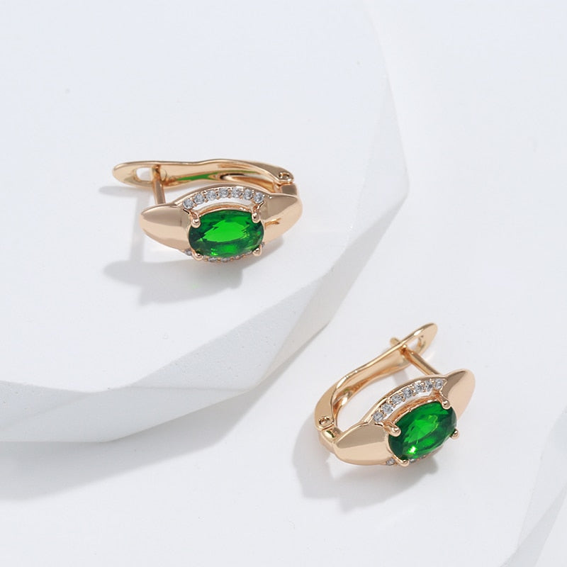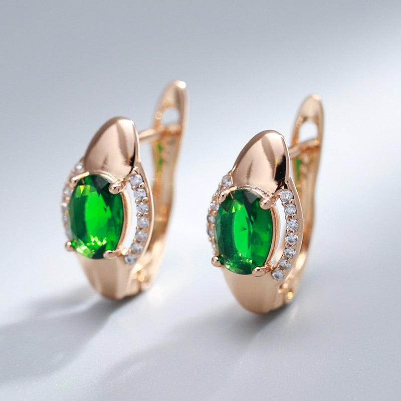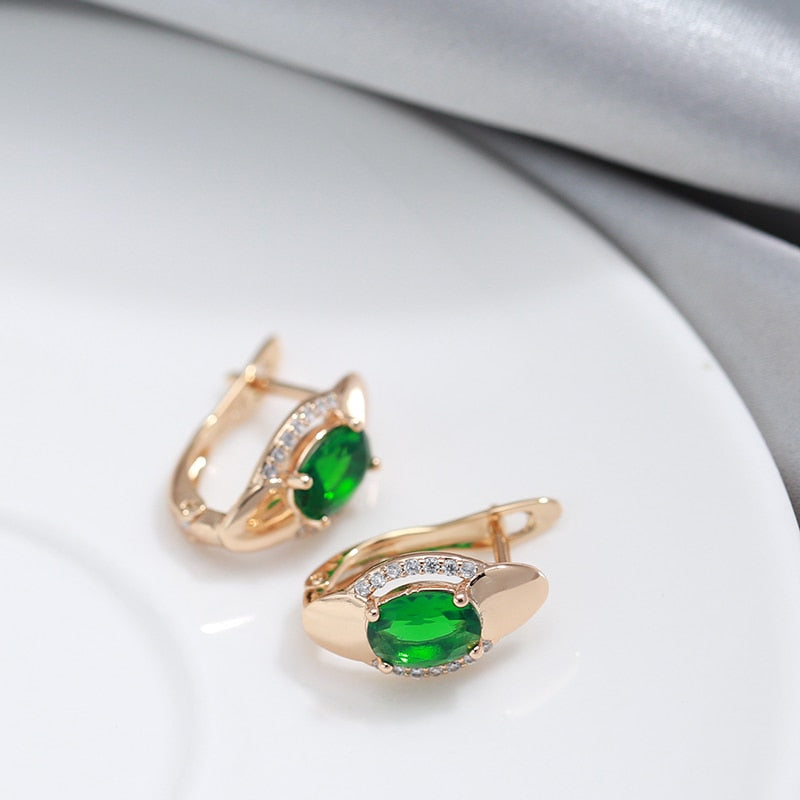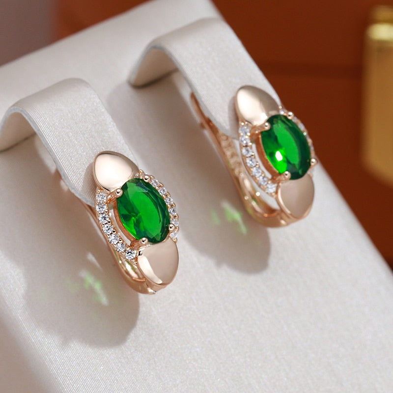 Pendientes colgantes de circonita ovalada verde esmeralda para mujer, joyería vintage, color oro rosa 585, elegantes accesorios.